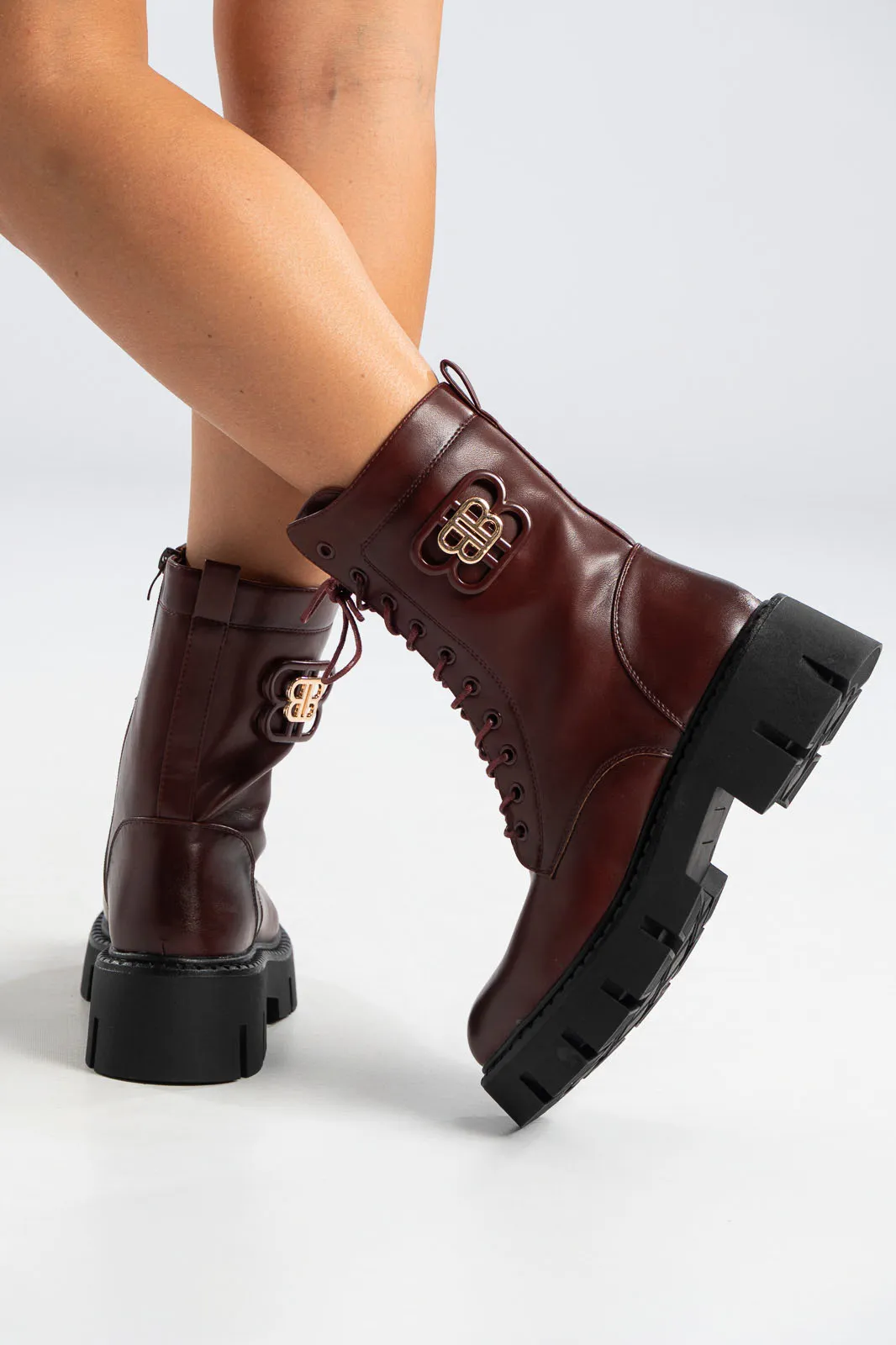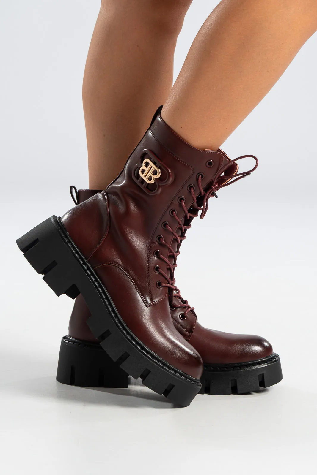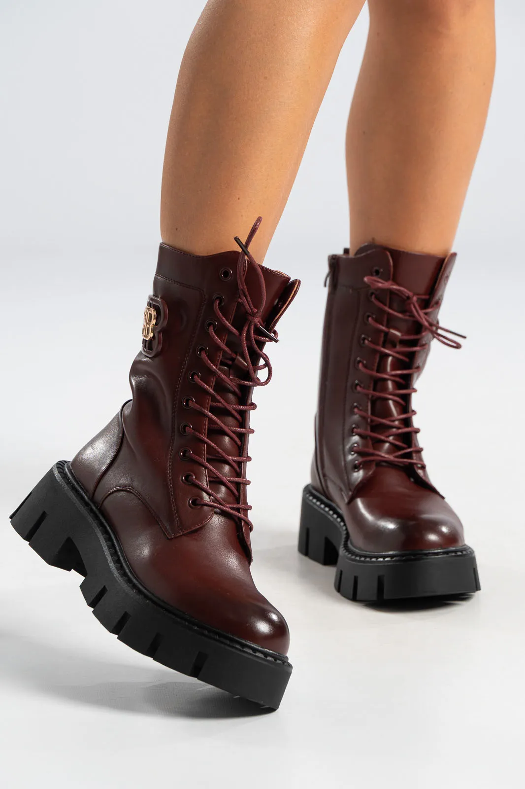 Αρβυλάκι από εξαιρετικής ποιότητας δερματίνη. Κλείνουν με φερμουάρ στο πλάι και μπροστά έχει κορδόνι για να το ρυθμίζετε όσο θέλετε. Έχουν υπερυψωμένη σόλα, τρακτερωτό πάτο και στρογγυλή μύτη. Έχει διακοσμητική λεπτομέρεια στο πλάι. Το μπροστινό μέρος έχει ύψος 3cm και τακούνι 5cm. Η μέτρηση στον πίνακα έχει γίνει στην αρχή της γάμπας.