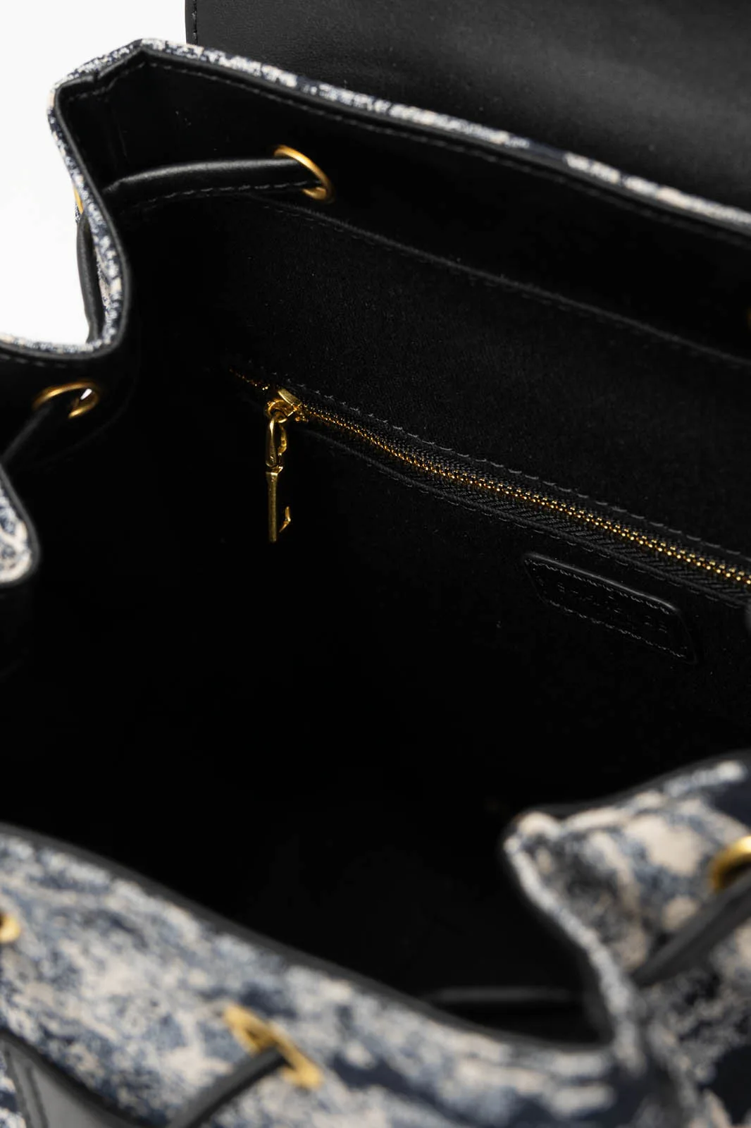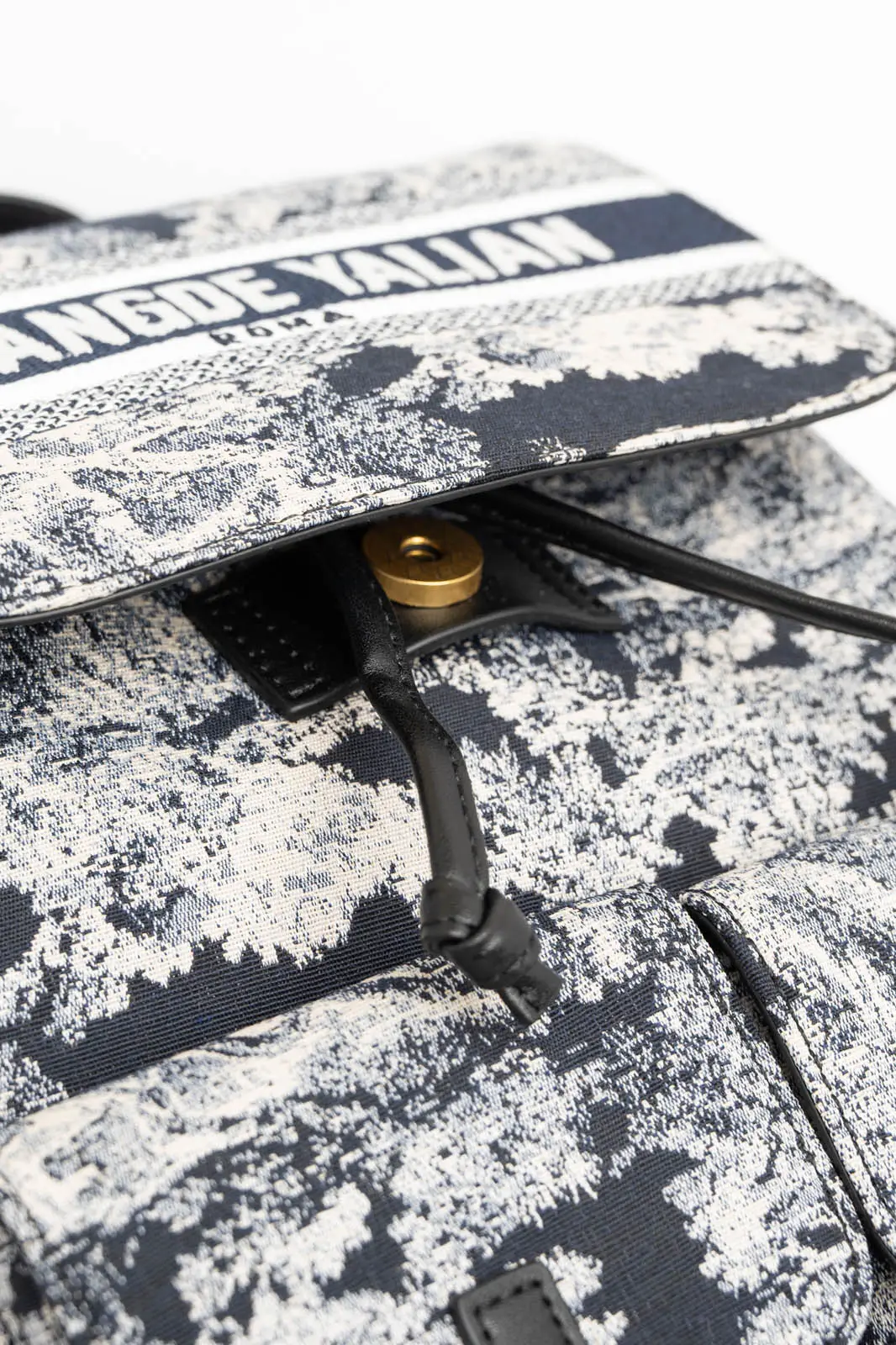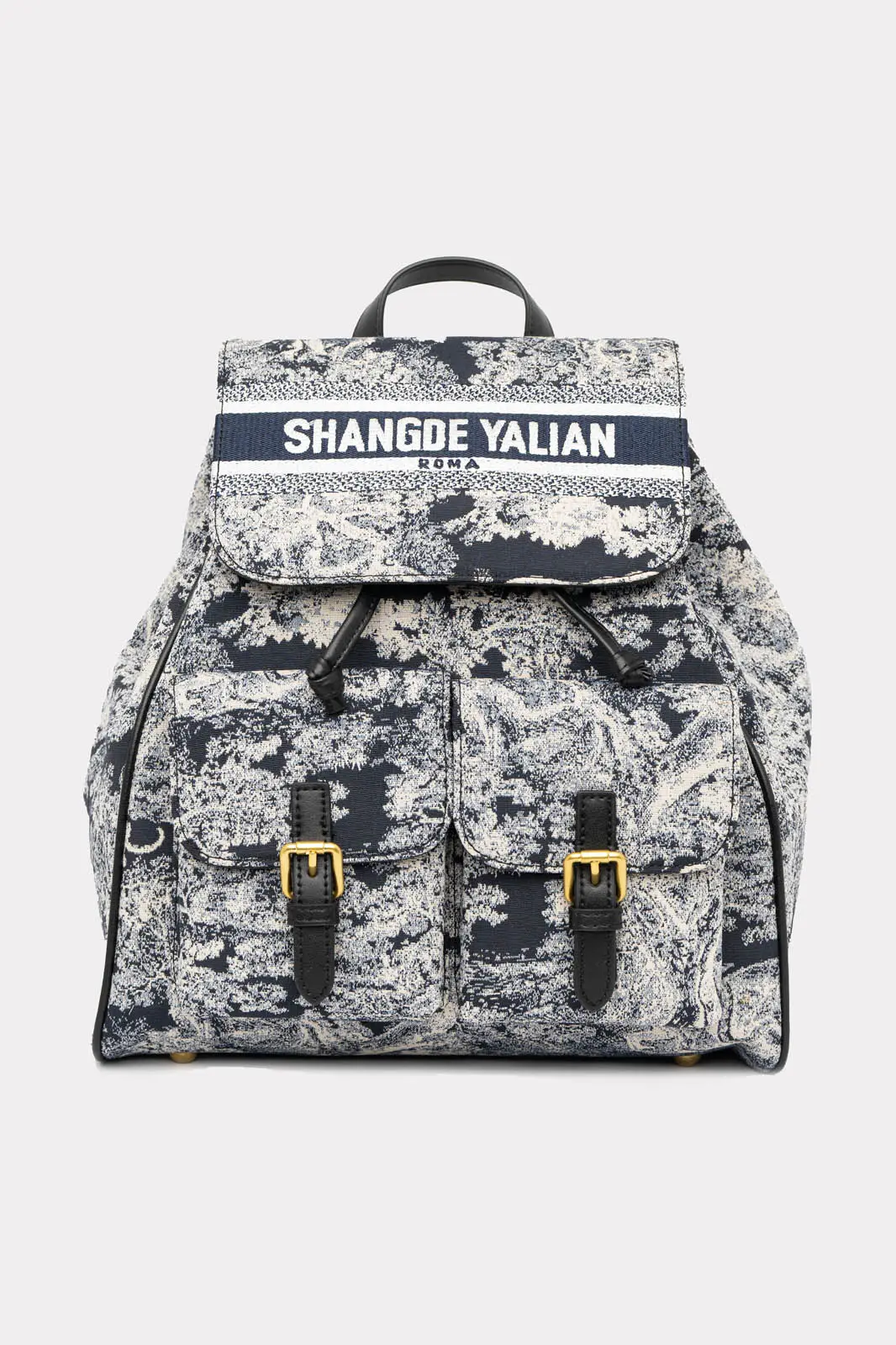 Σακίδιο πλάτης με ύφασμα τύπου καραβόπανο. Είναι πουγκί και η κύρια θήκη διαθέτει καπάκι και κλείνει με μαγνητάκι. Στο μπροστινό μέρος διαθέτει δύο μικρές θήκες που κλείνουν με μαγνήτη. Εσωτερικά είναι φοδραρισμένη και διαθέτει θήκες. Έχει σταθερό χερούλι με μήκος 20cm. Τα χερούλια είναι τύπου και ρυθμίζονται με ελάχιστο μήκος 76cm και μέγιστο 86cm. Μέγεθος τσάντας 32cm x 28cm x 14cm.