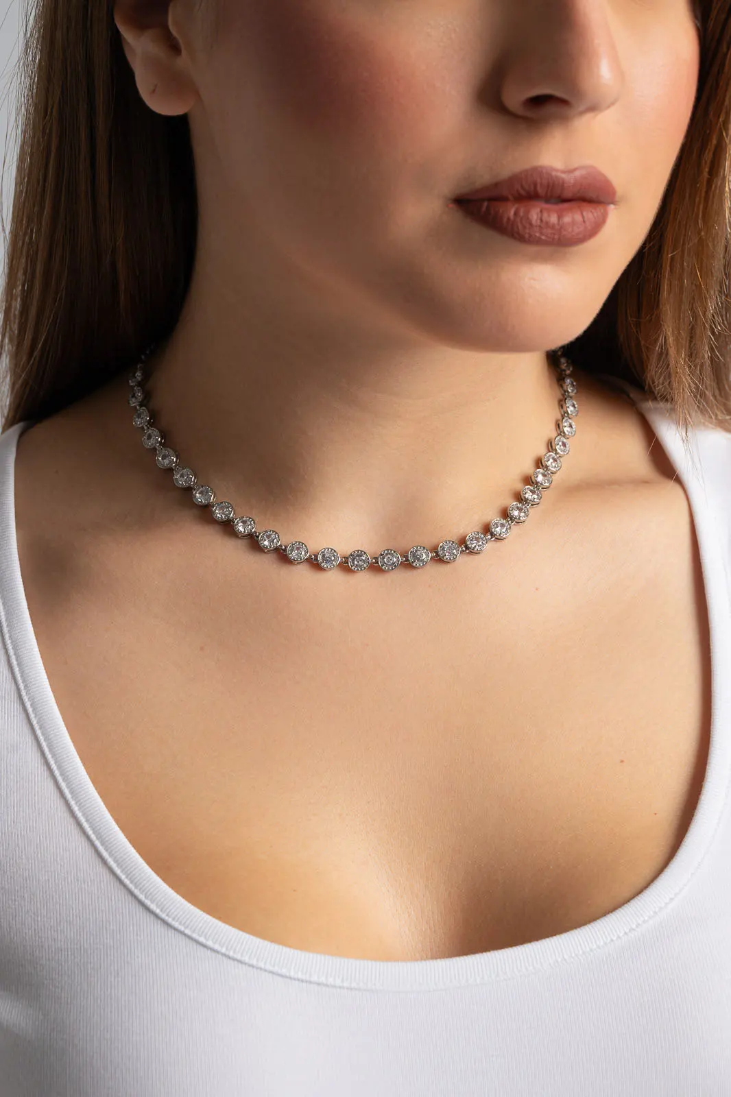 CHOKER DECORATIVE RHINESTONES SILVER