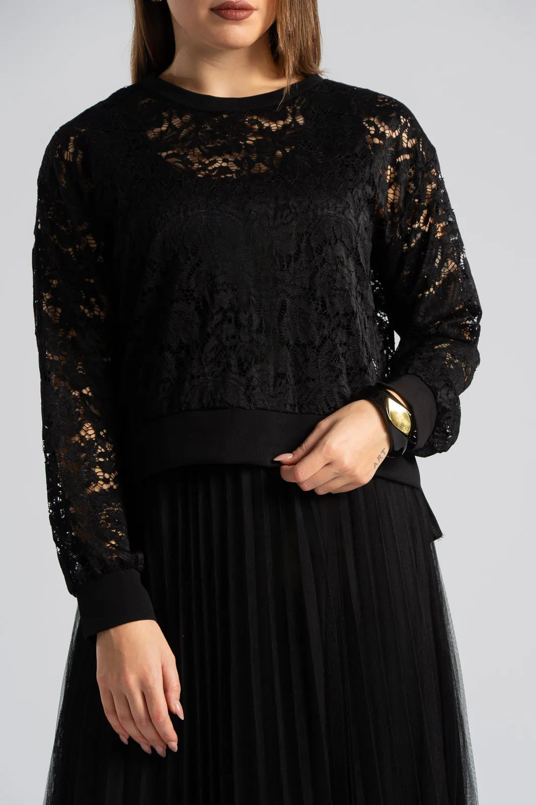 ΦΟΡΕΜΑ ΜΕ ΜΠΛΟΥΖΑ ΛΕΠΤΟΜΕΡΕΙΑ ΔΑΝΤΕΛΑ ΜΑΥΡΟ