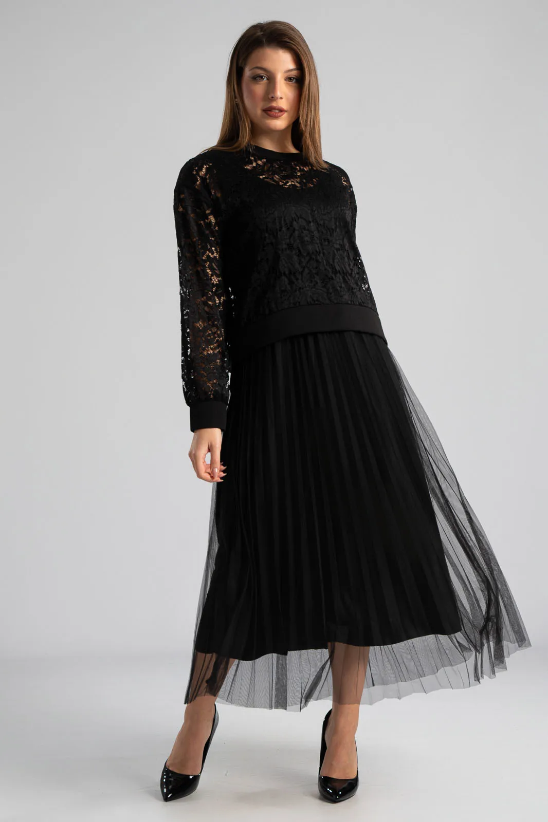 Φόρεμα Με Μπλούζα Λεπτομέρεια Δαντέλα