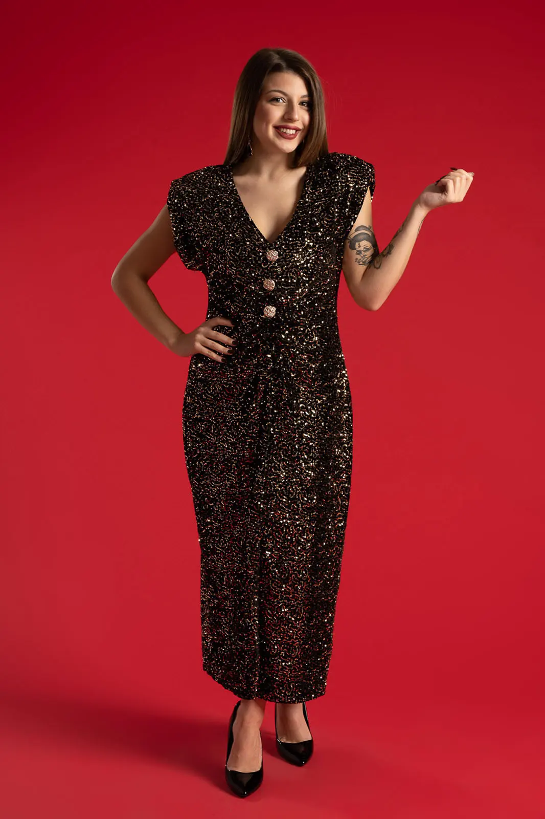 DRESS SLEEVELESS SEQUINS BUTTONS BLACK