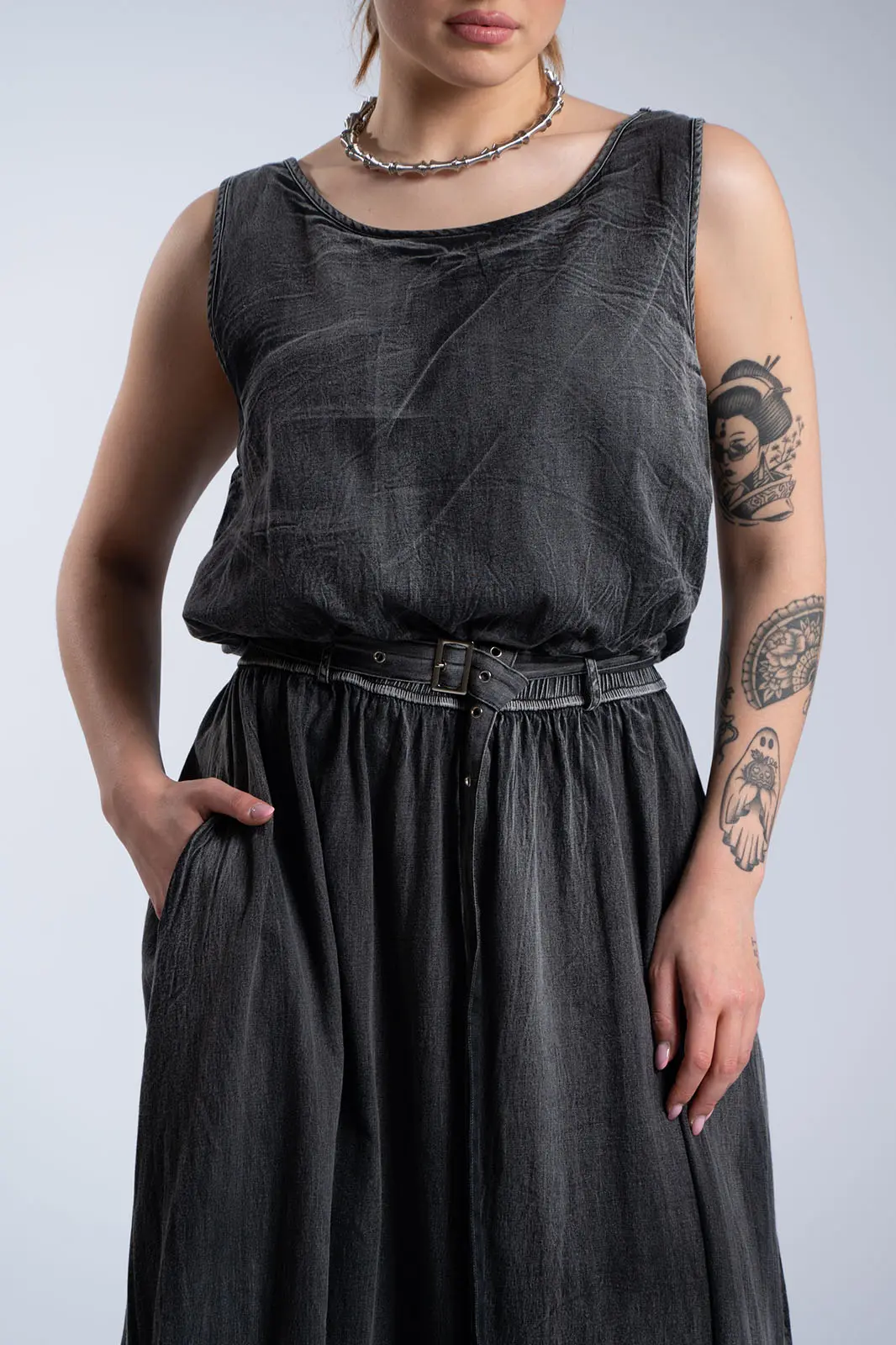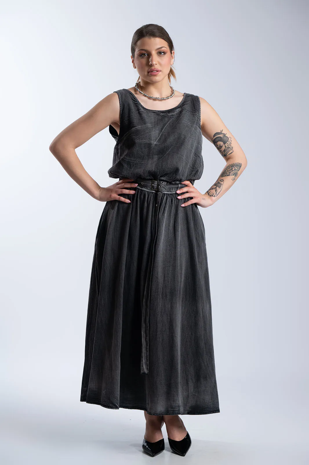 Φόρεμα Βαμβακερό Αμάνικο Λάστιχο Ζώνη