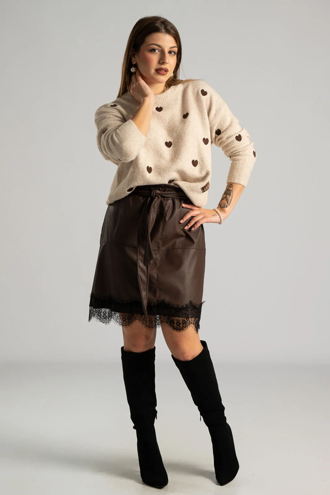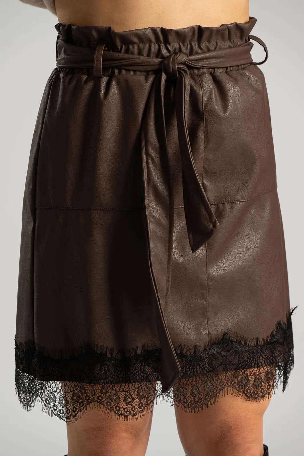 SKIRT LEATHERETTE LACE TRIM CHOCO
