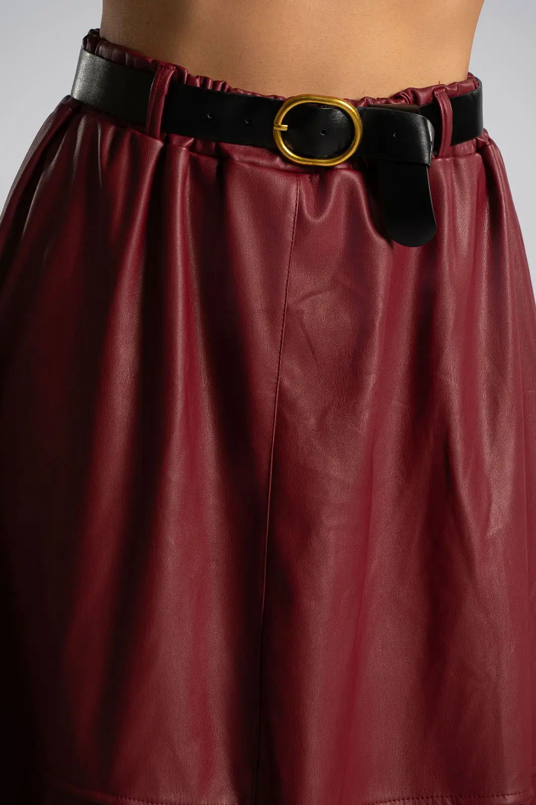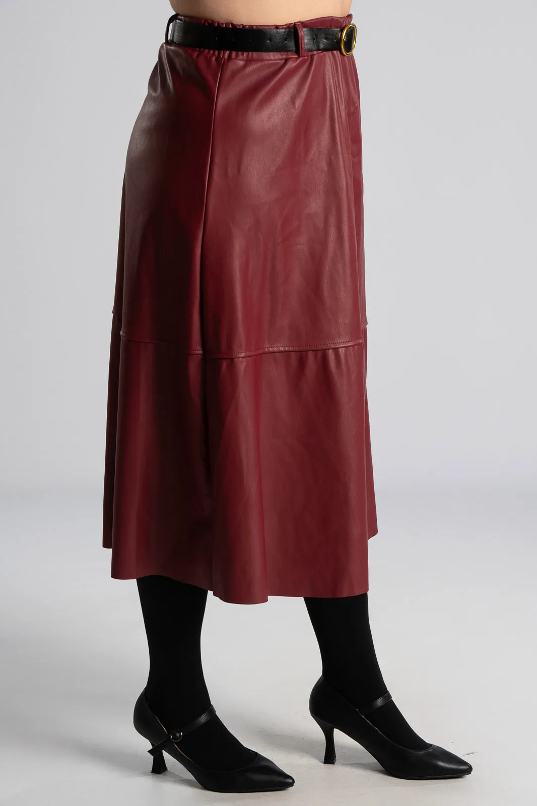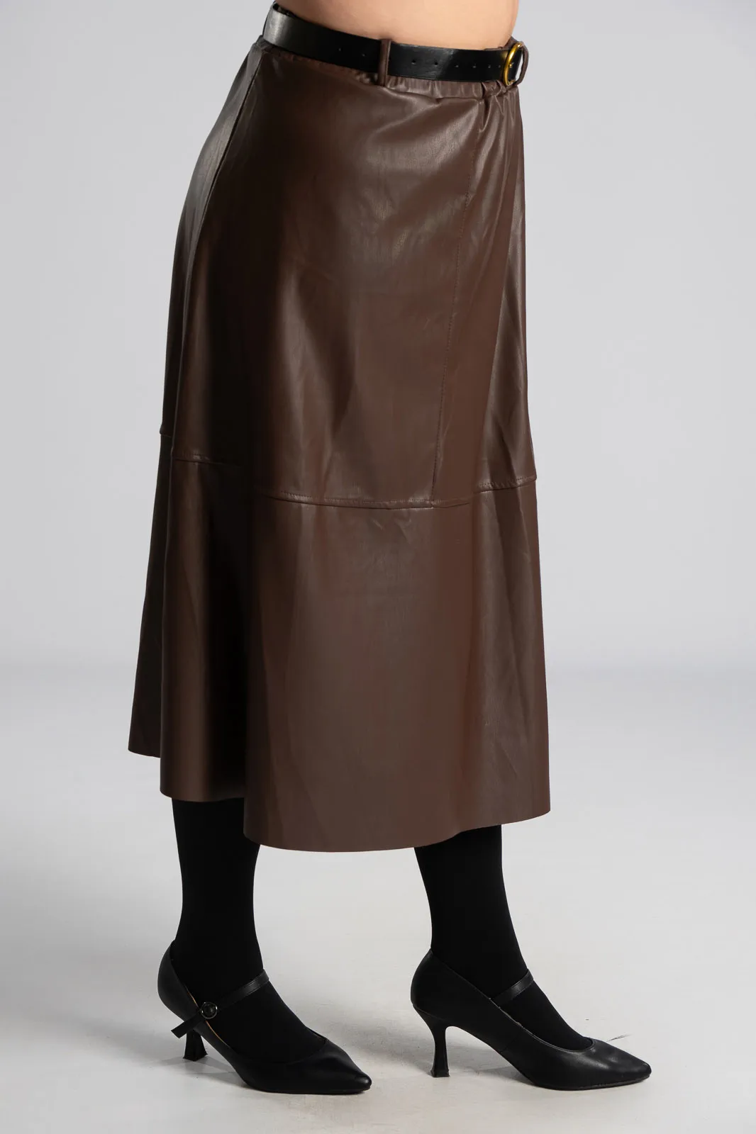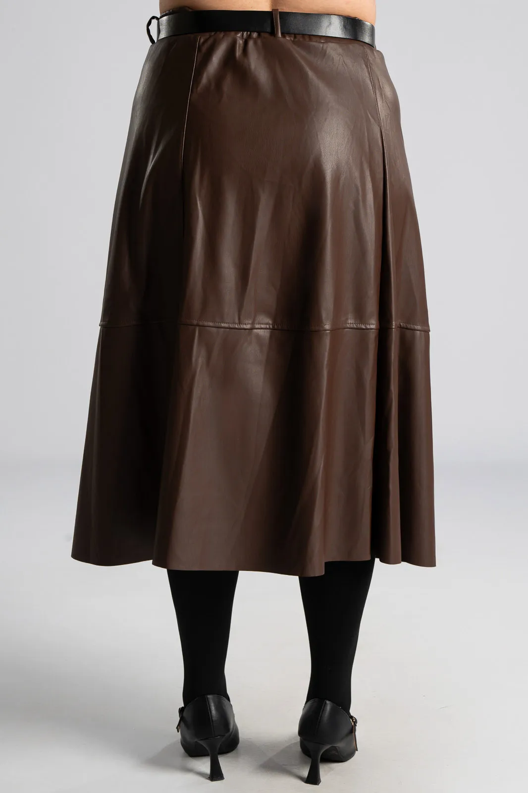 Φούστα δερματίνη σε Α γραμμή. Στη μέση διαθέτει λάστιχο περιμετρικά για καλύτερη εφαρμογή και δική της ζώνη τύπου δερματίνη. Είναι midi. Εσωτερικά έχει την υφή μαλακής τσόχας. Οι μετρήσεις του πίνακα είναι αντιπροσωπευτικές για κάθε προϊόν. 60% polyurethane, 40%polyester.