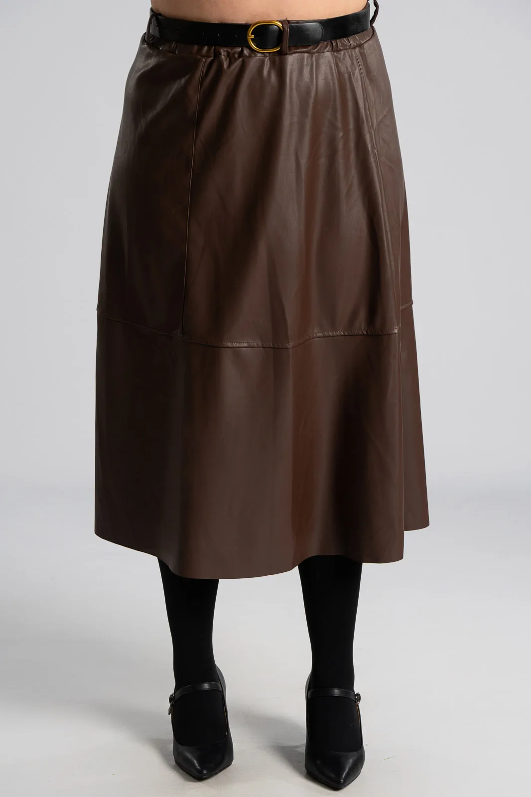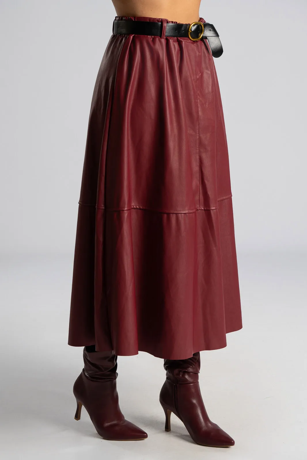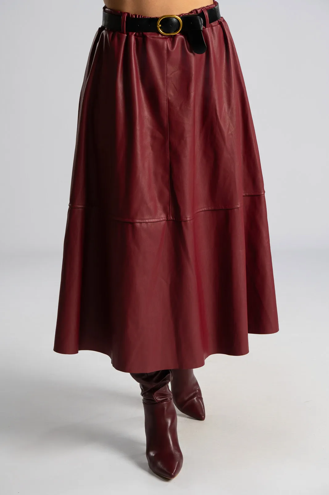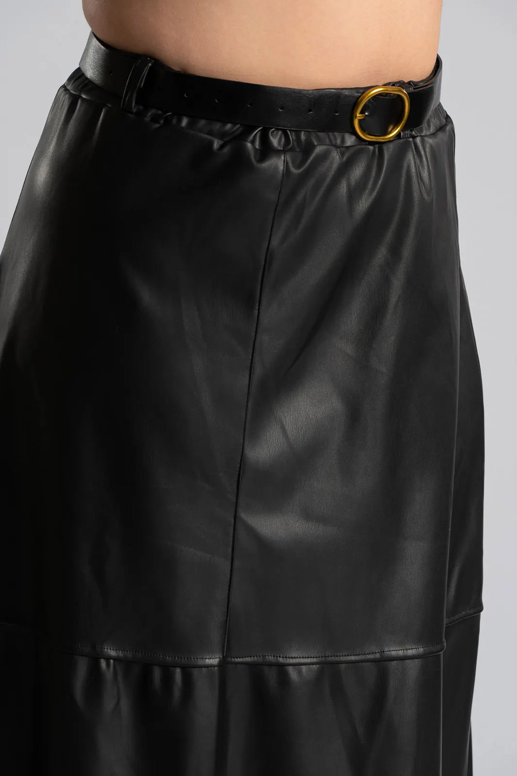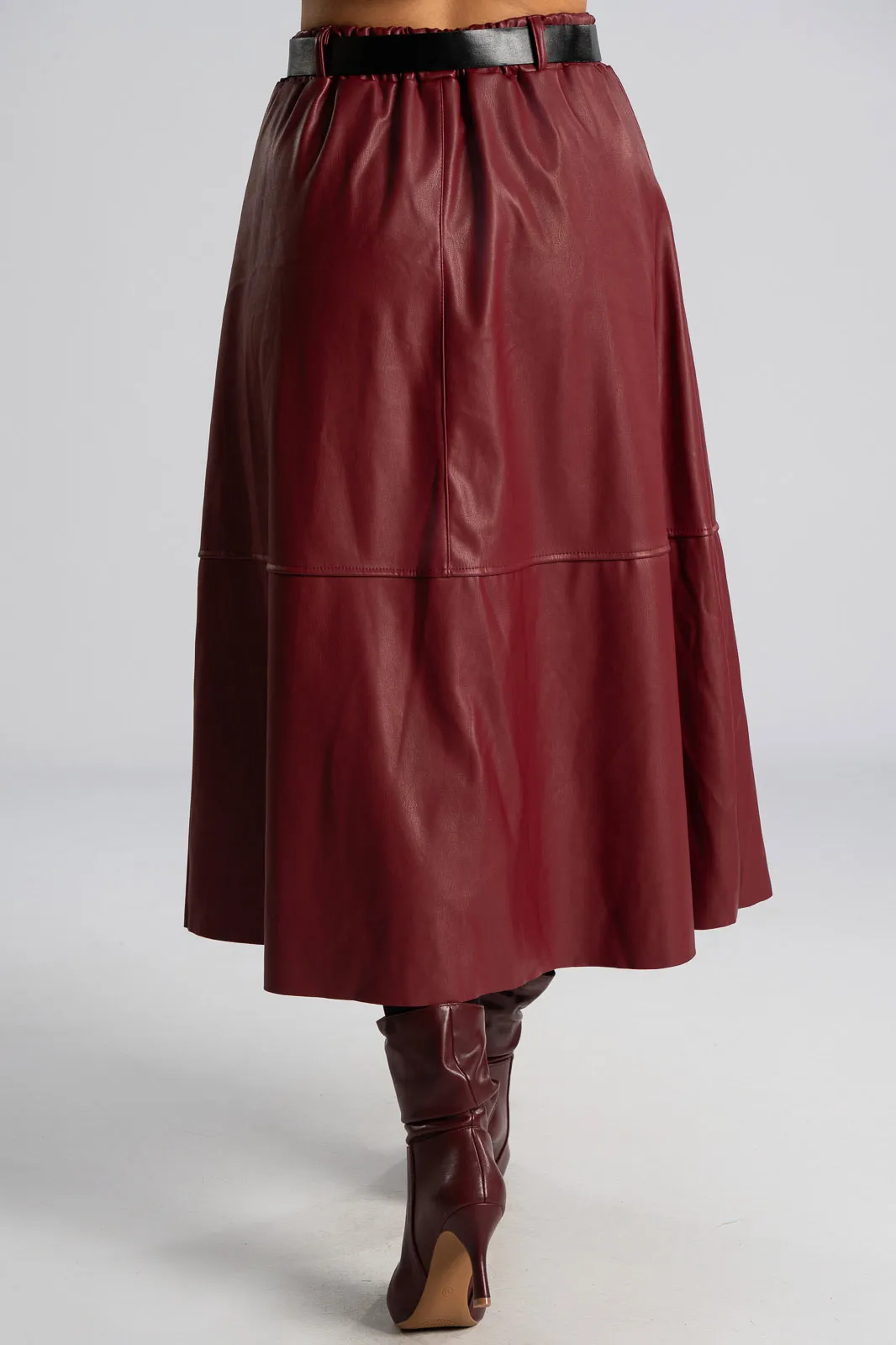 Φούστα δερματίνη σε Α γραμμή. Στη μέση διαθέτει λάστιχο περιμετρικά για καλύτερη εφαρμογή και δική της ζώνη τύπου δερματίνη. Είναι midi. Εσωτερικά έχει την υφή μαλακής τσόχας. Οι μετρήσεις του πίνακα είναι αντιπροσωπευτικές για κάθε προϊόν. 60% polyurethane, 40%polyester.