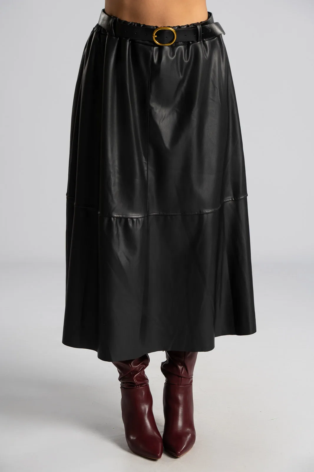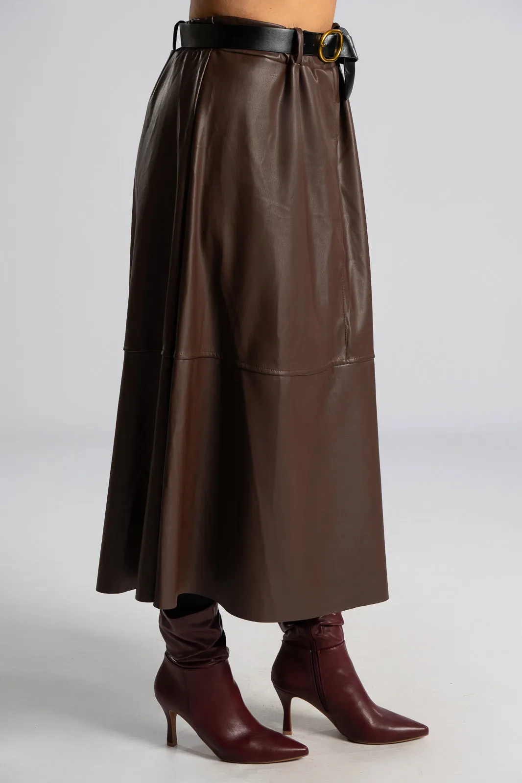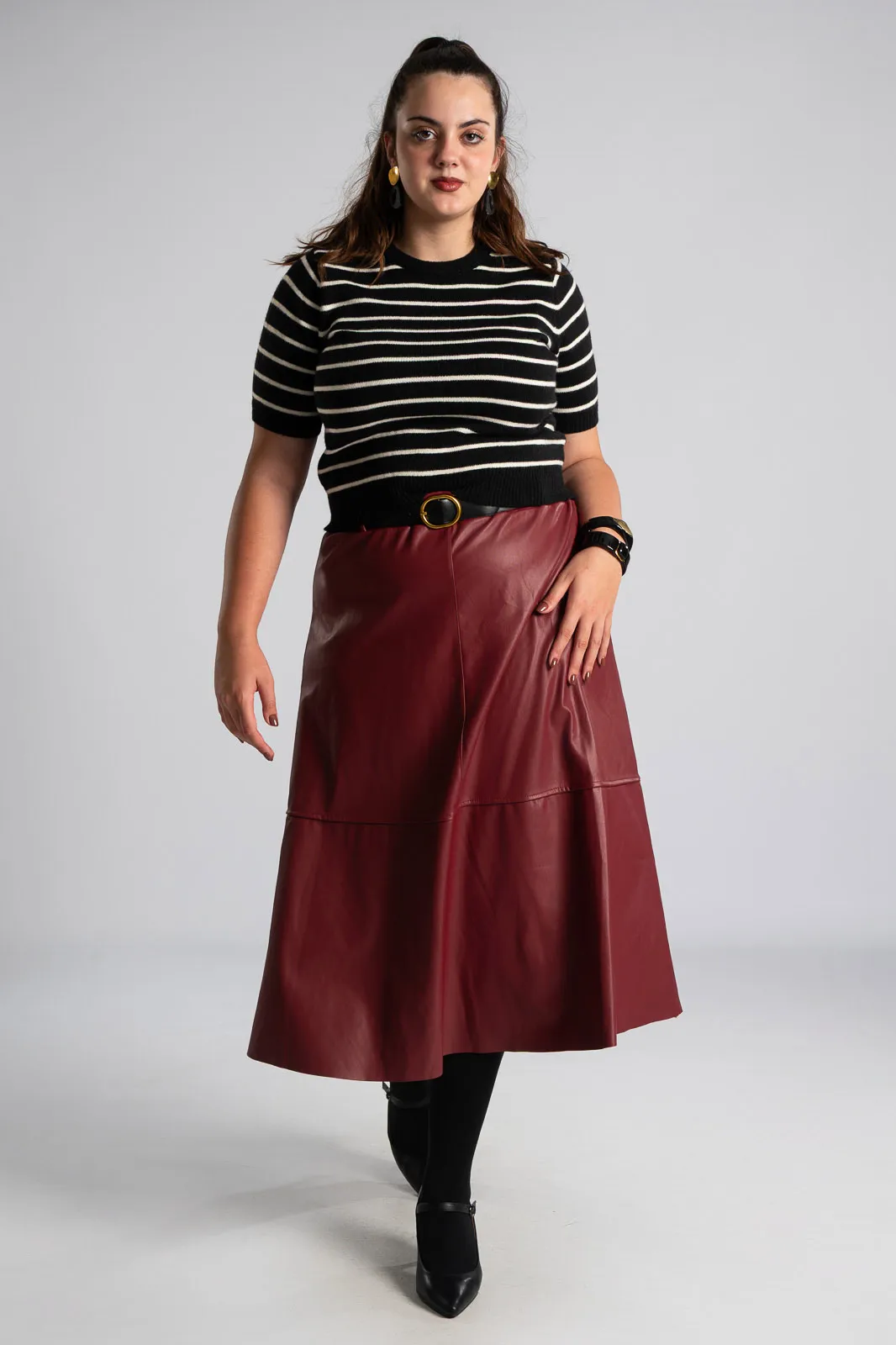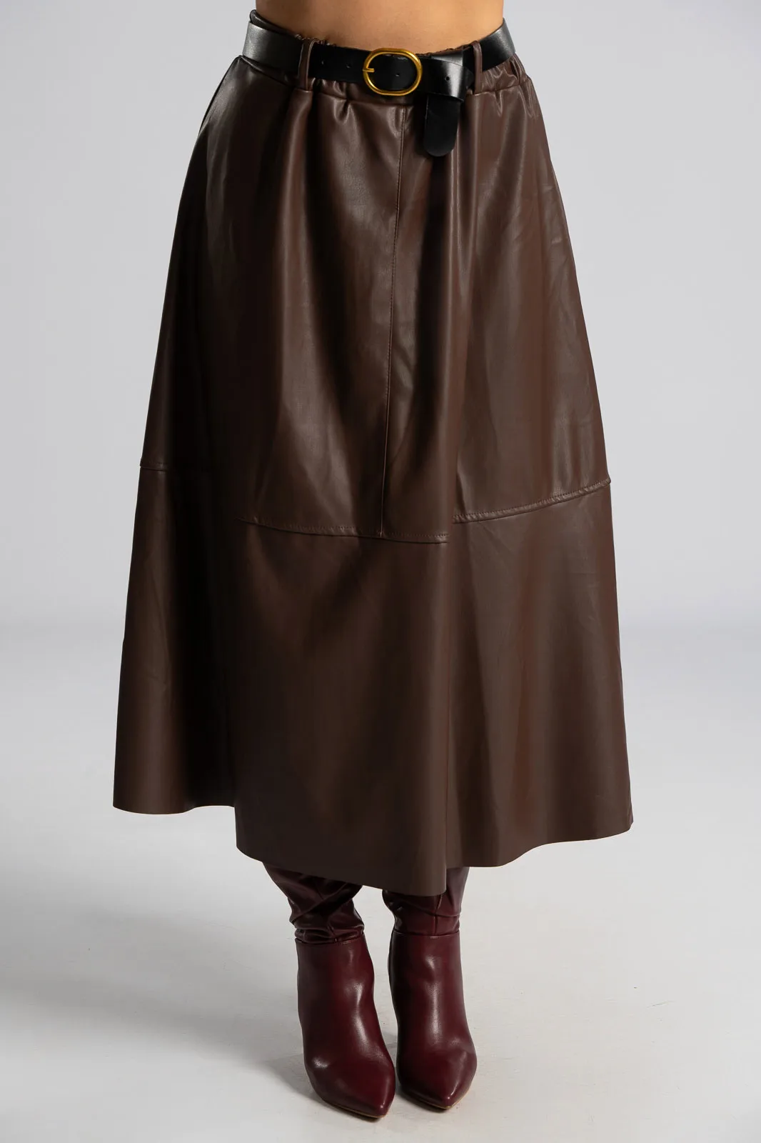 Φούστα δερματίνη σε Α γραμμή. Στη μέση διαθέτει λάστιχο περιμετρικά για καλύτερη εφαρμογή και δική της ζώνη τύπου δερματίνη. Είναι midi. Εσωτερικά έχει την υφή μαλακής τσόχας. Οι μετρήσεις του πίνακα είναι αντιπροσωπευτικές για κάθε προϊόν. 60% polyurethane, 40%polyester.