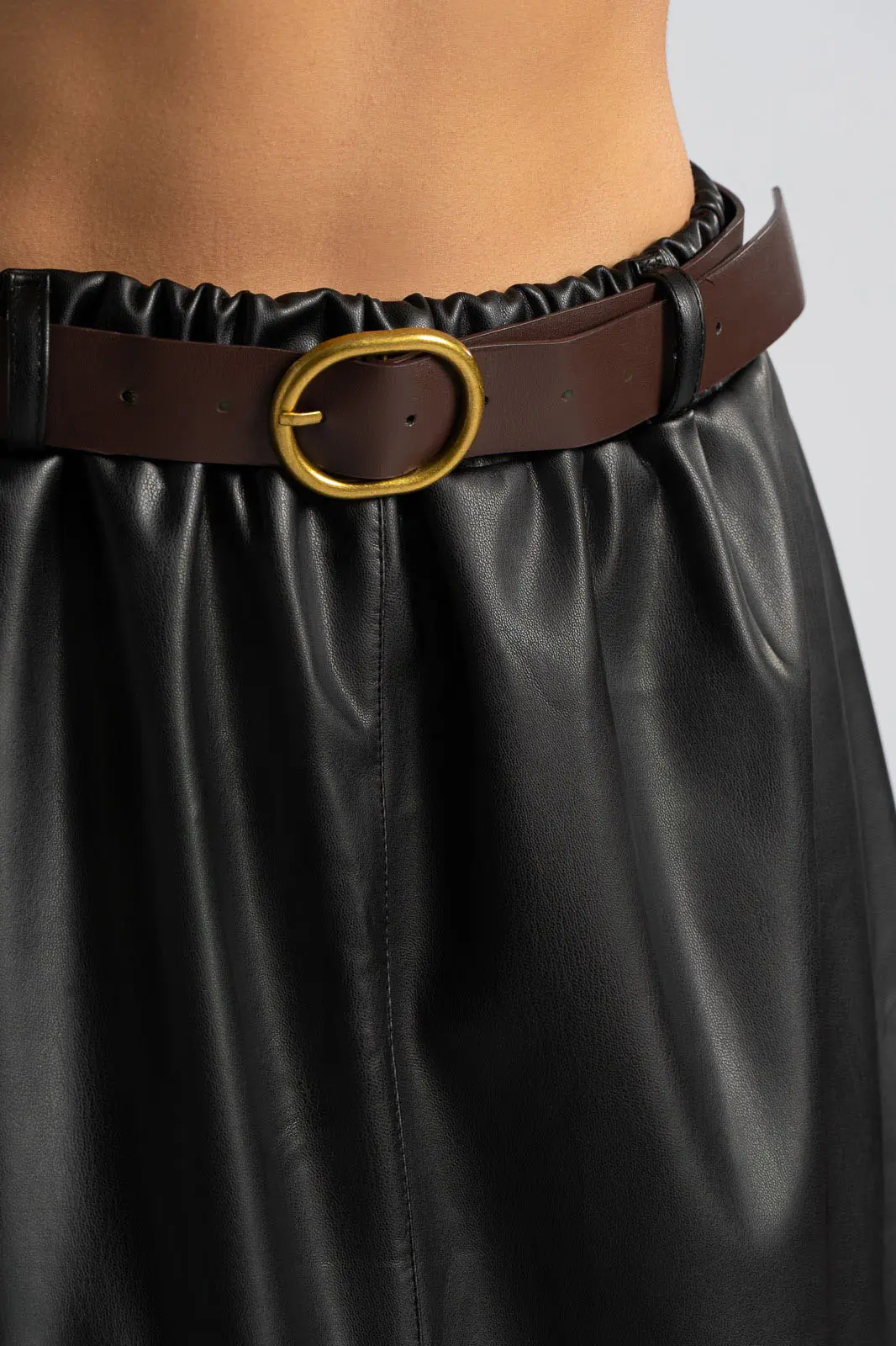 MIDI LEATHERETTE SKIRT BELT CHOCO