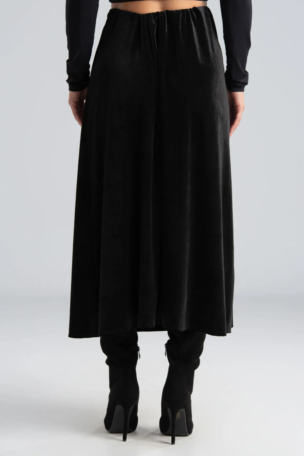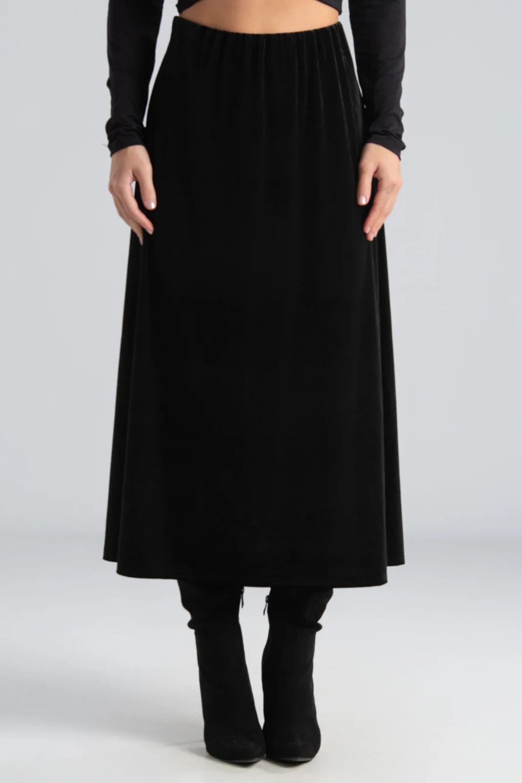 Φούστα midi με λάστιχο στη μέση για καλύτερη εφαρμογή. Είναι velvet και έχει Α γραμμή. Είναι μια ιδανική επιλογή για κάθε περίσταση. Οι μετρήσεις του πίνακα είναι αντιπροσωπευτικές για κάθε κωδικό. 95% polyester, 5% elastan.