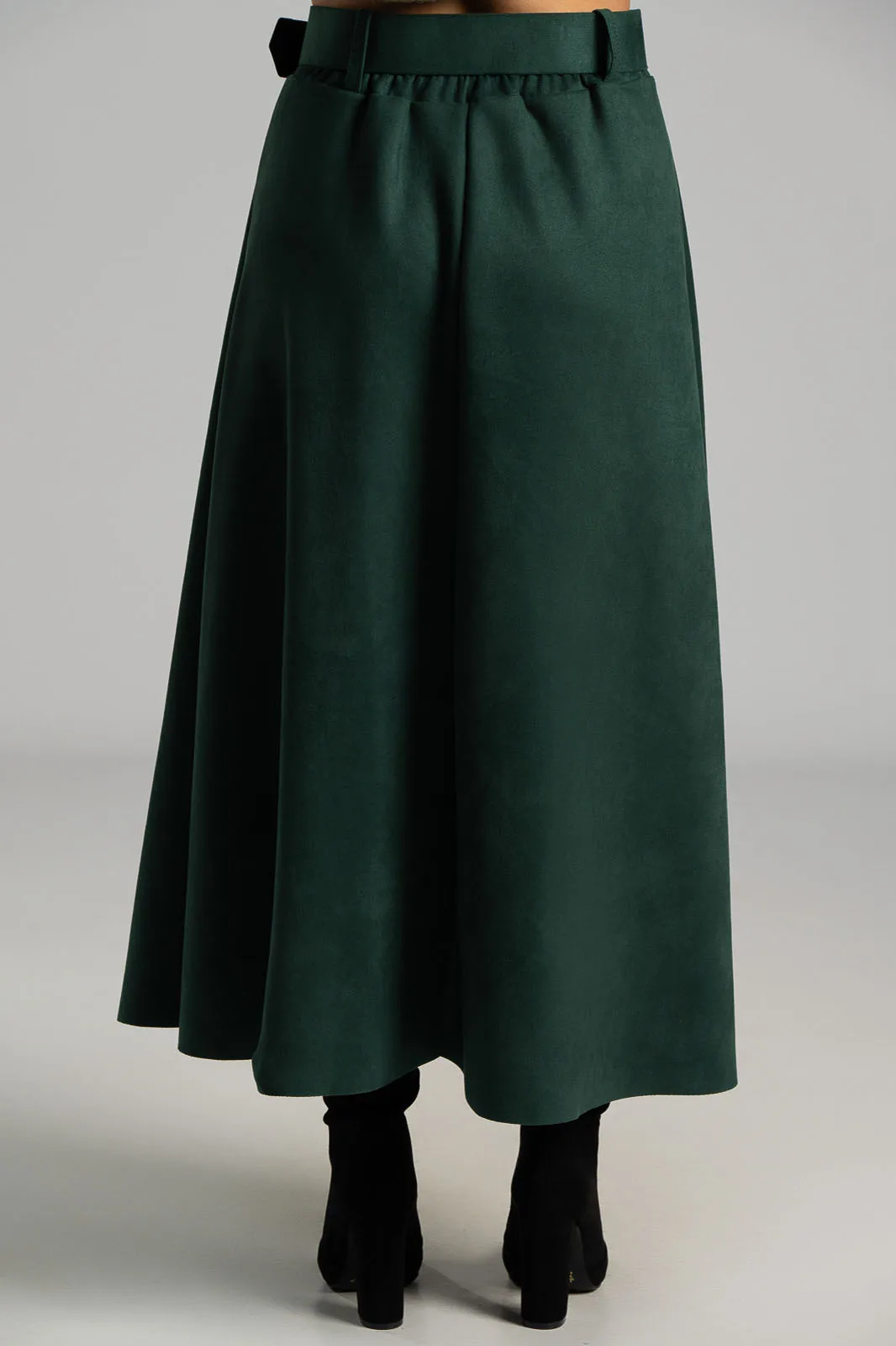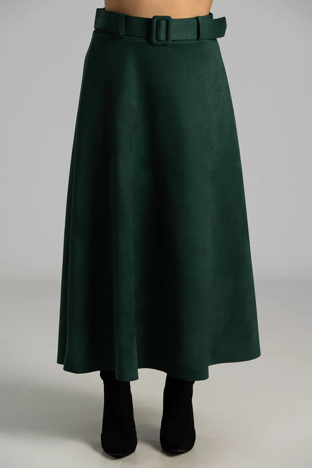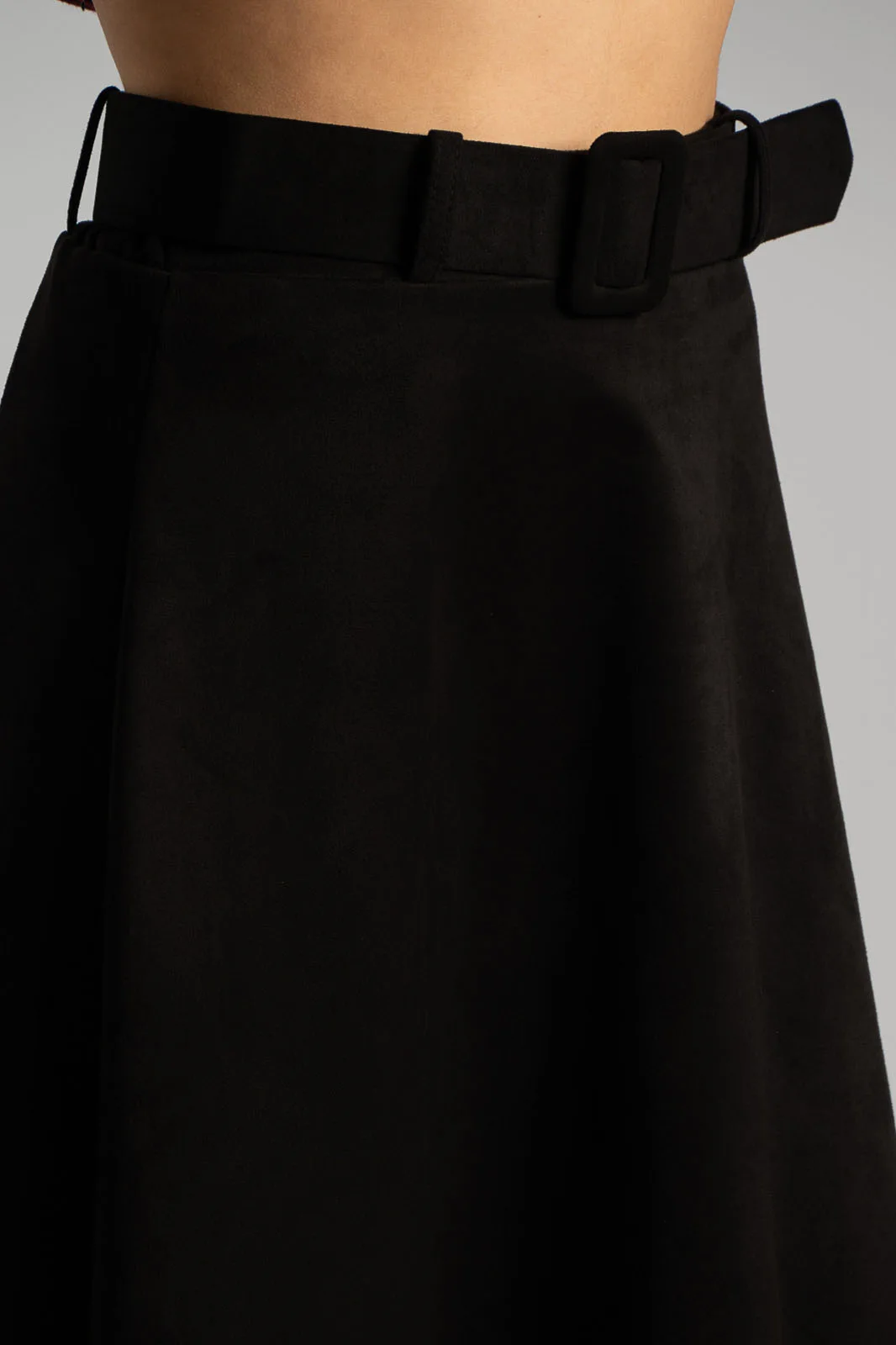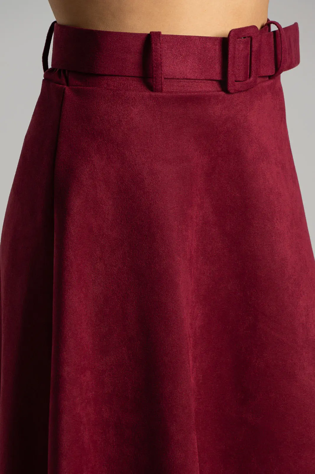 Φούστα σουέτ midi σε γραμμή Α. Διαθέτει στο πίσω μέρος της μέσης λάστιχο. Έχει δική της ζώνη στην ίδια απόχρωση και υφή. Οι μετρήσεις του πίνακα είναι αντιπροσωπευτικές για κάθε κωδικό. 95% polyester, 5% elastan.