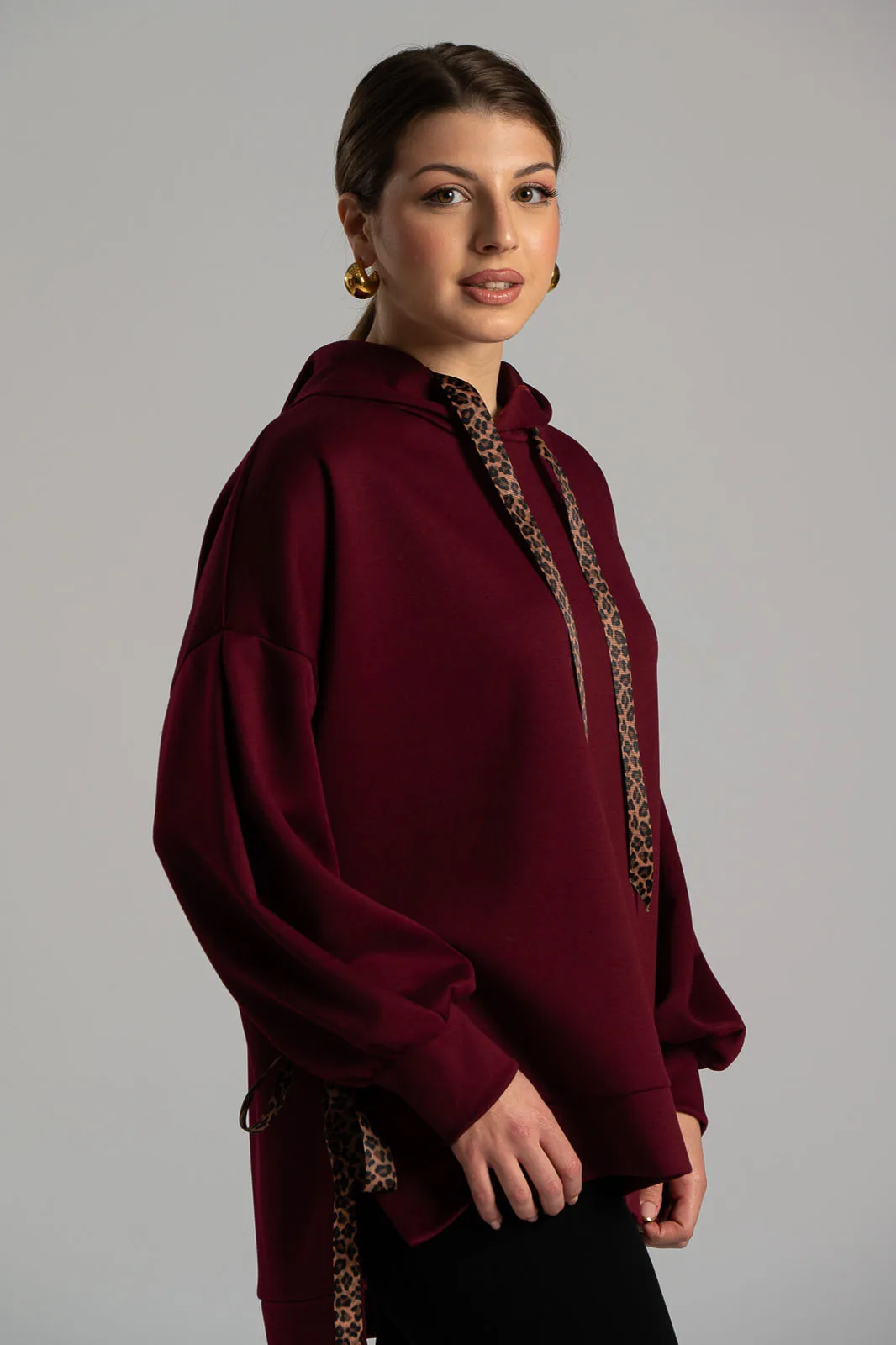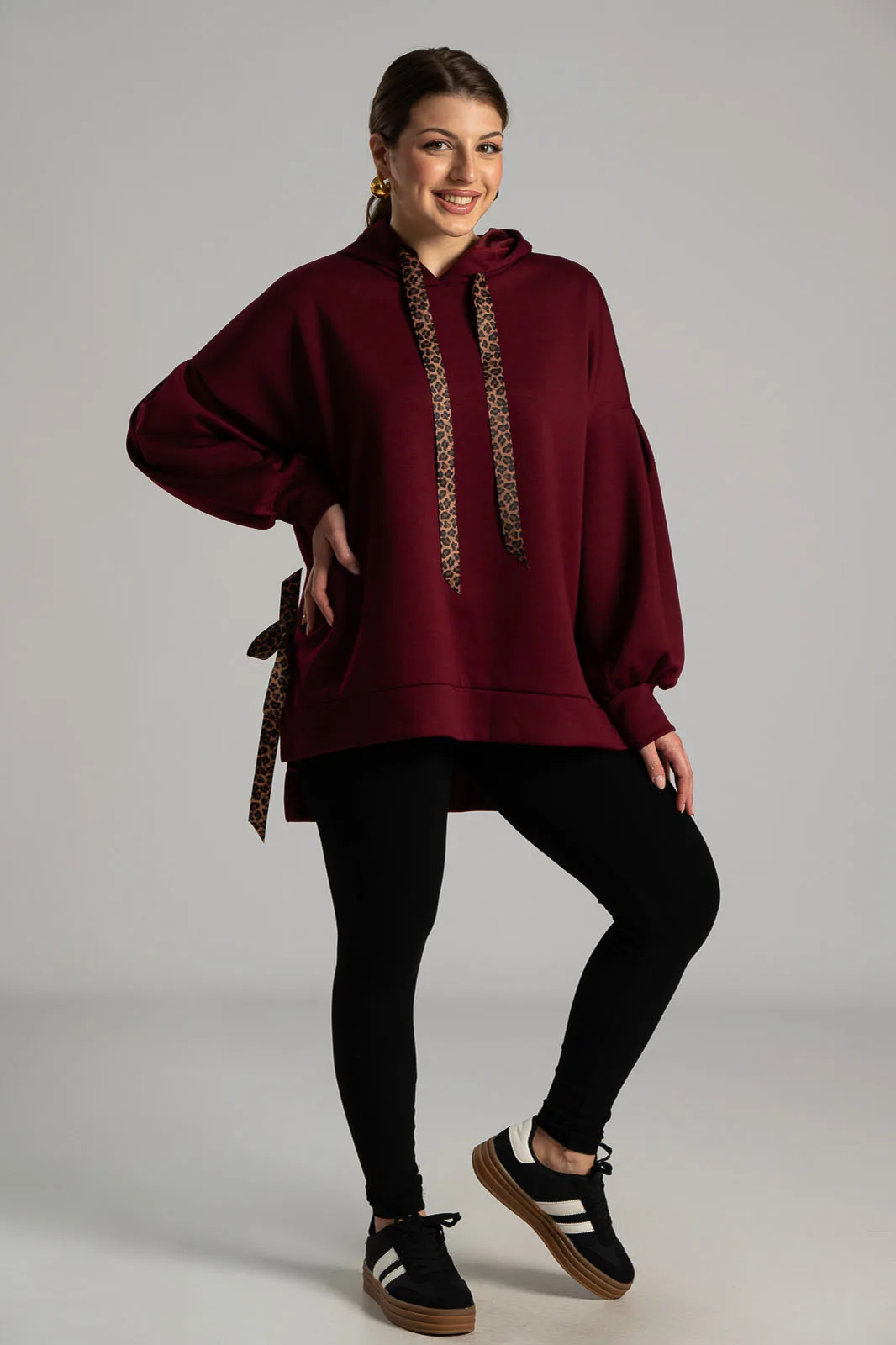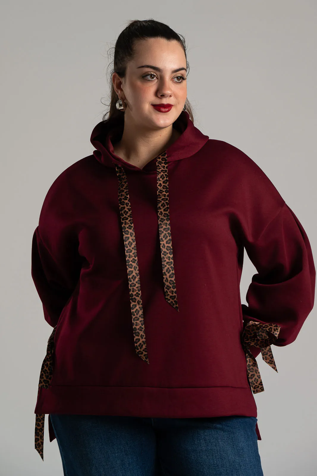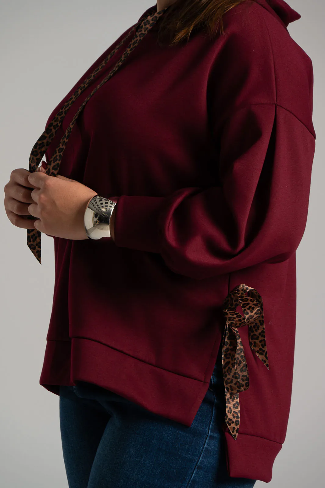 SWEATSHIRT RIBBON LEOPARD DETAILS DARK RED