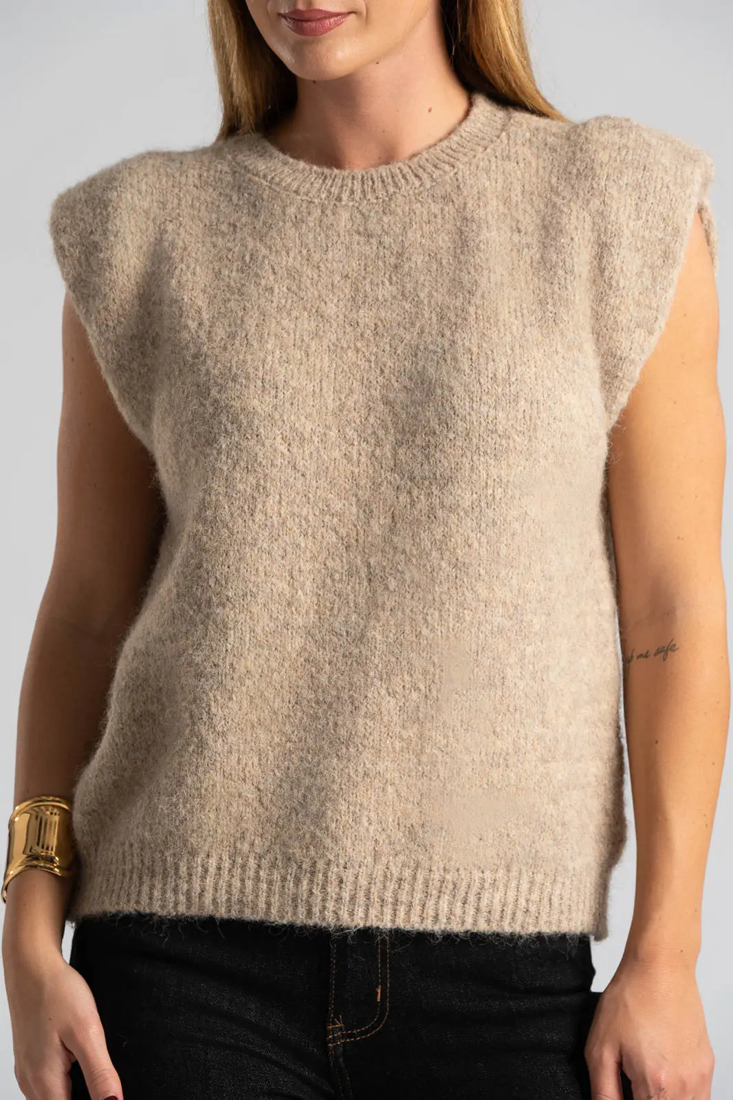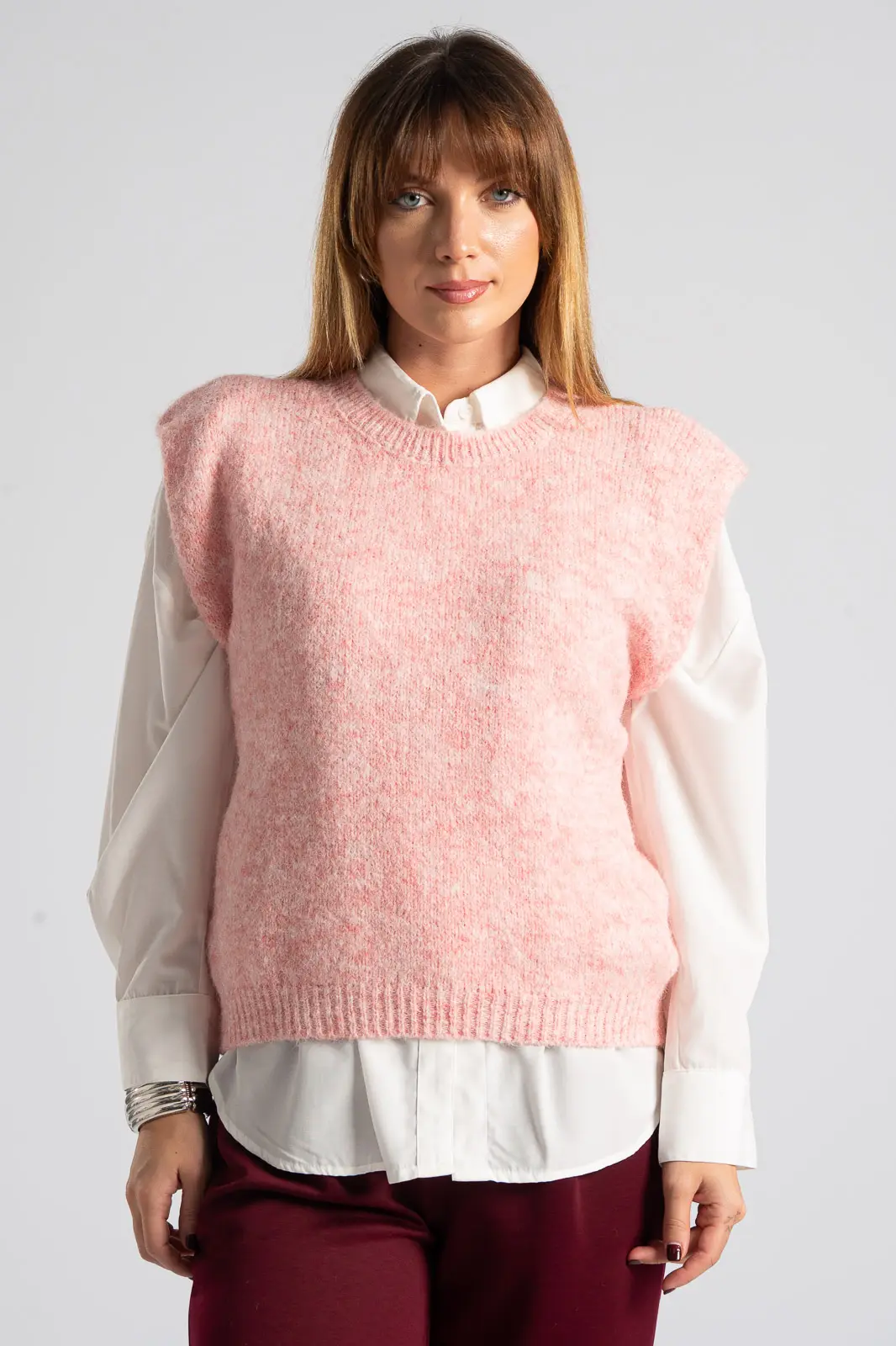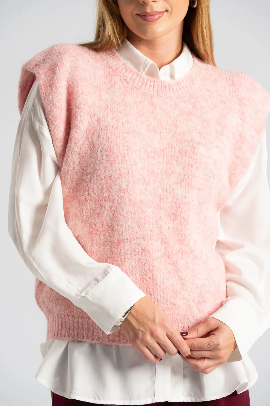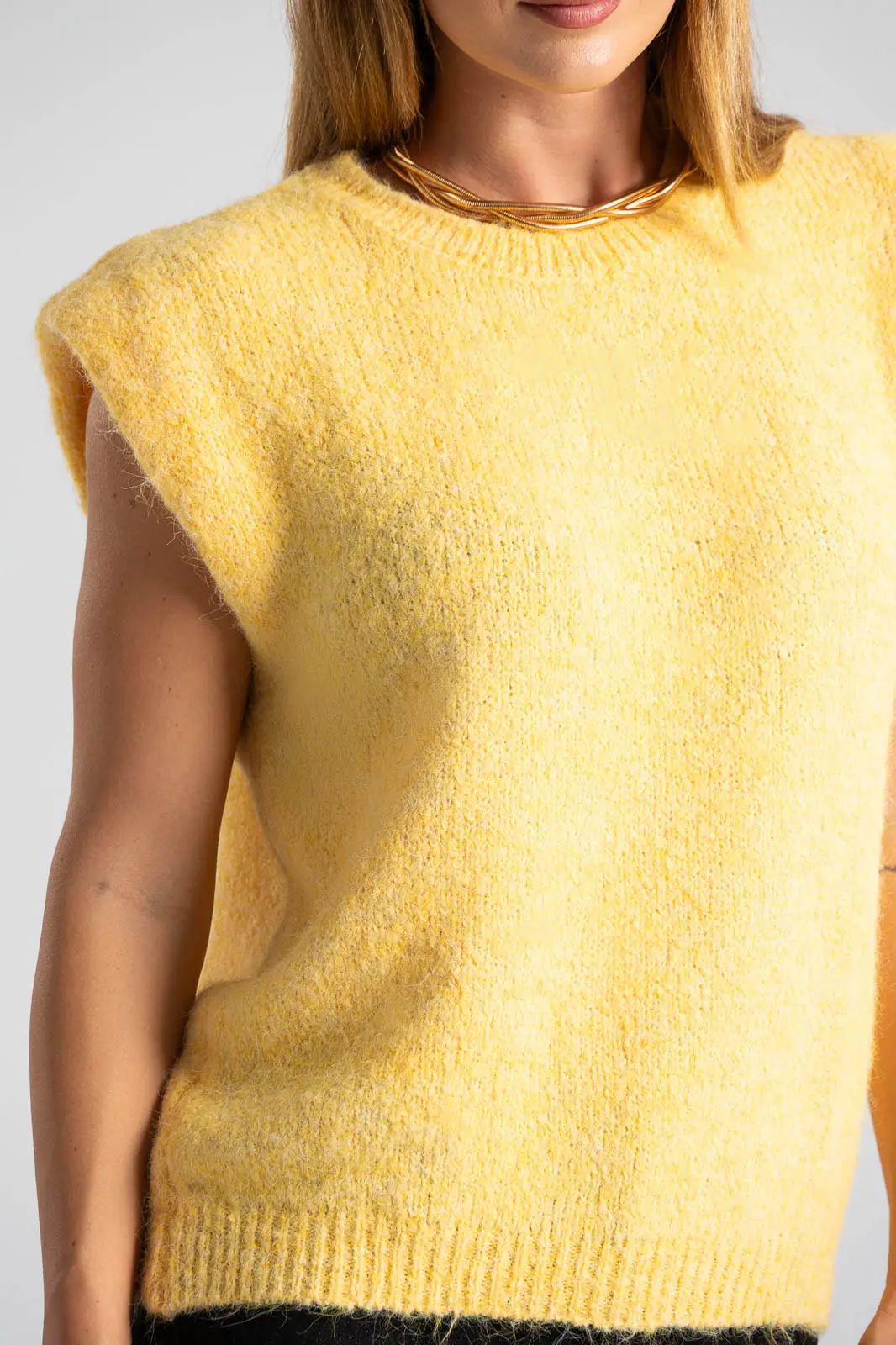 Καζάκα πλεκτή. Έχει στρογγυλή λαιμόκοψη. Διαθέτει πυκνή πλέξη. Έχει rib ύφανση στη λαιμόκοψη και στο τελείωμά της. Προτείνεται βάση οδηγιών πλύσιμο στο χέρι. Οι μετρήσεις του πίνακα είναι αντιπροσωπευτικές για κάθε κωδικό. 59% polyester recycle, 21% nylon, 8% wool, 1% spandex.
