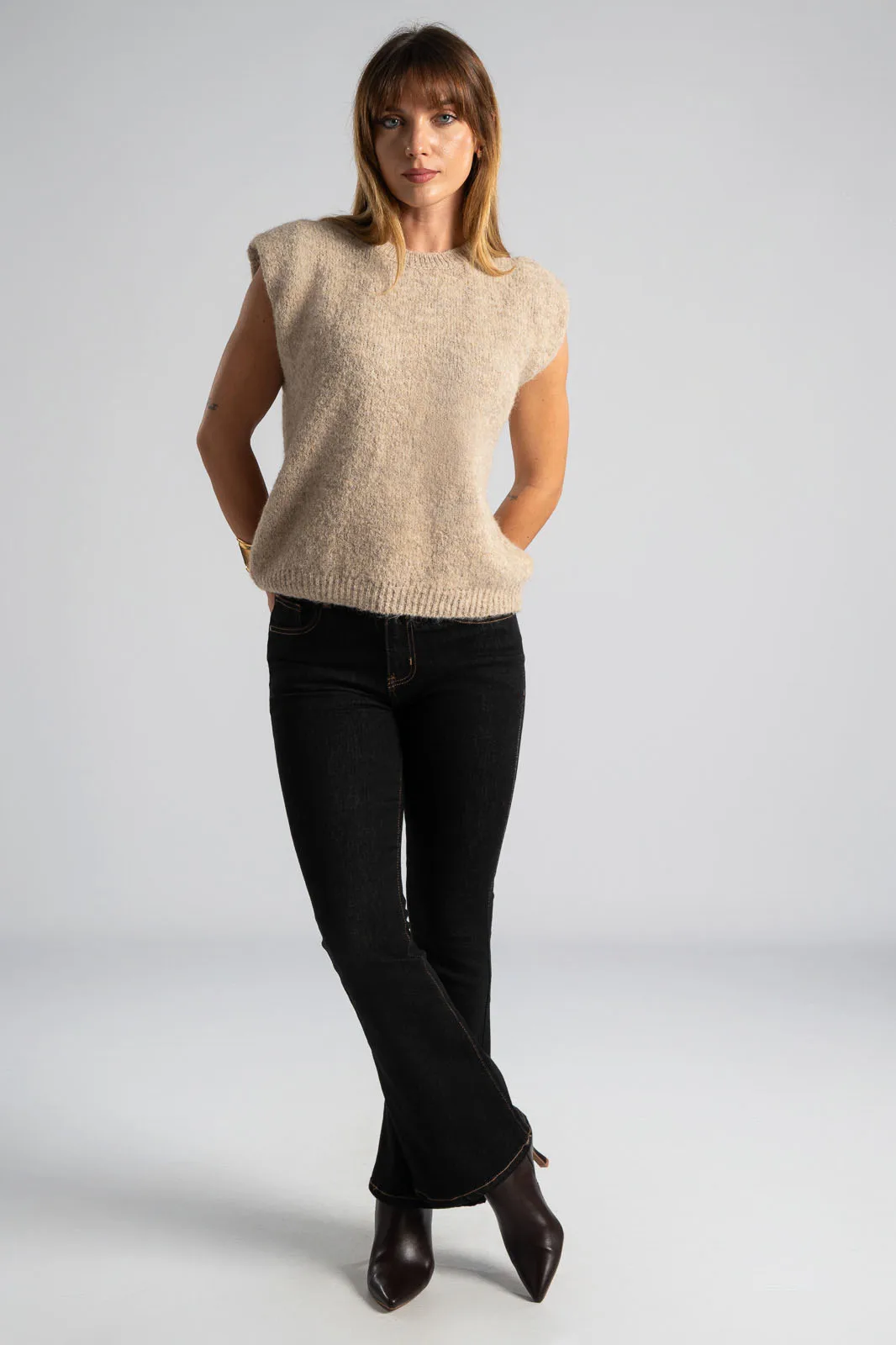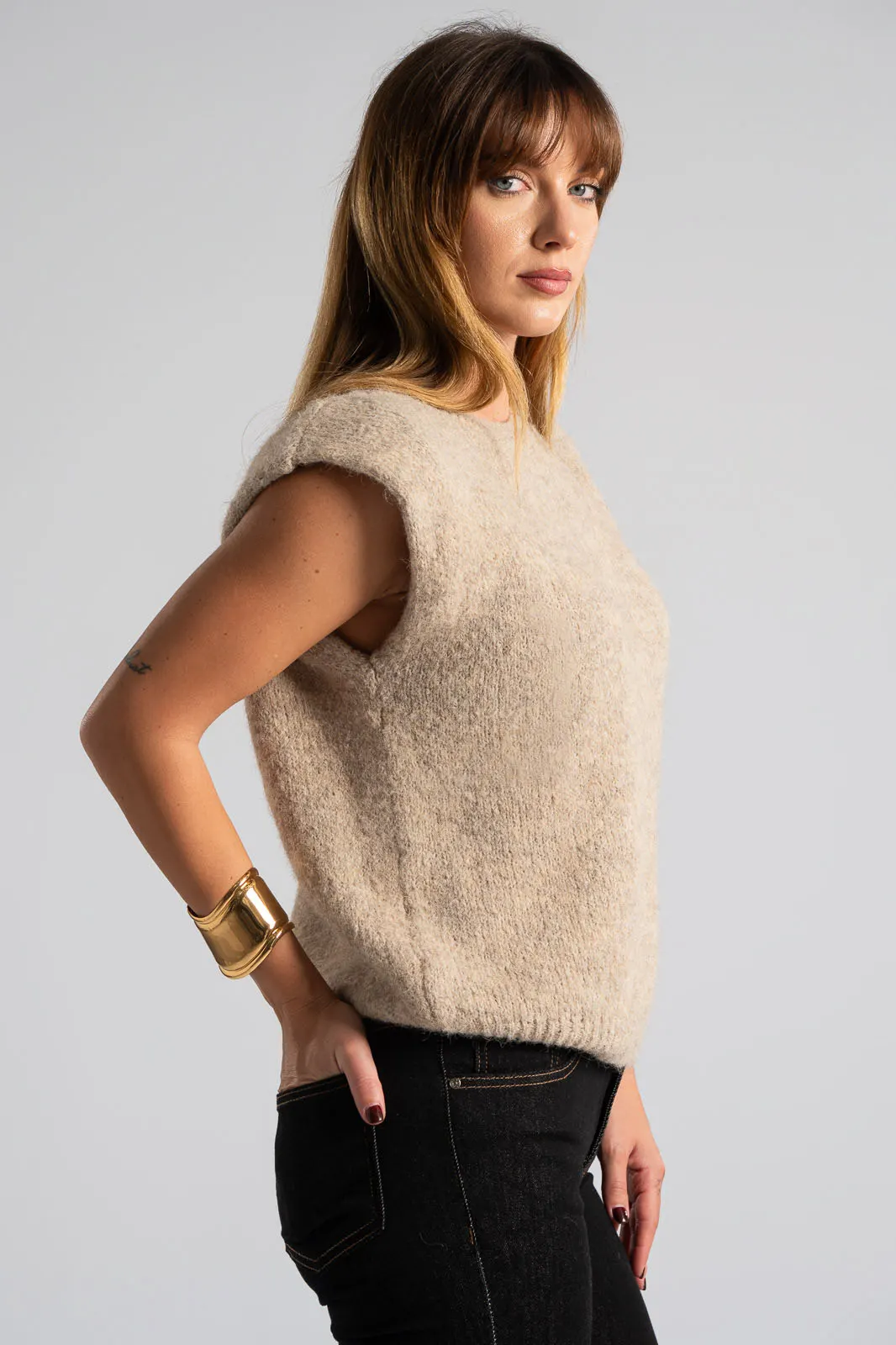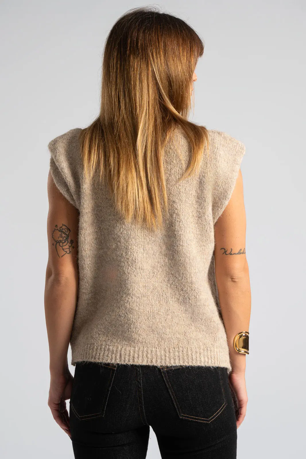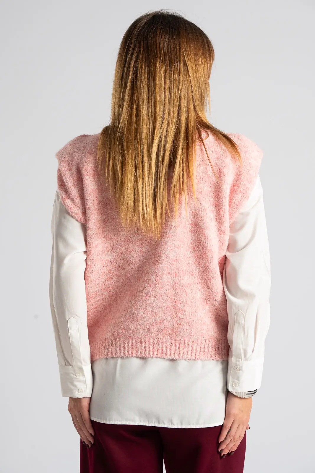 Καζάκα πλεκτή. Έχει στρογγυλή λαιμόκοψη. Διαθέτει πυκνή πλέξη. Έχει rib ύφανση στη λαιμόκοψη και στο τελείωμά της. Προτείνεται βάση οδηγιών πλύσιμο στο χέρι. Οι μετρήσεις του πίνακα είναι αντιπροσωπευτικές για κάθε κωδικό. 59% polyester recycle, 21% nylon, 8% wool, 1% spandex.