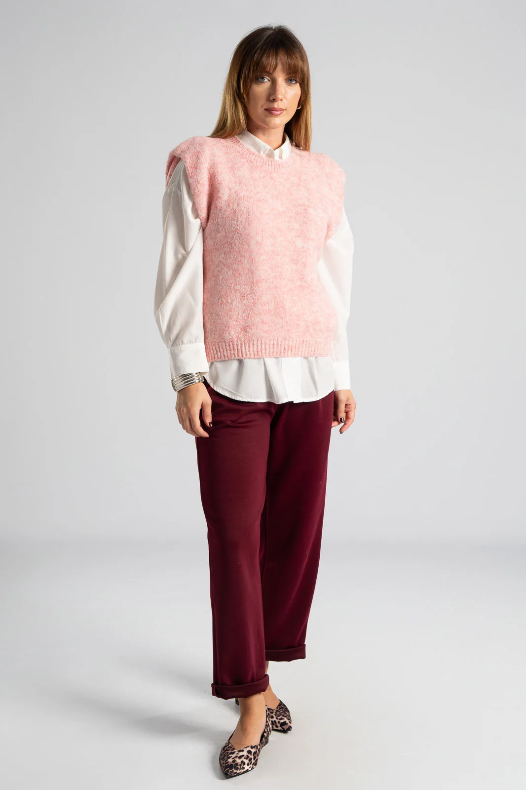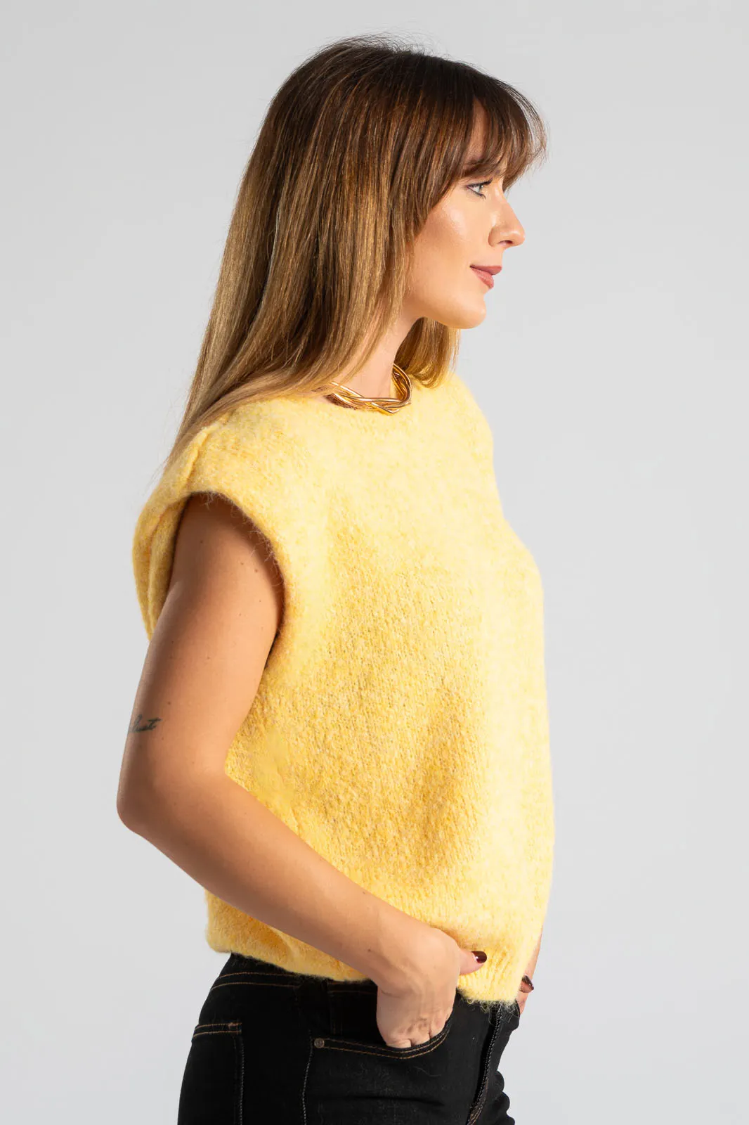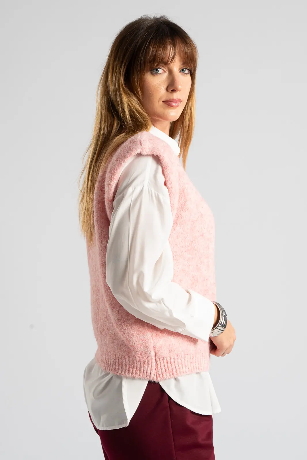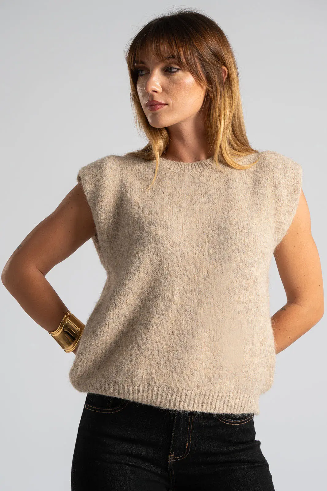 Καζάκα πλεκτή. Έχει στρογγυλή λαιμόκοψη. Διαθέτει πυκνή πλέξη. Έχει rib ύφανση στη λαιμόκοψη και στο τελείωμά της. Προτείνεται βάση οδηγιών πλύσιμο στο χέρι. Οι μετρήσεις του πίνακα είναι αντιπροσωπευτικές για κάθε κωδικό. 59% polyester recycle, 21% nylon, 8% wool, 1% spandex.