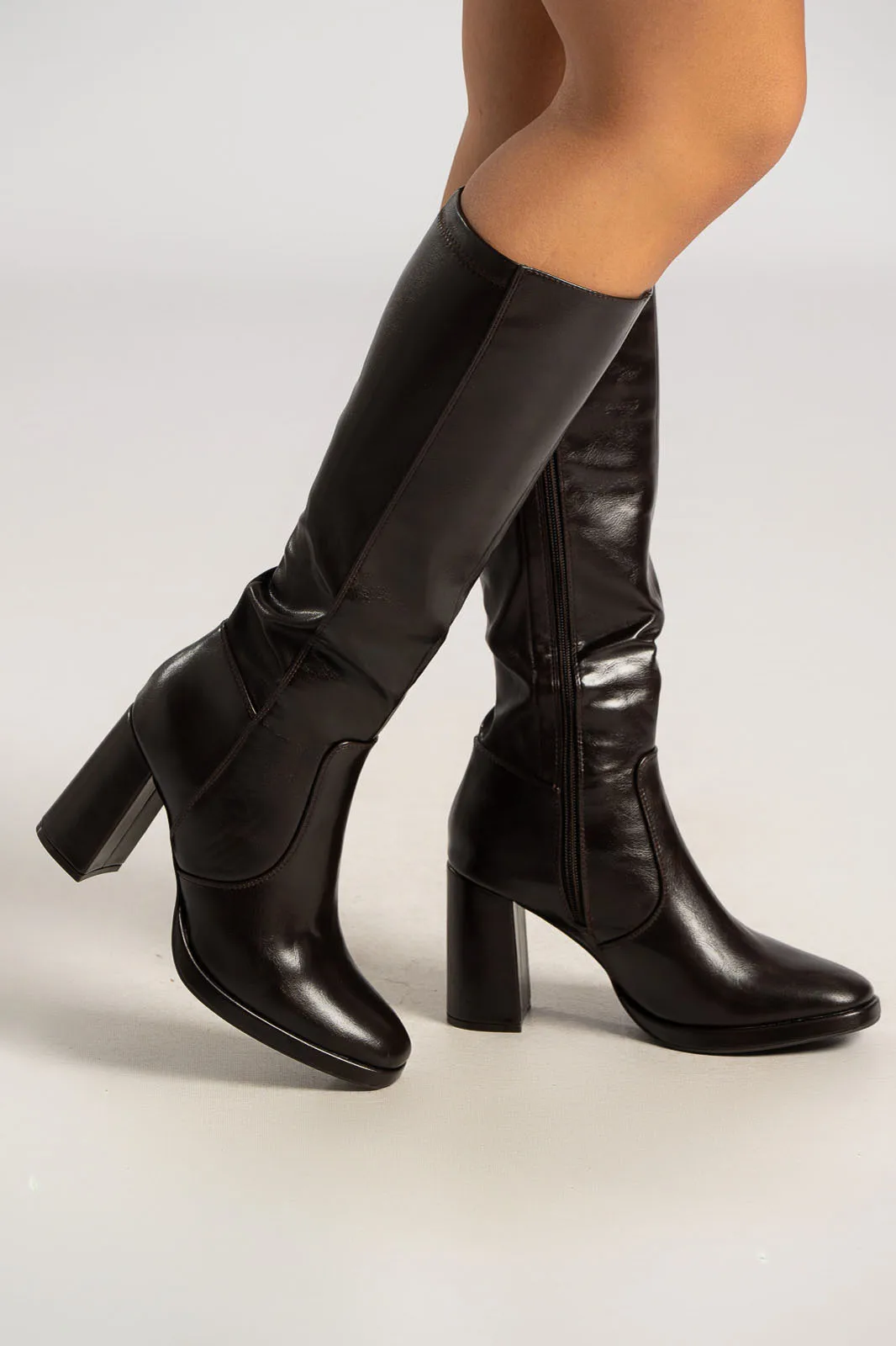 KNEE-HIGH LEATHERETTE BOOTS CHOCO