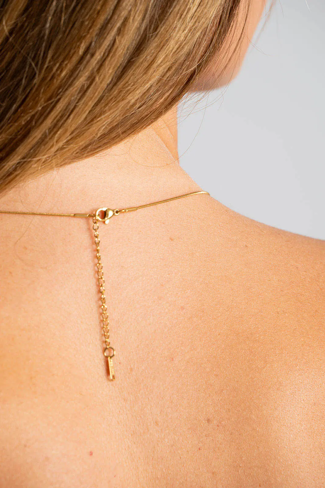 Necklace made of high-quality steel. It has a boomerang-style pendant with a black decorative stone. It is an ideal choice for any occasion. Length 44cm and 5cm extension.