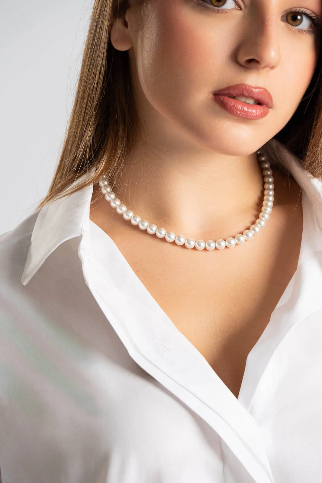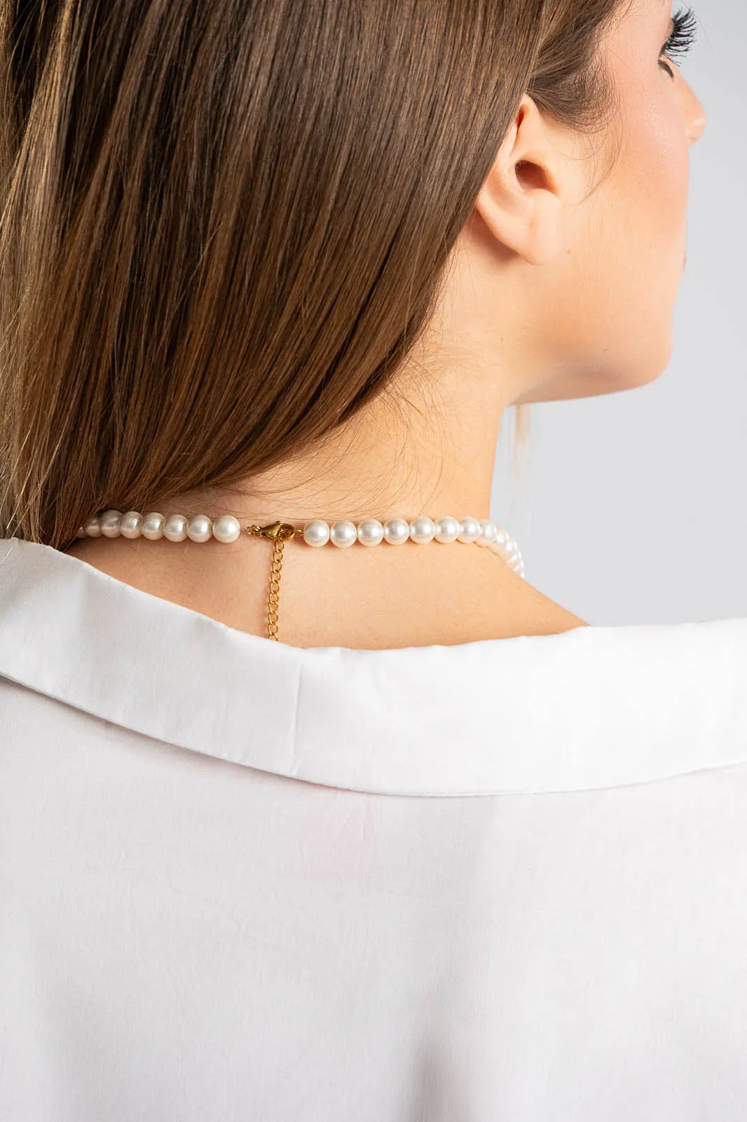 Κολιέ με πέρλες σε όλο το μήκος του. Είναι μια ιδανική επιλογή για να ολοκληρώσεις κάθε look σου αλλά και να δημιουργήσεις ένα μοναδικό layering. Το μήκος του είναι 40cm και επέκταση 5cm. Stainless steel.