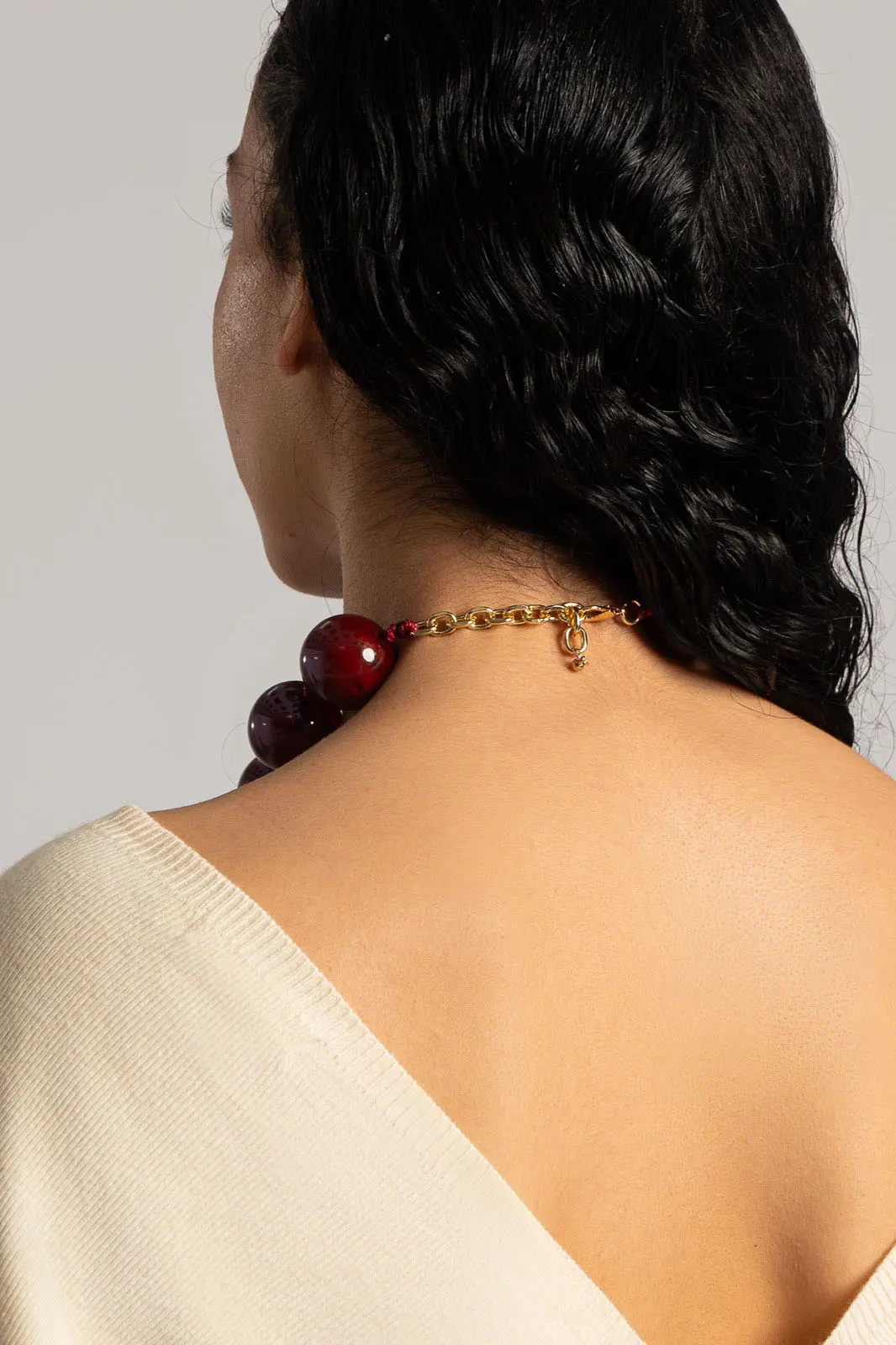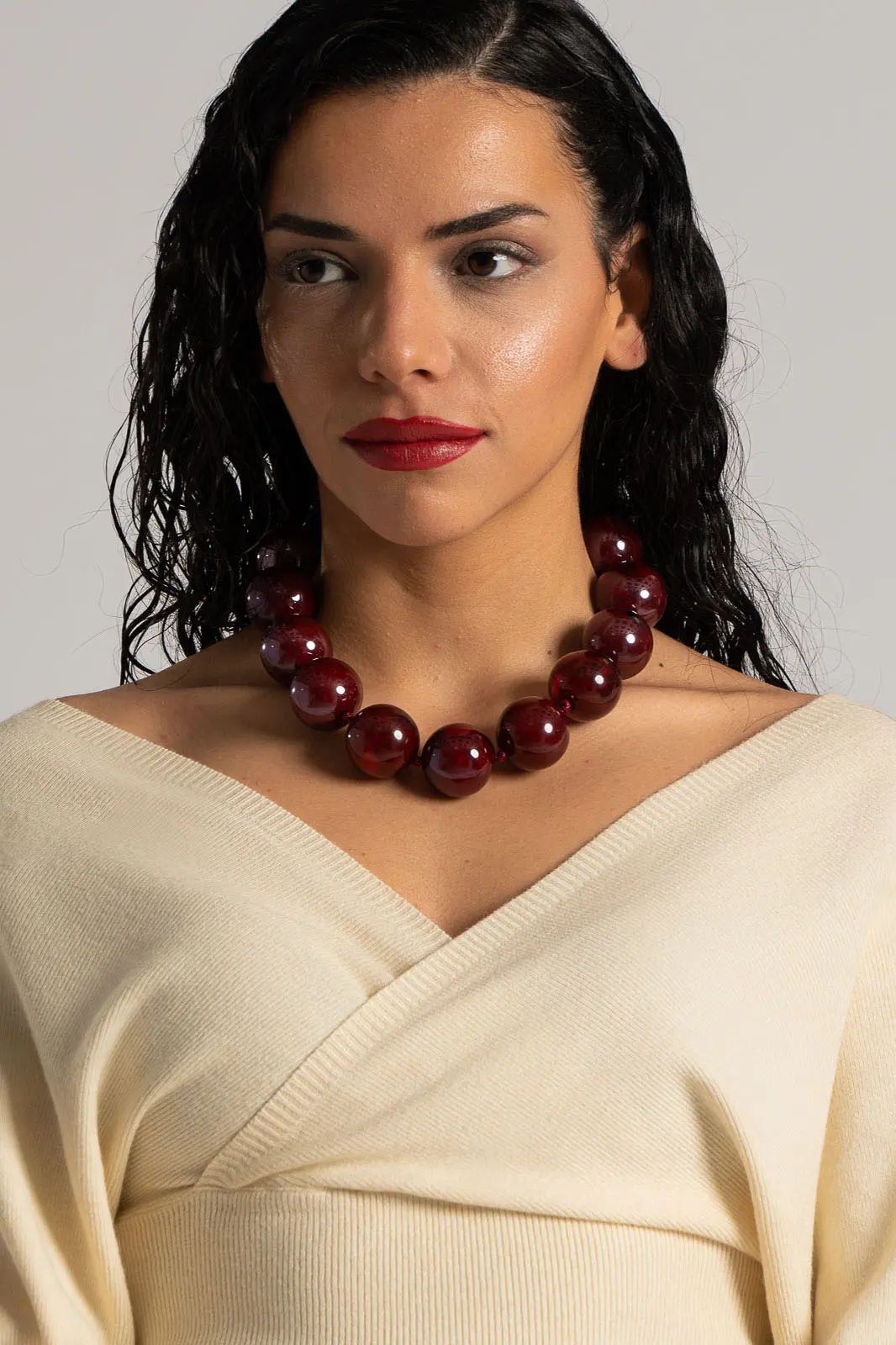 NECKLACE PRINCESS LARGE BEADS DUSTY RED