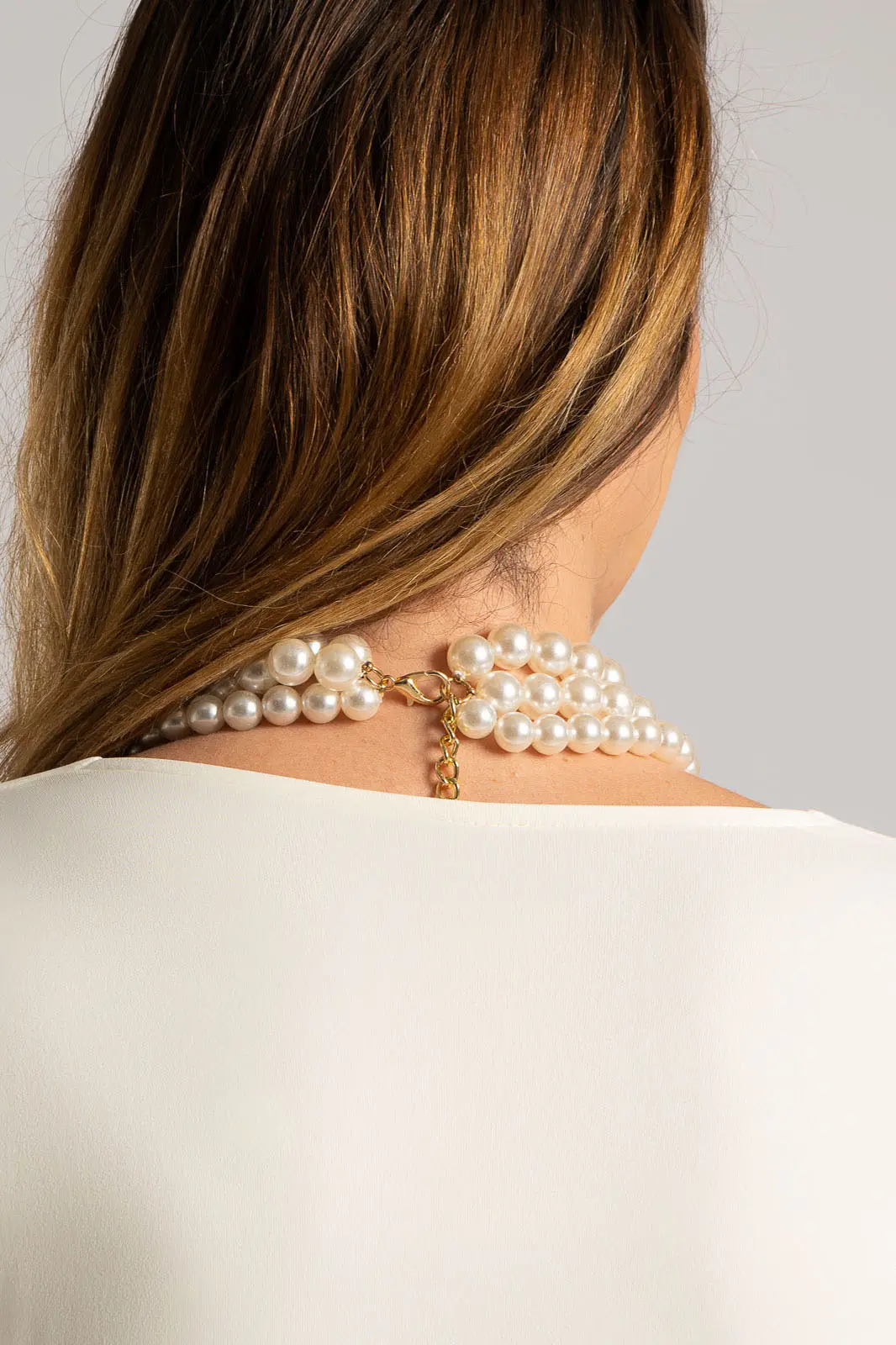 Necklace consisting of three rows of pearls of the same length. The chain is 45 cm long. It has an extra 7 cm extension.