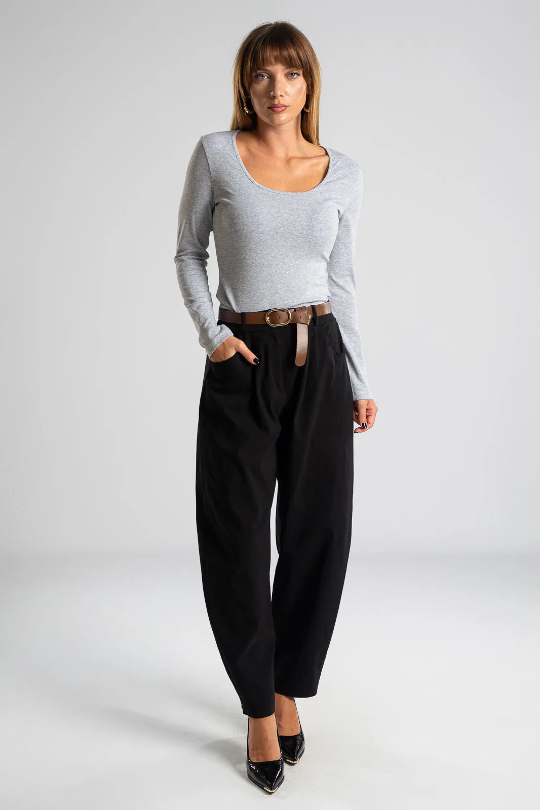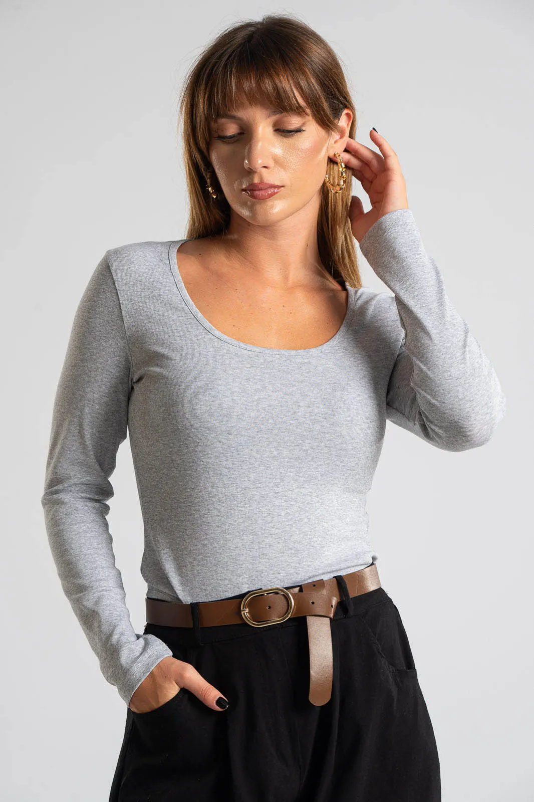 Cotton bodysuit with a round neckline. It has long sleeves and a straight cut. It is a classic choice for all times of the day. The measurements in the table are representative for each product. 92% cotton, 8% elastane.