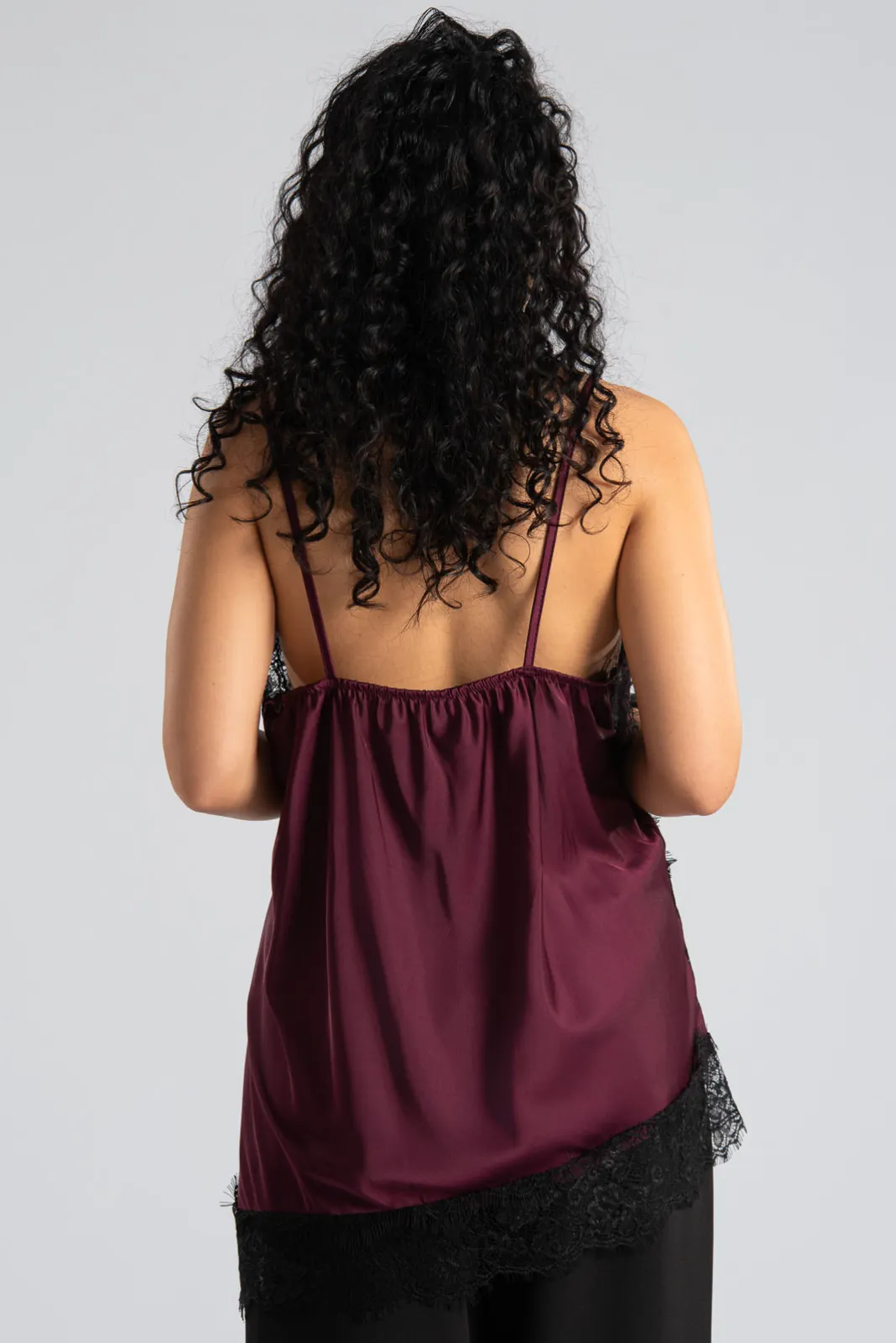 Lingerie σατέν με V άνοιγμα στη λαιμόκοψη. Διαθέτει λεπτή σταθερή τιράντα και στο πίσω μέρος έχει λάστιχο για καλύτερη εφαρμογή. Περιμετρικά της λαιμόκοψης στο τελείωμα και στην επιφάνεια διαθέτει διακοσμητική δαντέλα. Οι μετρήσεις του πίνακα είναι αντιπροσωπευτικές για κάθε προϊόν. 100% polyester.