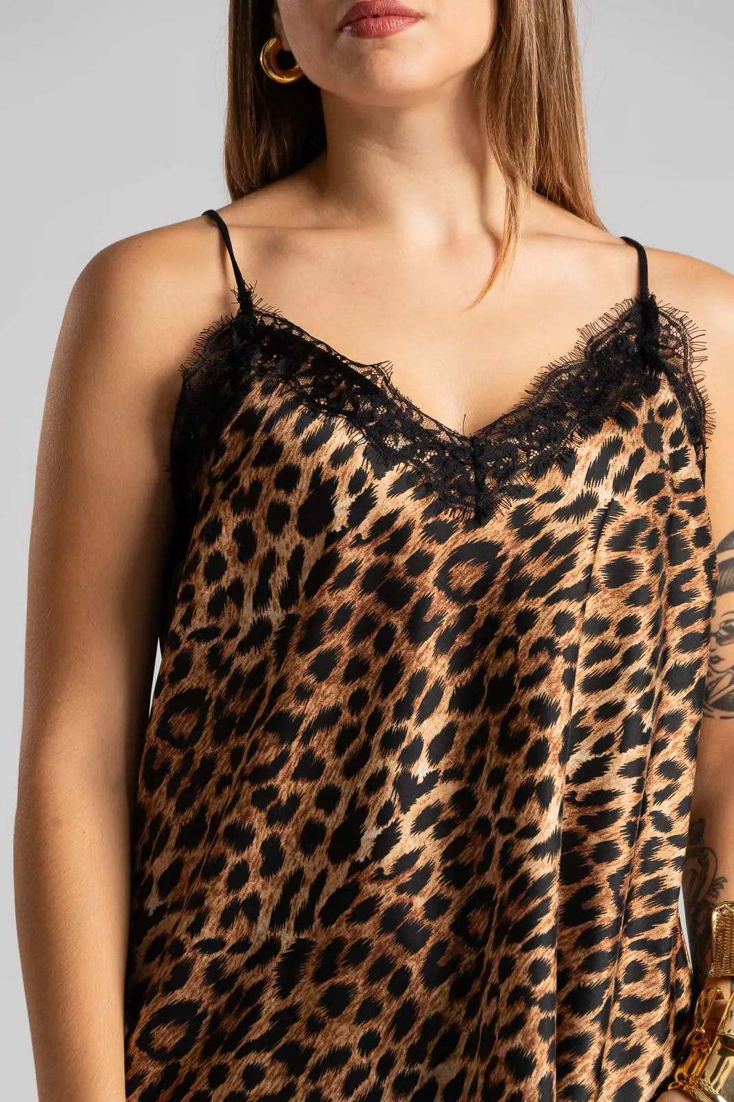 Lingerie με V λαιμόκοψη. Έχει σατέν υφή και στη λαιμόκοψη της έχει δαντέλα. Είναι σε Α γραμμή και στο πίσω μέρος διαθέτει λάστιχο για καλύτερη εφαρμογή. Οι μετρήσεις του πίνακα είναι αντιπροσωπευτικές για κάθε προϊόν. 100% polyester.