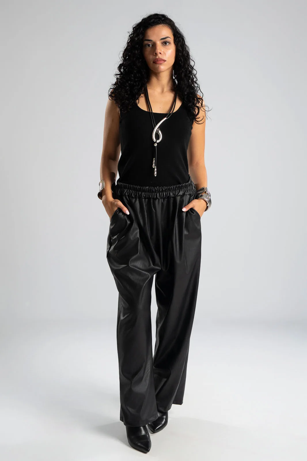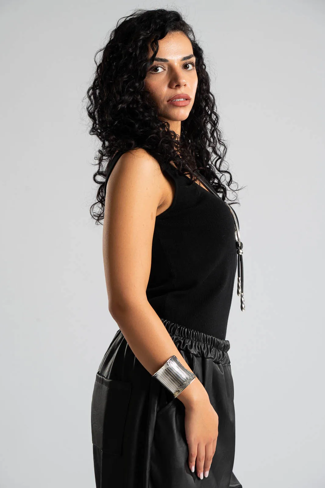 Blouse with wide straps and round neckline. It has a compact knit and is comfortable to wear. The measurements in the table are representative of each product. 51% viscose, 28% polyester, 21% polyamide.