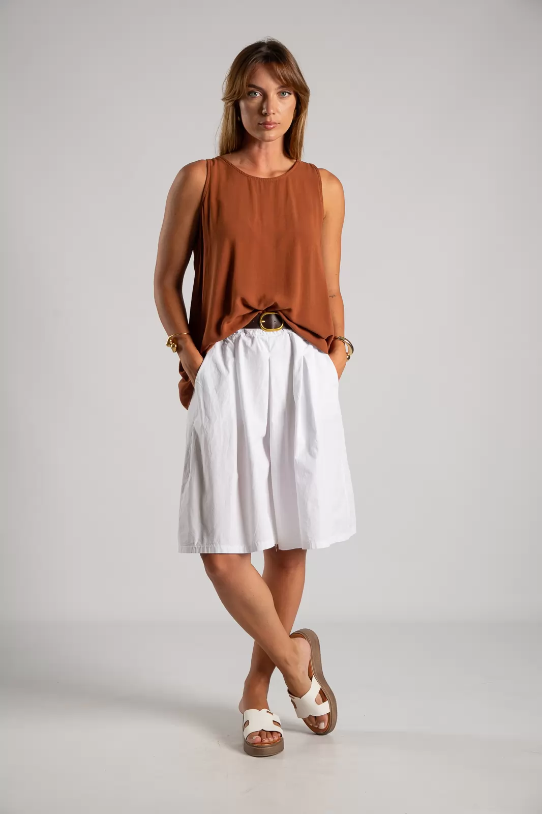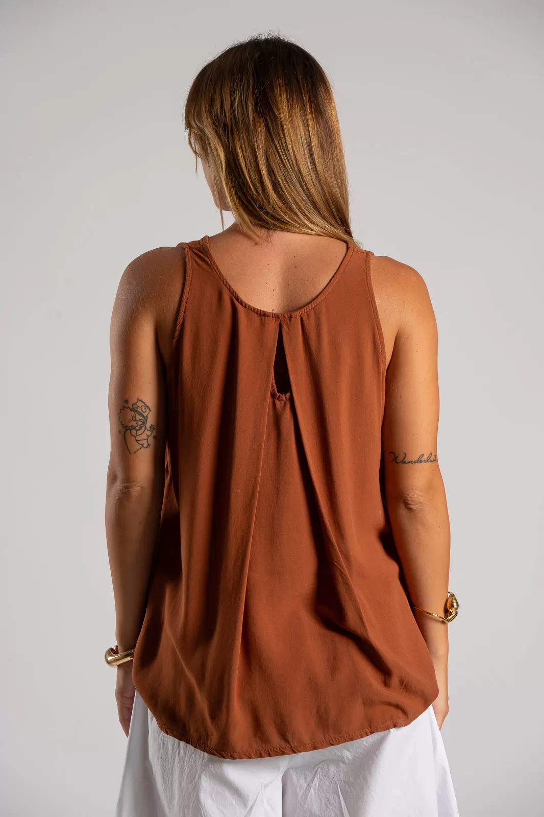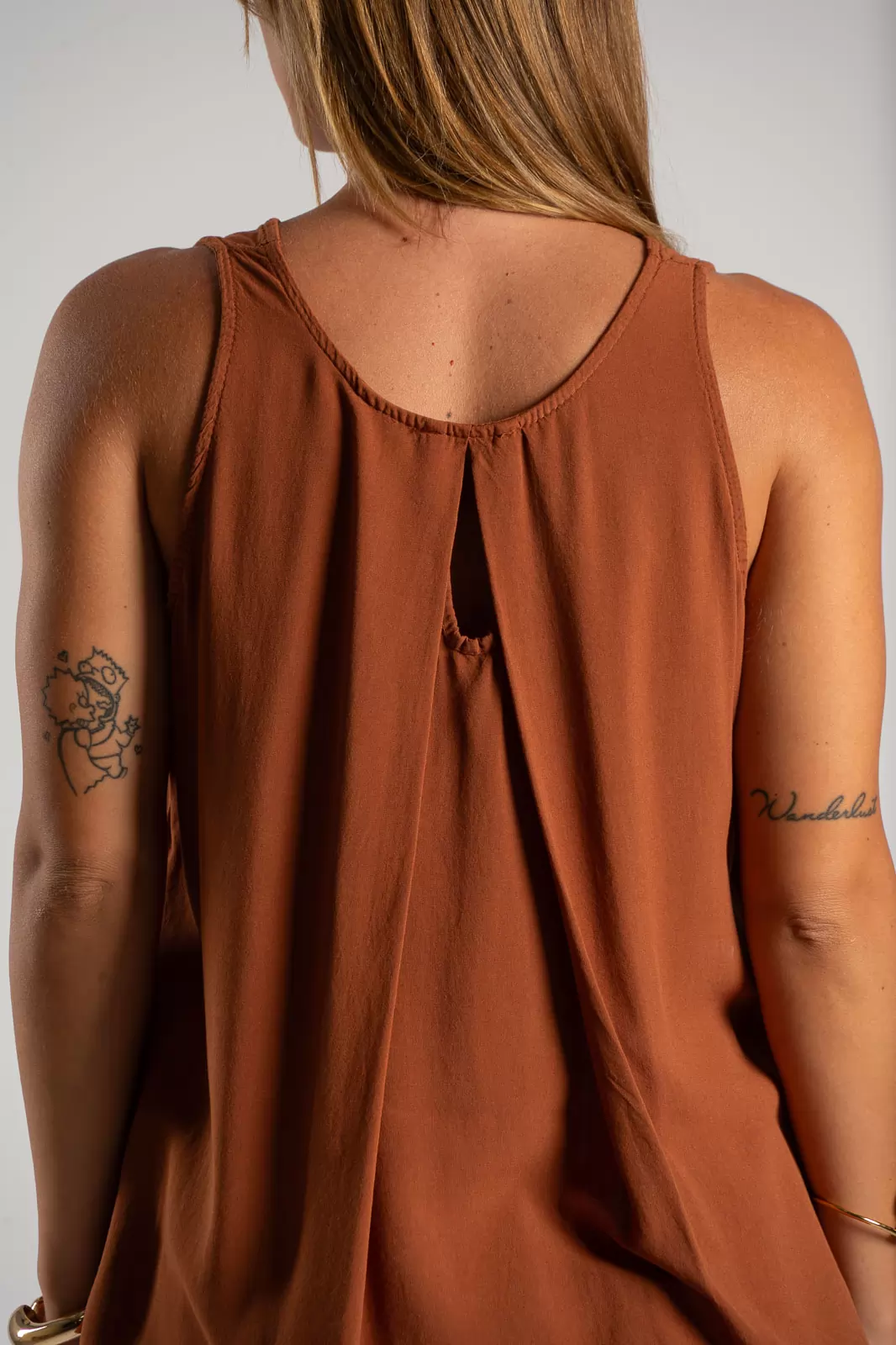 Μπλούζα αμάνικη με στρογγυλή λαιμόκοψη. Είναι σε ίσια γραμμή και στο πίσω μέρος είναι ελαφρώς πιο μακριά. Στο πίσω μέρος διαθέτει μεγάλη πιέτα. Το ύφασμα της είναι πολύ δροσερό και μαλακό. Οι μετρήσεις του πίνακα είναι αντιπροσωπευτικές για κάθε κωδικό. 100% viscose.