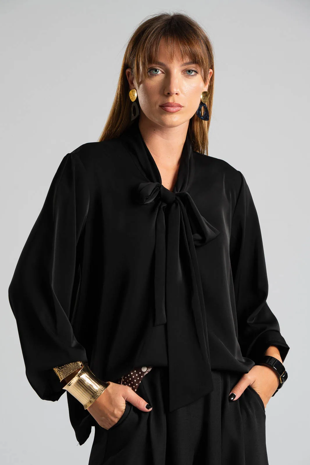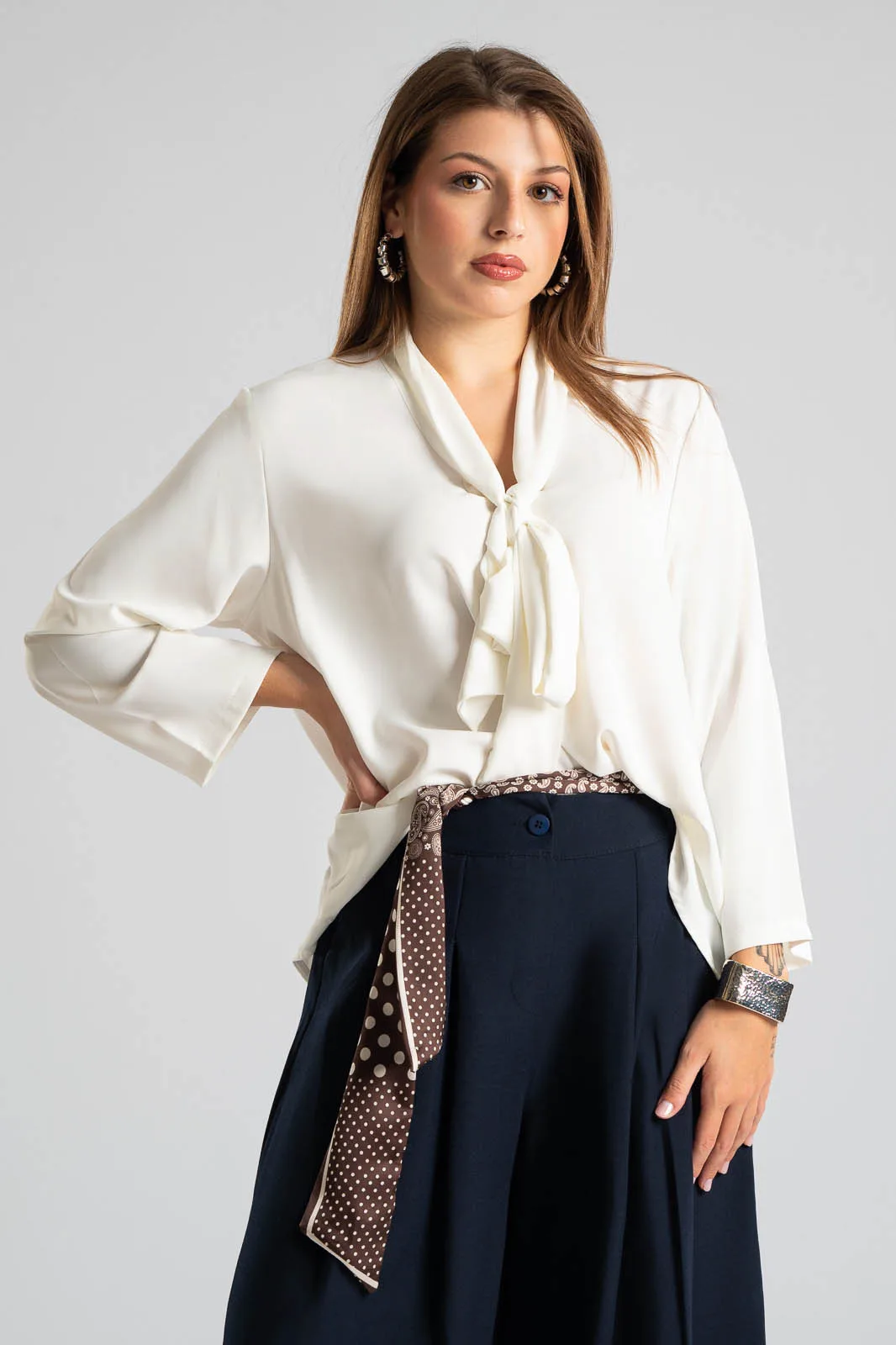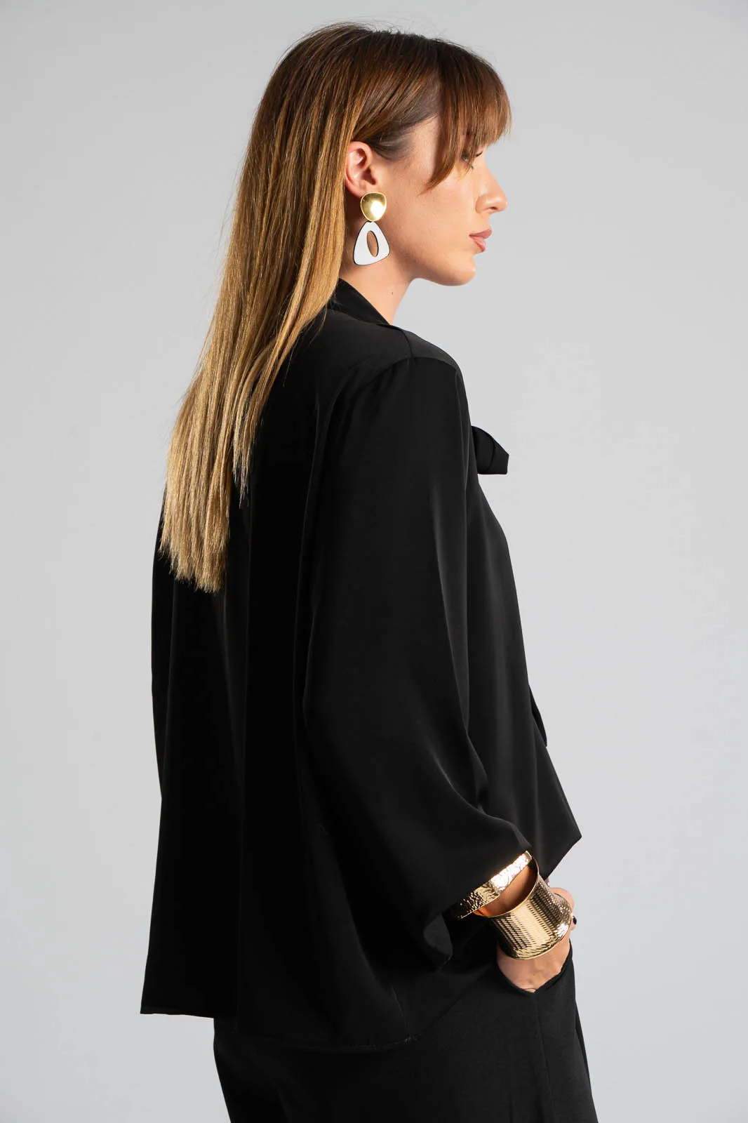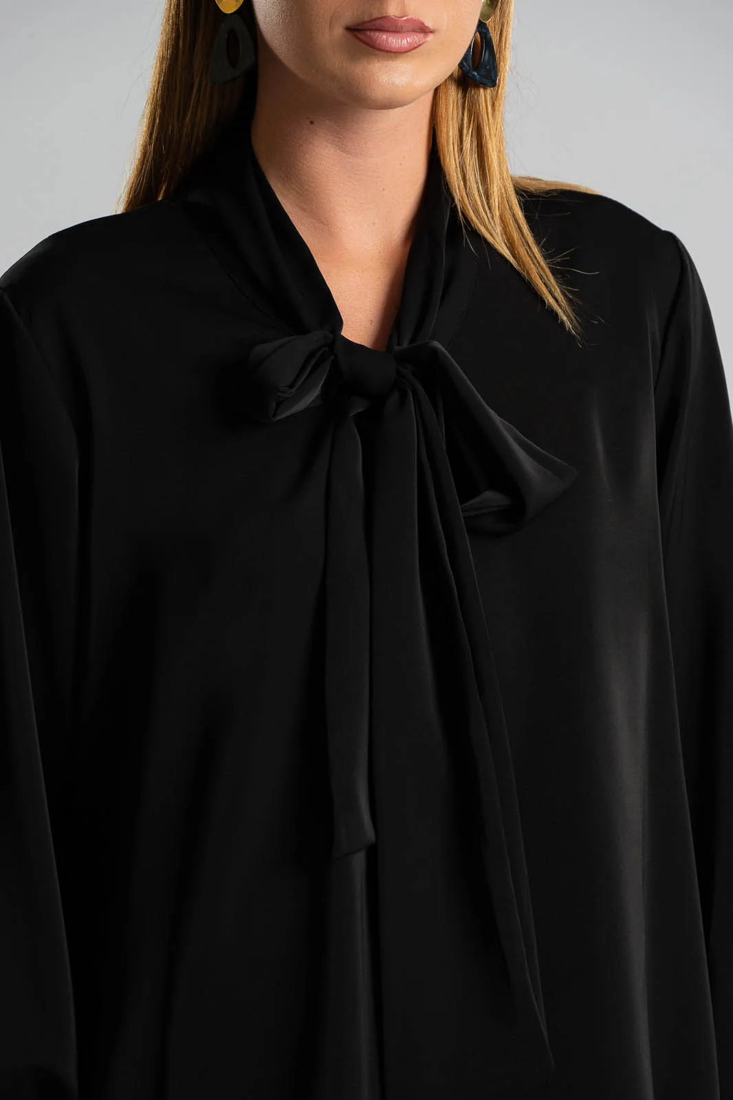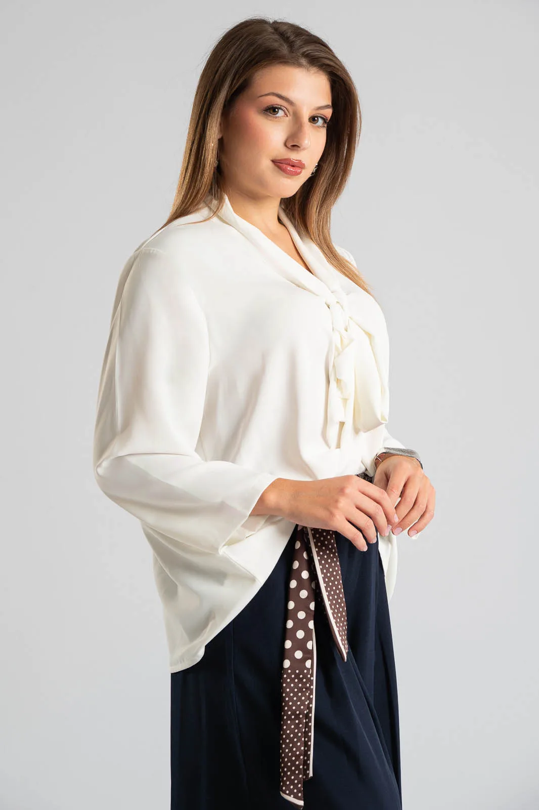 Μπλούζα με γιακά και άνοιγμα στη λαιμόκοψη που δένει. Έχει μακριά μανίκια. Διαθέτει απαλή υφή και είναι άνετη. Οι μετρήσεις του πίνακα είναι αντιπροσωπευτικές για κάθε κωδικό. 100% polyester.