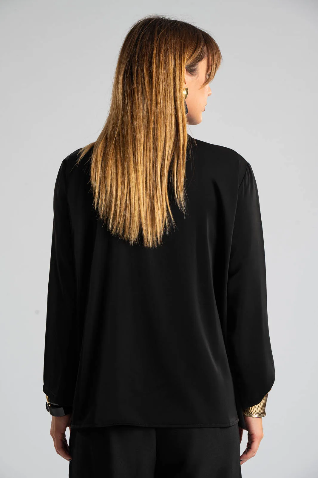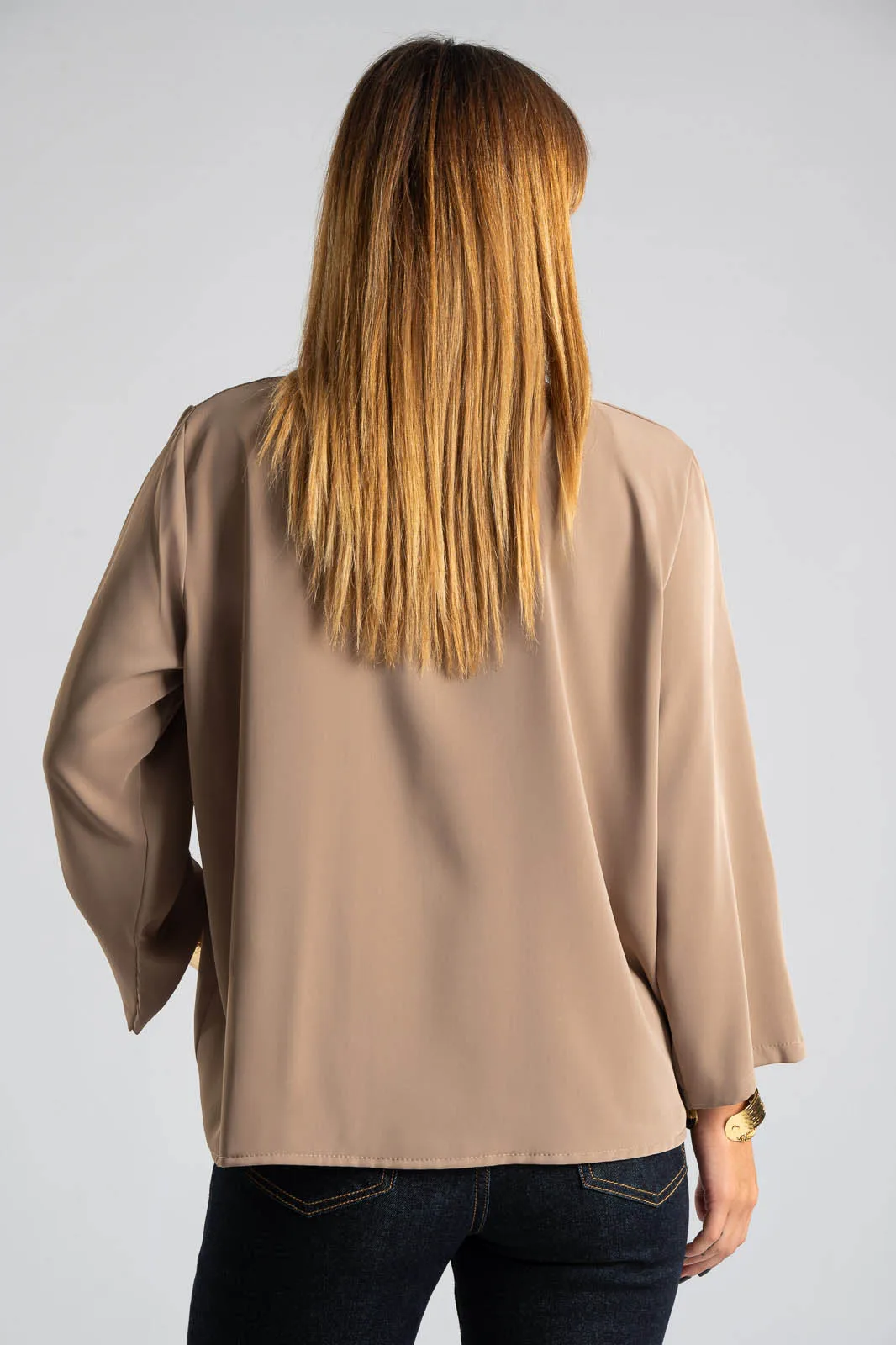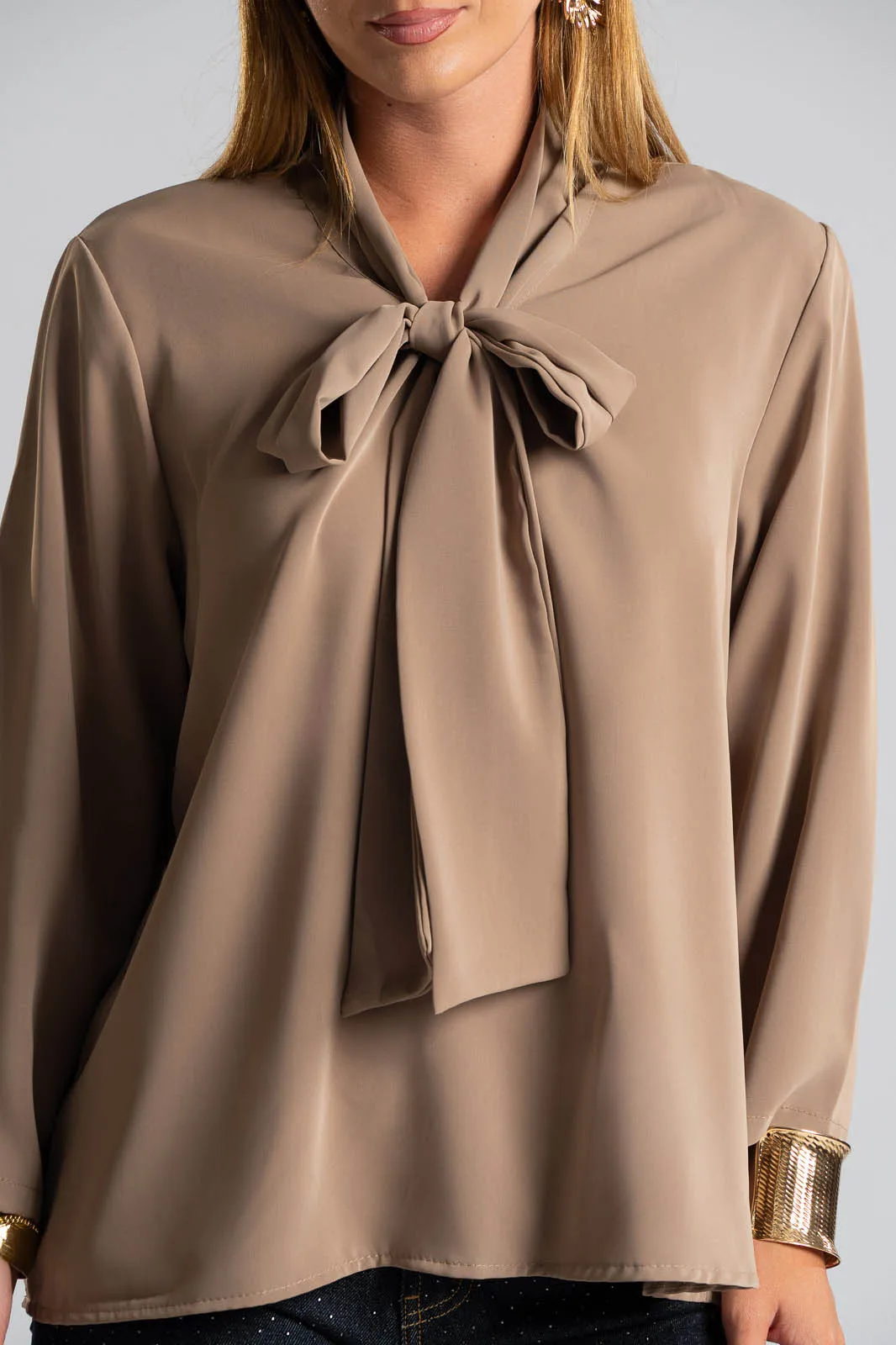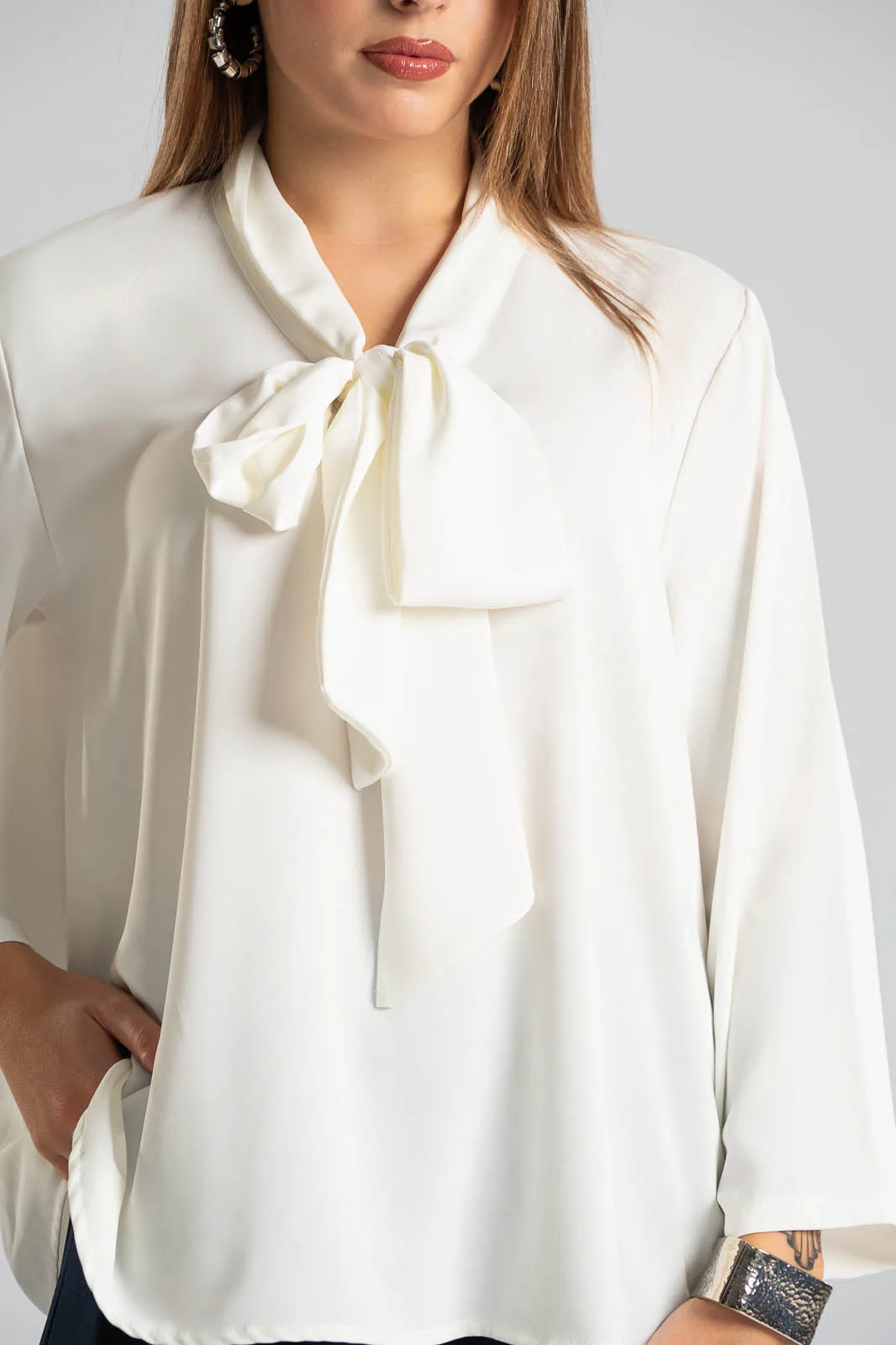 Μπλούζα με γιακά και άνοιγμα στη λαιμόκοψη που δένει. Έχει μακριά μανίκια. Διαθέτει απαλή υφή και είναι άνετη. Οι μετρήσεις του πίνακα είναι αντιπροσωπευτικές για κάθε κωδικό. 100% polyester.
