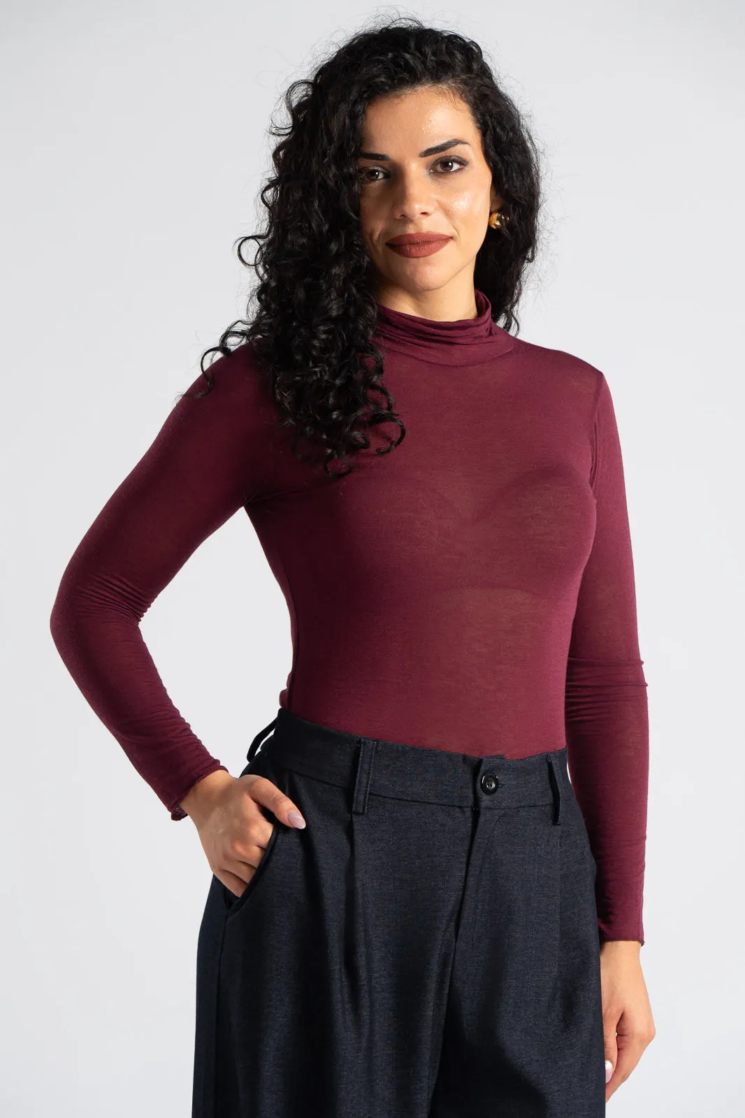 Blouse with lupeto neckline. It has a straight cut and long sleeves. The fabric is very soft. It is a classic choice that should not be missing from your wardrobe. The measurements in the table are representative for each product. 76% viscose, 9% nylon, 5% elastane, 10% cashmere.