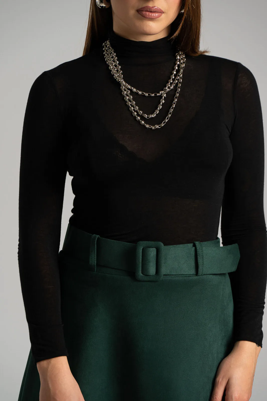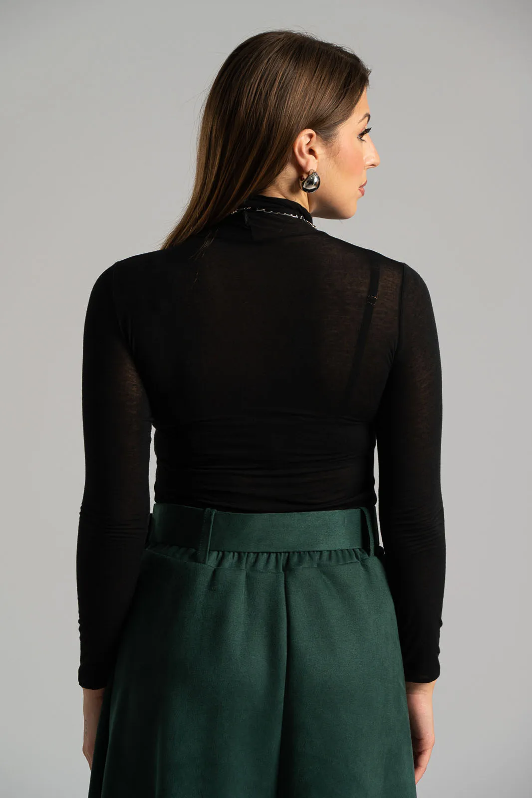 Μπλούζα με lupeto λαιμόκοψη. Είναι σε ίσια γραμμή και έχει μακριά μανίκια. Το ύφασμα της είναι πολύ μαλακό. Είναι μια κλασσική επιλογή που δεν πρέπει να λείπει από την ντουλάπα σου. Οι μετρήσεις του πίνακα είναι αντιπροσωπευτικές για κάθε προϊόν. 76% viscose, 9% nylon, 5% elastan, 10% cashmere.