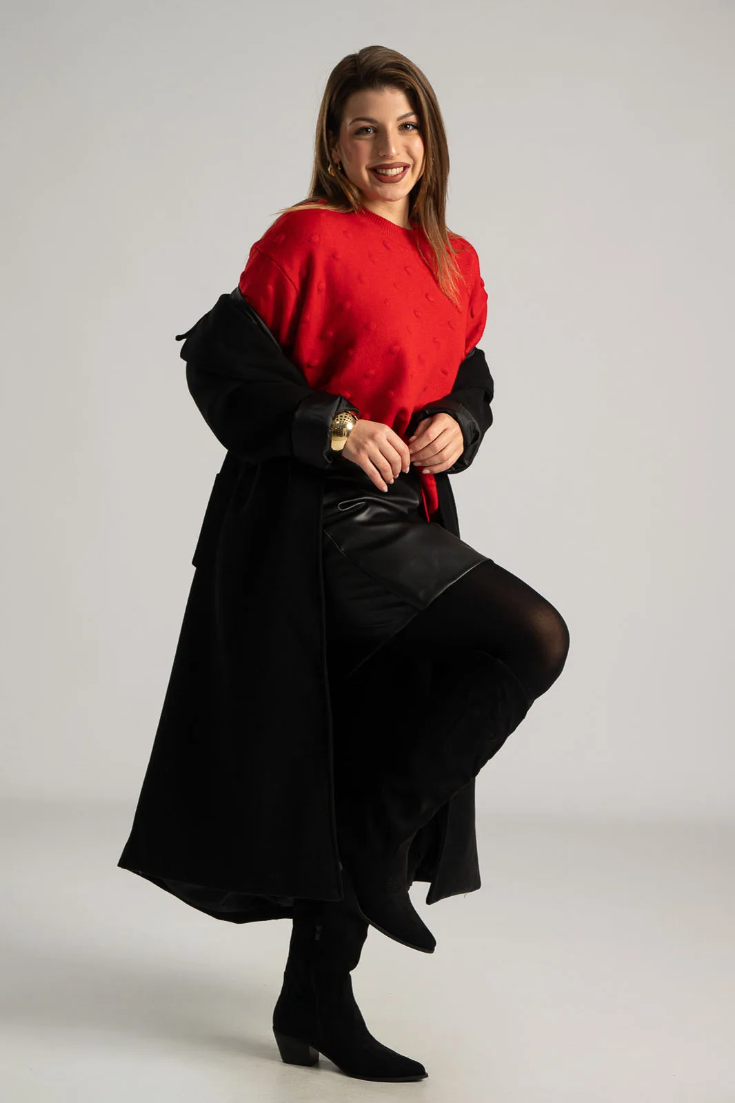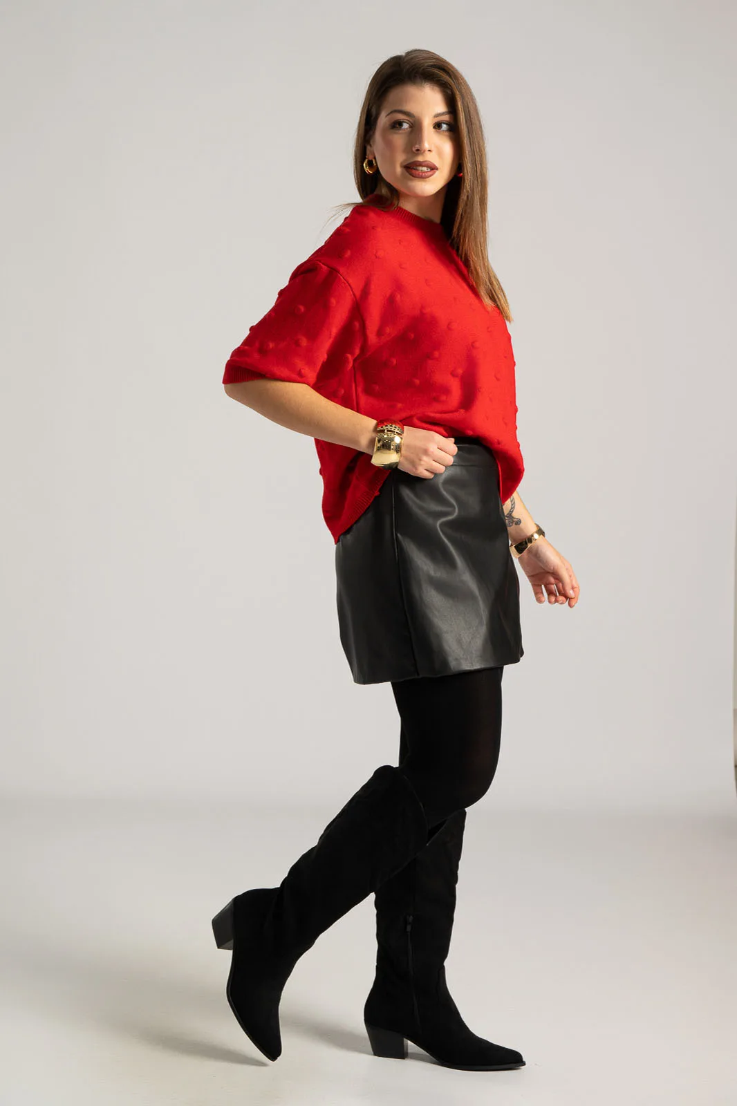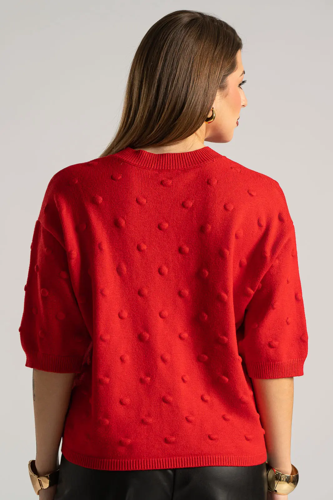 Μπλούζα νημάτινη με συμπαγή πλέξη και στρογγυλή λαιμόκοψη. Διαθέτει κοντά μανίκια. Σε όλη την επιφάνεια έχει ανάγλυφες 3d λεπτομέρειες σε στρογγυλή όψη. Οι μετρήσεις του πίνακα είναι αντιπροσωπευτικές για κάθε προϊόν. 88% viscose, 12% nylon.