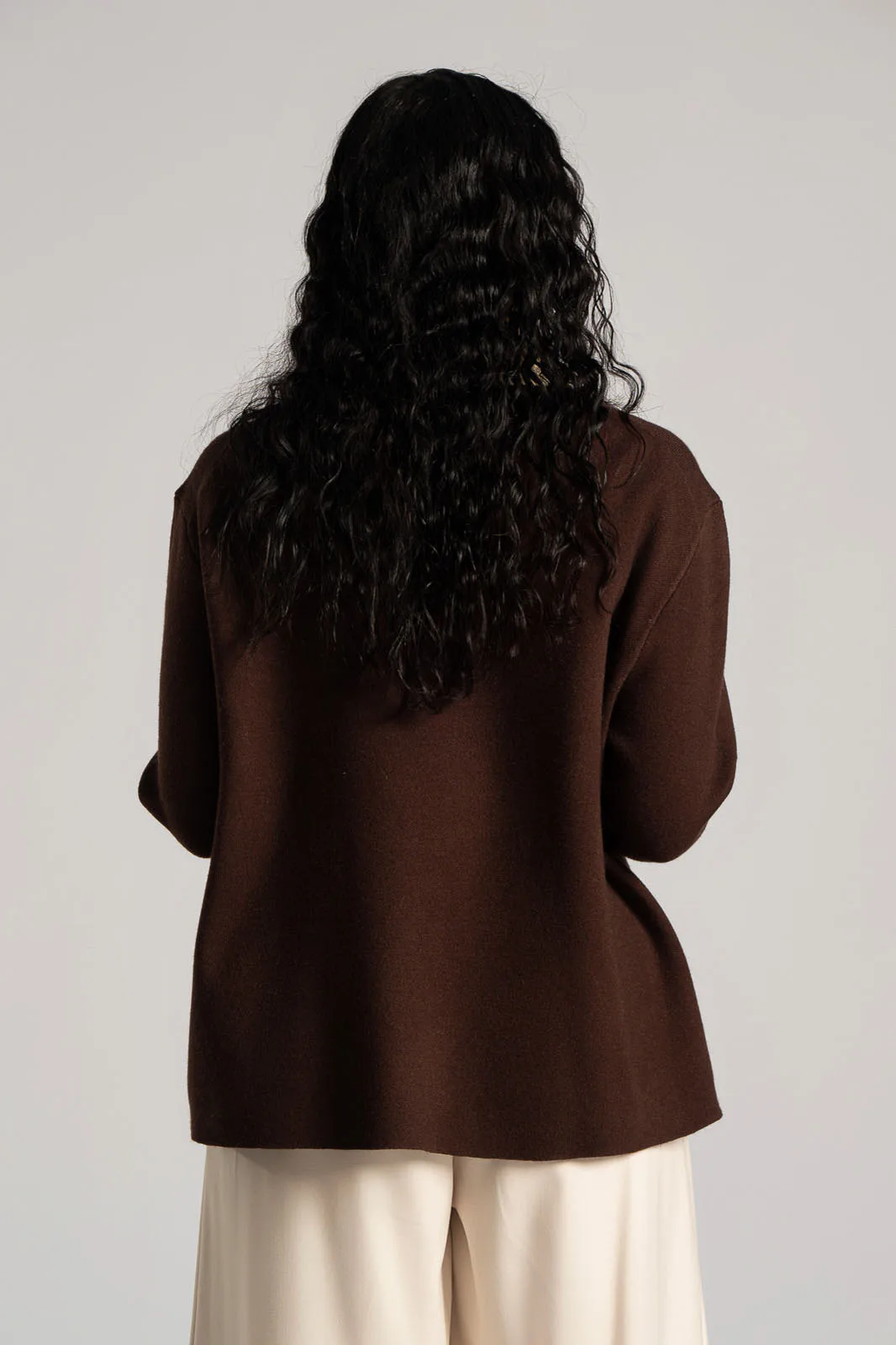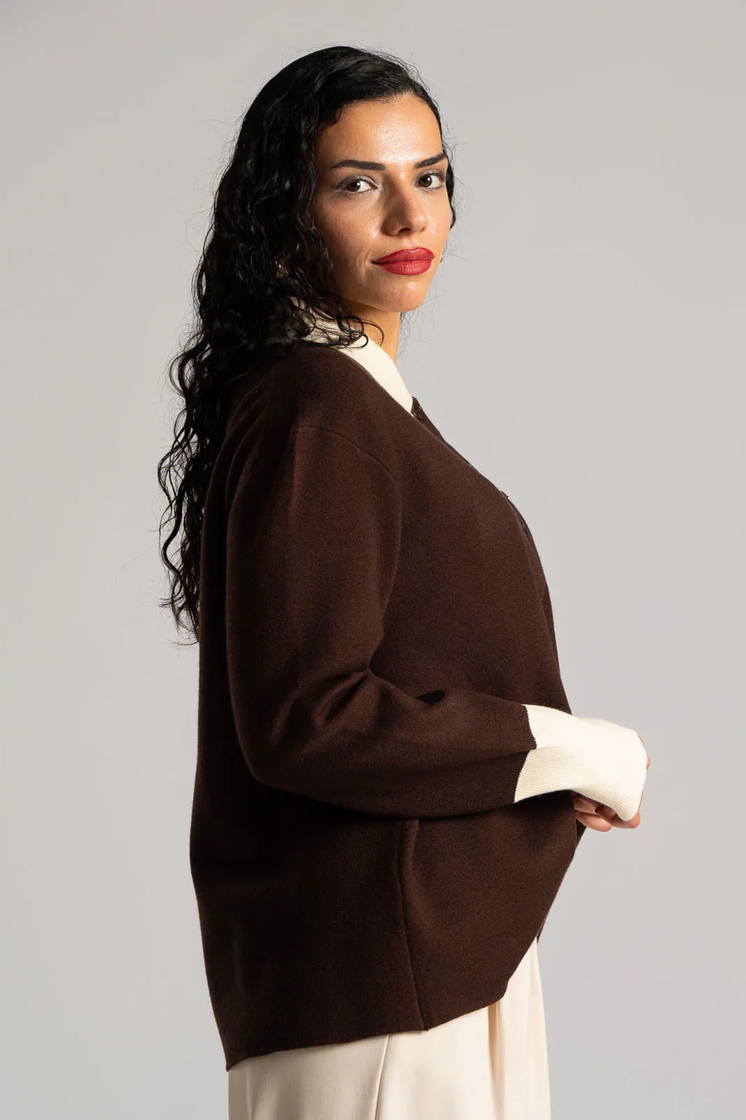 Polo shirt. It is made of compact knit fabric and has a straight cut. It has a collar and buttons at the neckline. It has long sleeves with ribbed cuffs. The collar and cuffs are white. There is a pocket at chest height. The measurements in the table are representative for each code. 40% polyester, 38% wool, 20% polyamide, 2% spandex.