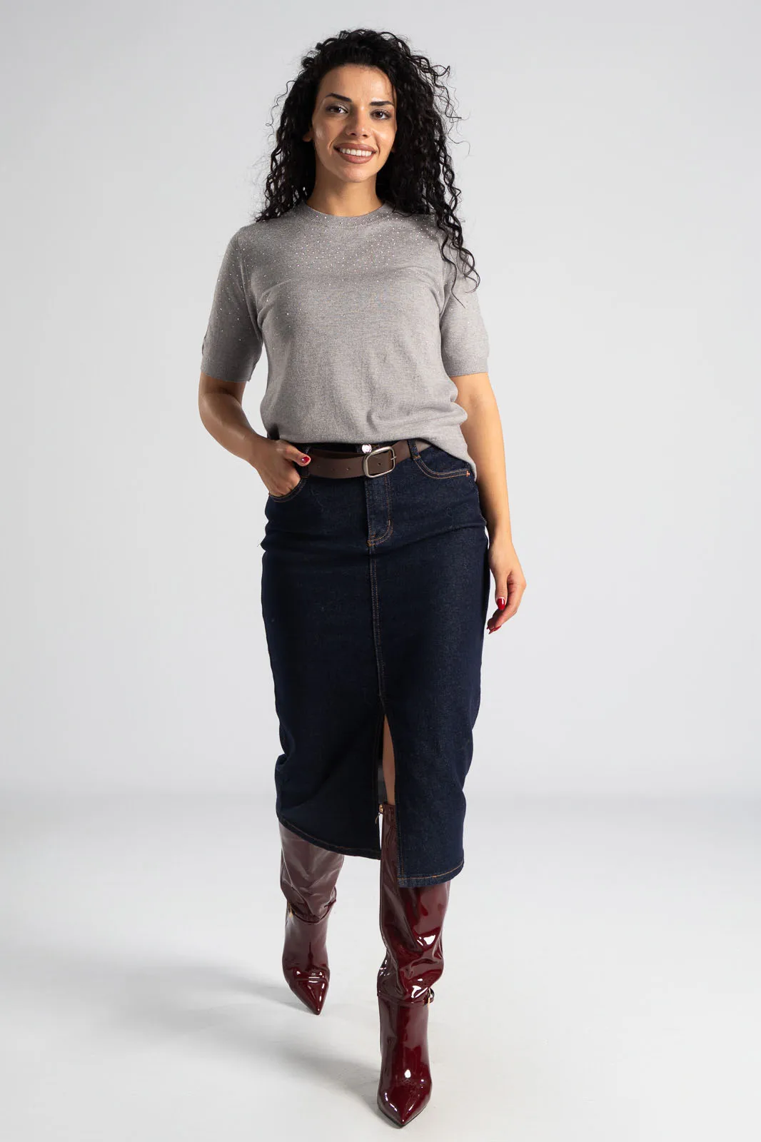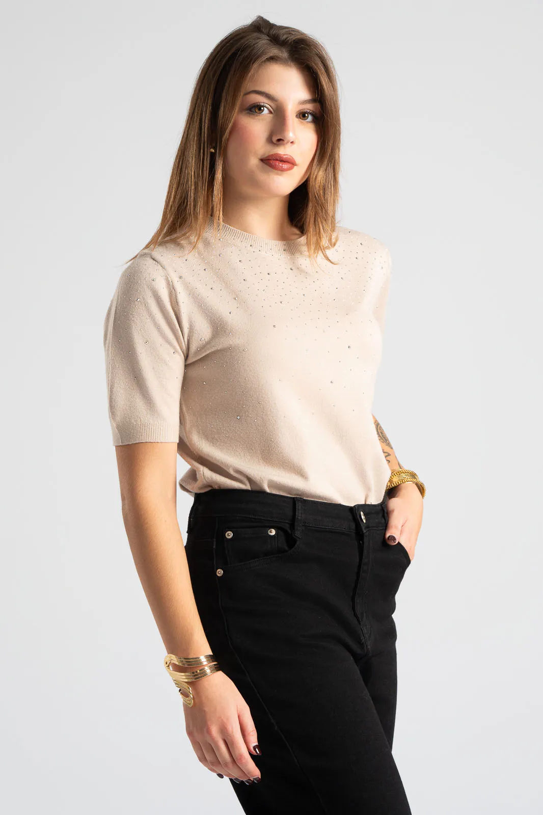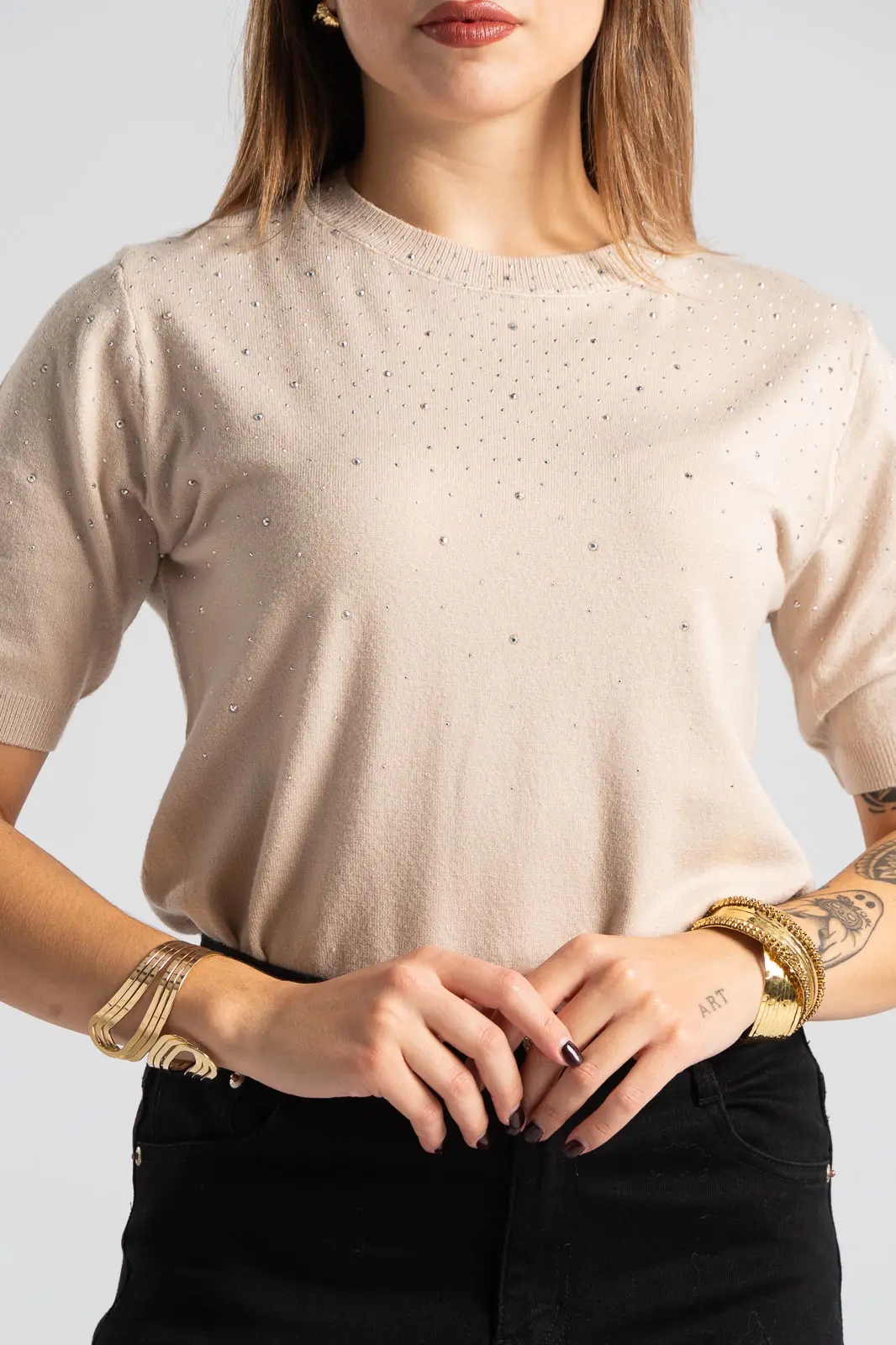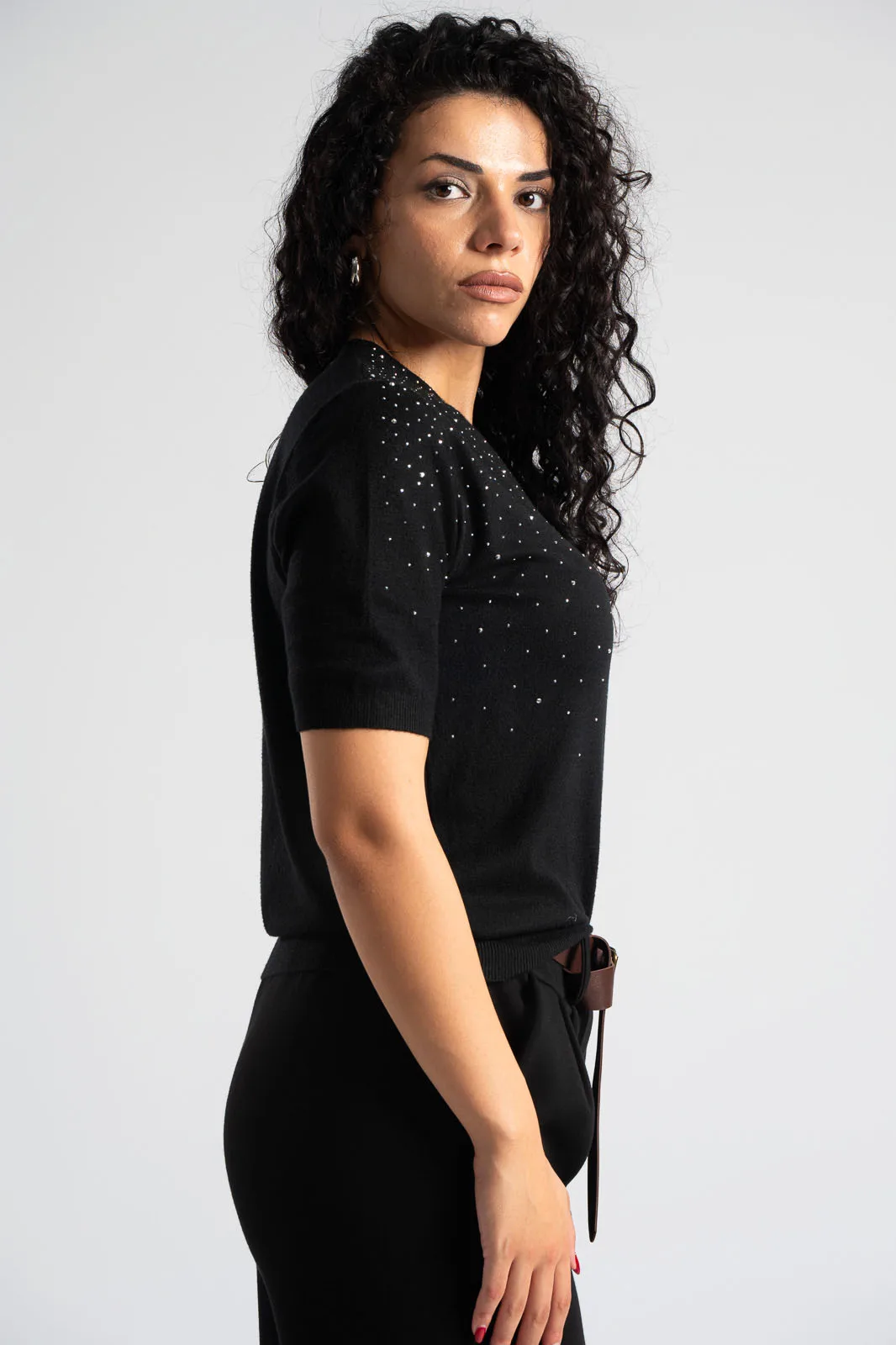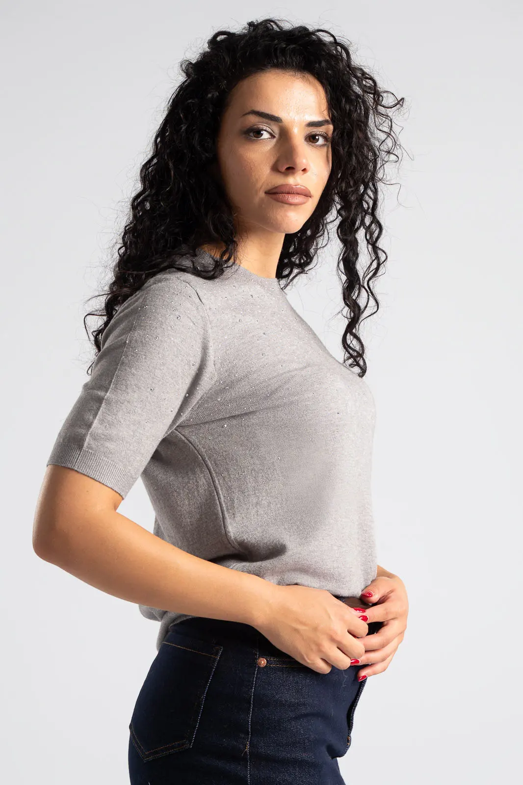 Μπλούζα Νημάτινη Κοντομάνικη Στρας