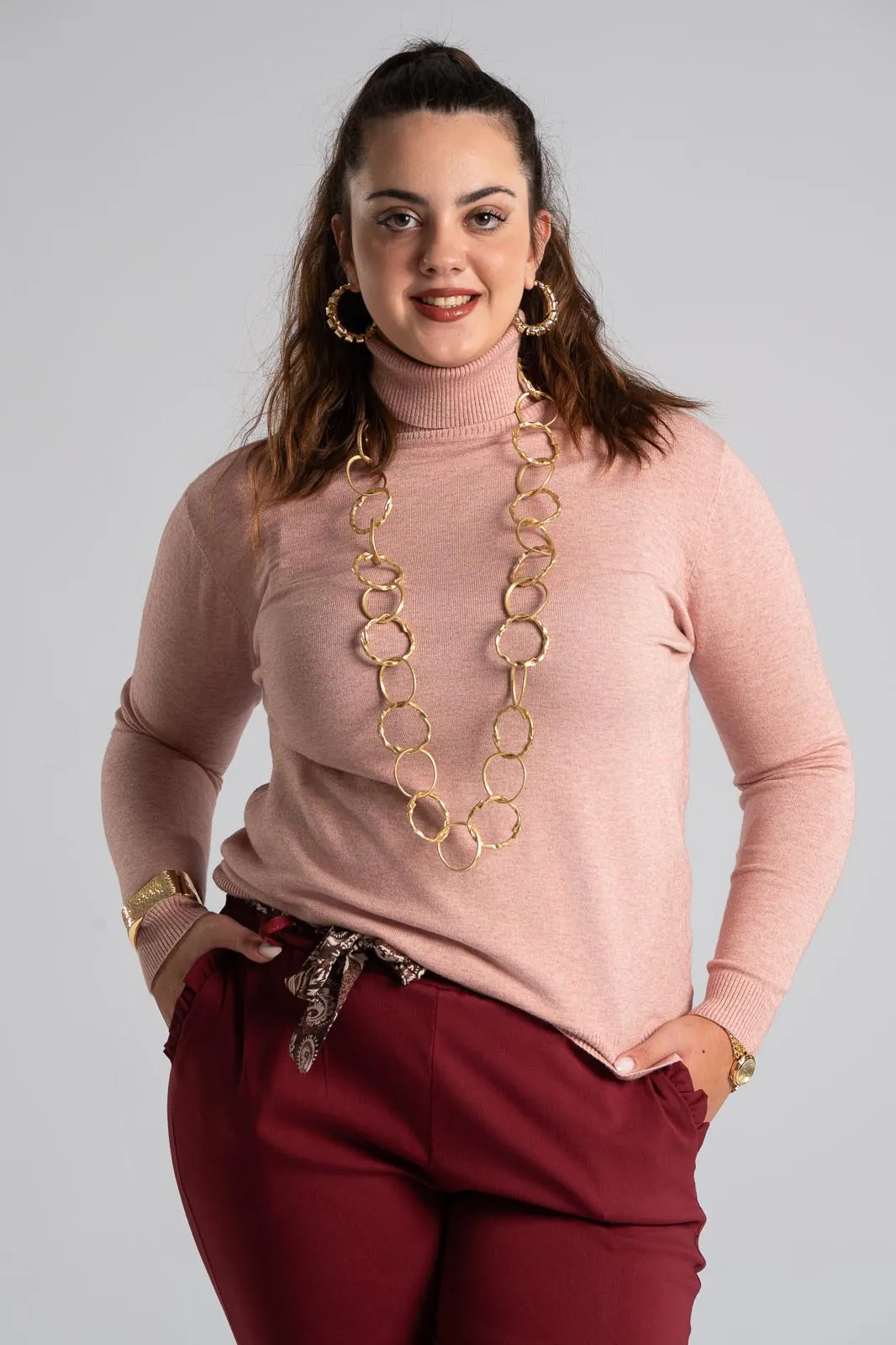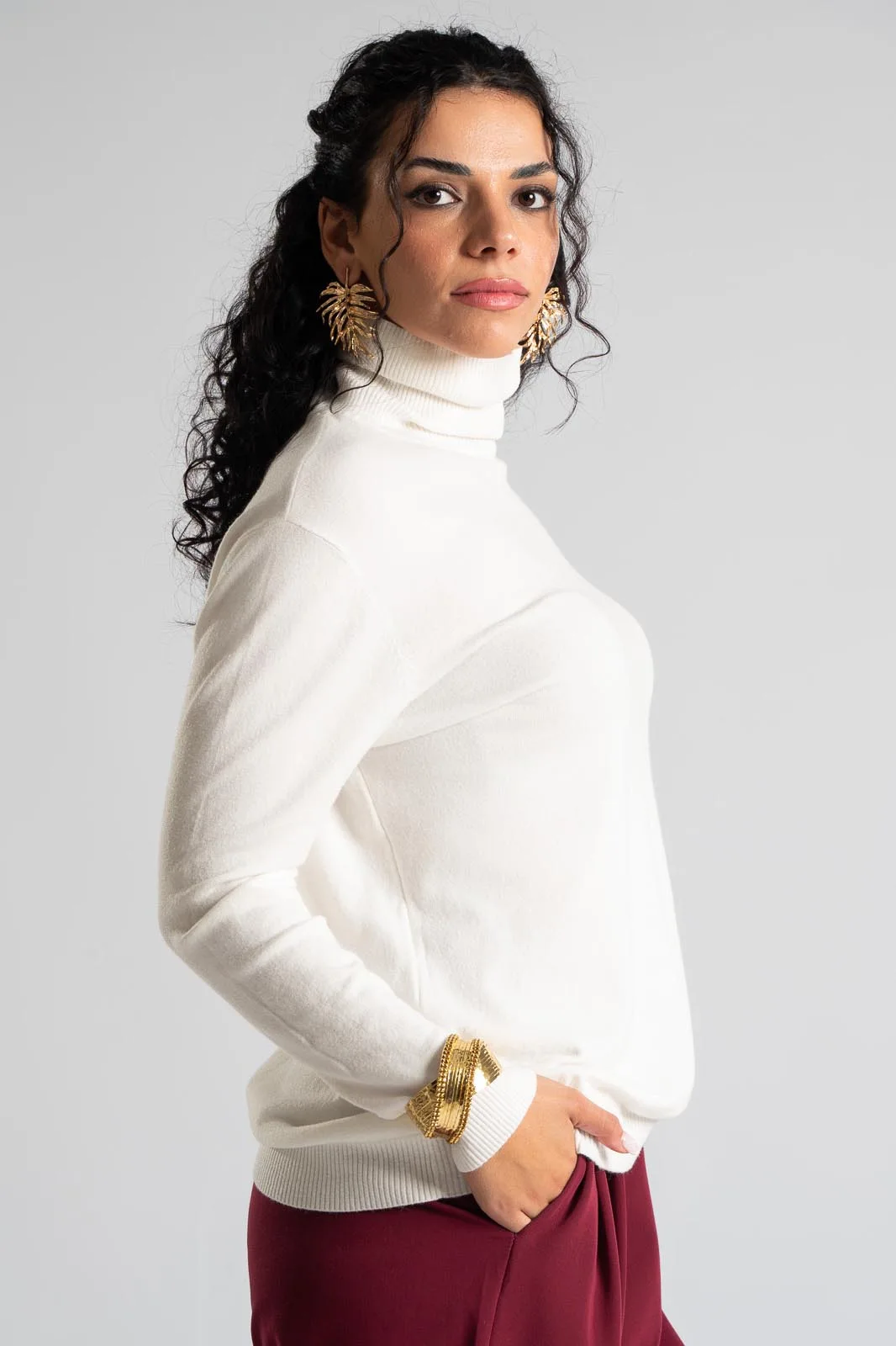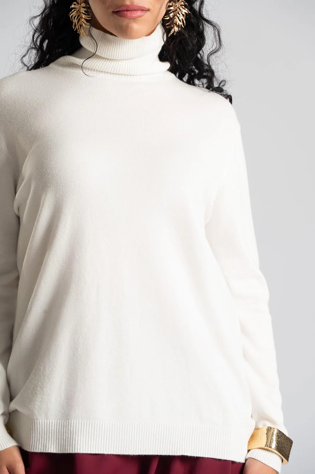 Blouse with turtleneck. It is made of compact knit fabric. It has long sleeves. The measurements in the table are representative for each code. 45% viscose, 27% polyester, 23% nylon, 5% modal.
