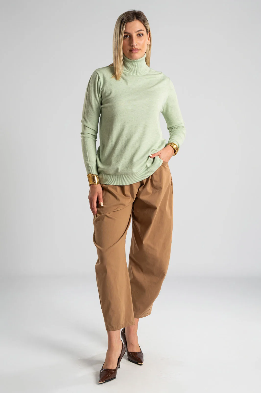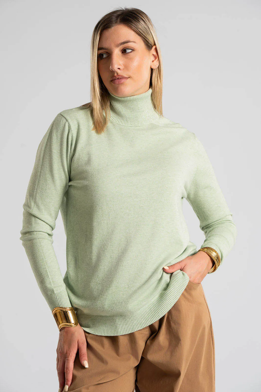 Blouse with turtleneck. It is made of compact knit fabric. It has long sleeves. The measurements in the table are representative for each code. 45% viscose, 27% polyester, 23% nylon, 5% modal.