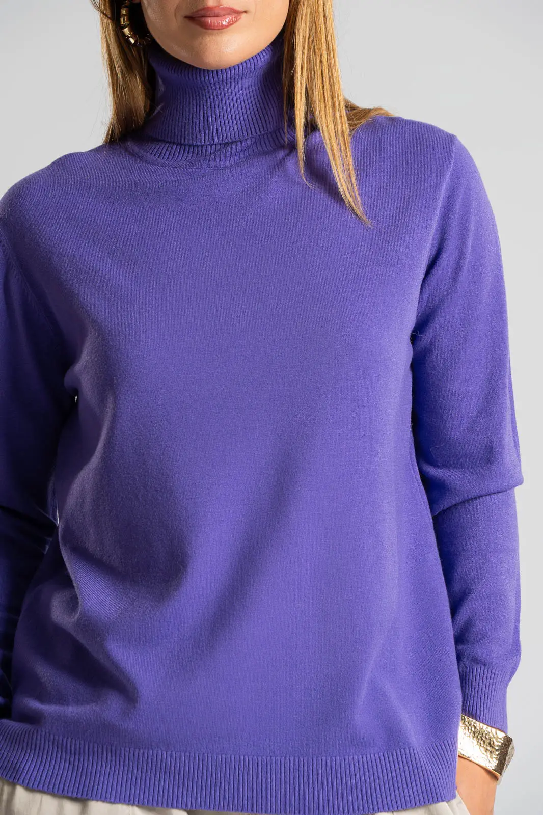 Blouse with turtleneck. It is made of compact knit fabric. It has long sleeves. The measurements in the table are representative for each code. 45% viscose, 27% polyester, 23% nylon, 5% modal.