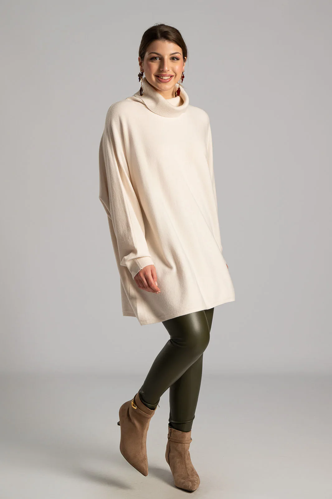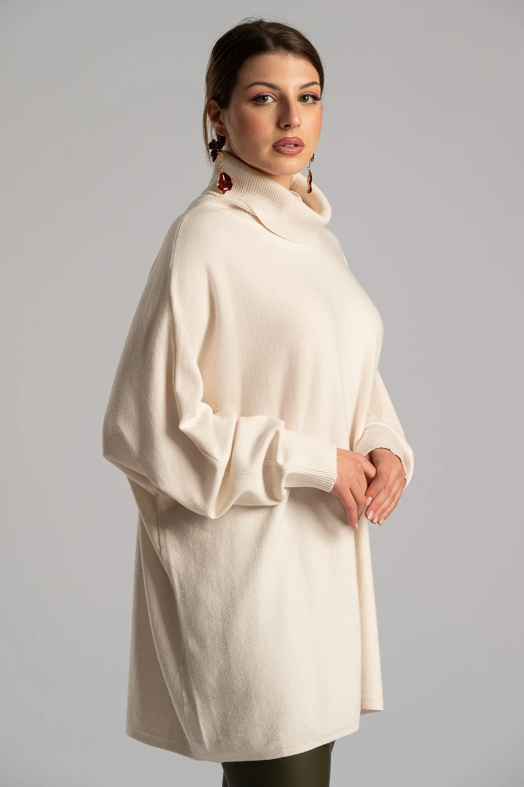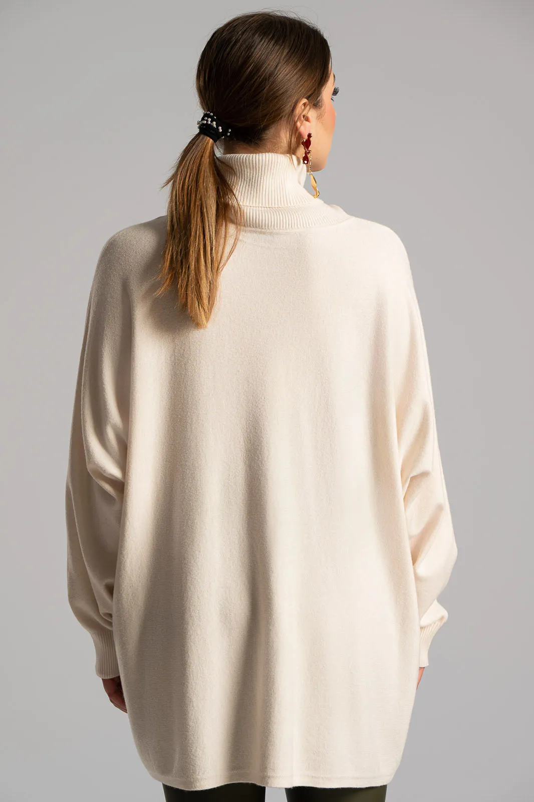 Blouse with turtleneck. It is made of compact knit fabric. It has long sleeves. It has a comfortable fit. The measurements in the table are representative for each code. 30% viscose, 30% polyamide, 20% modal, 20% elastane.