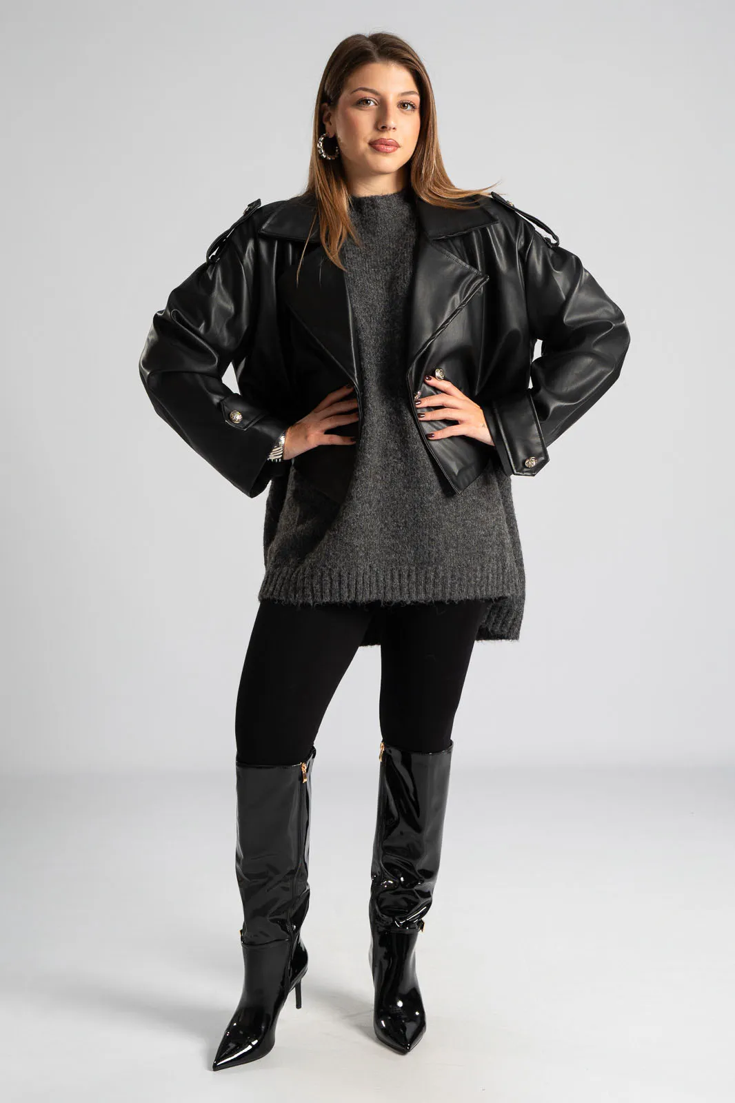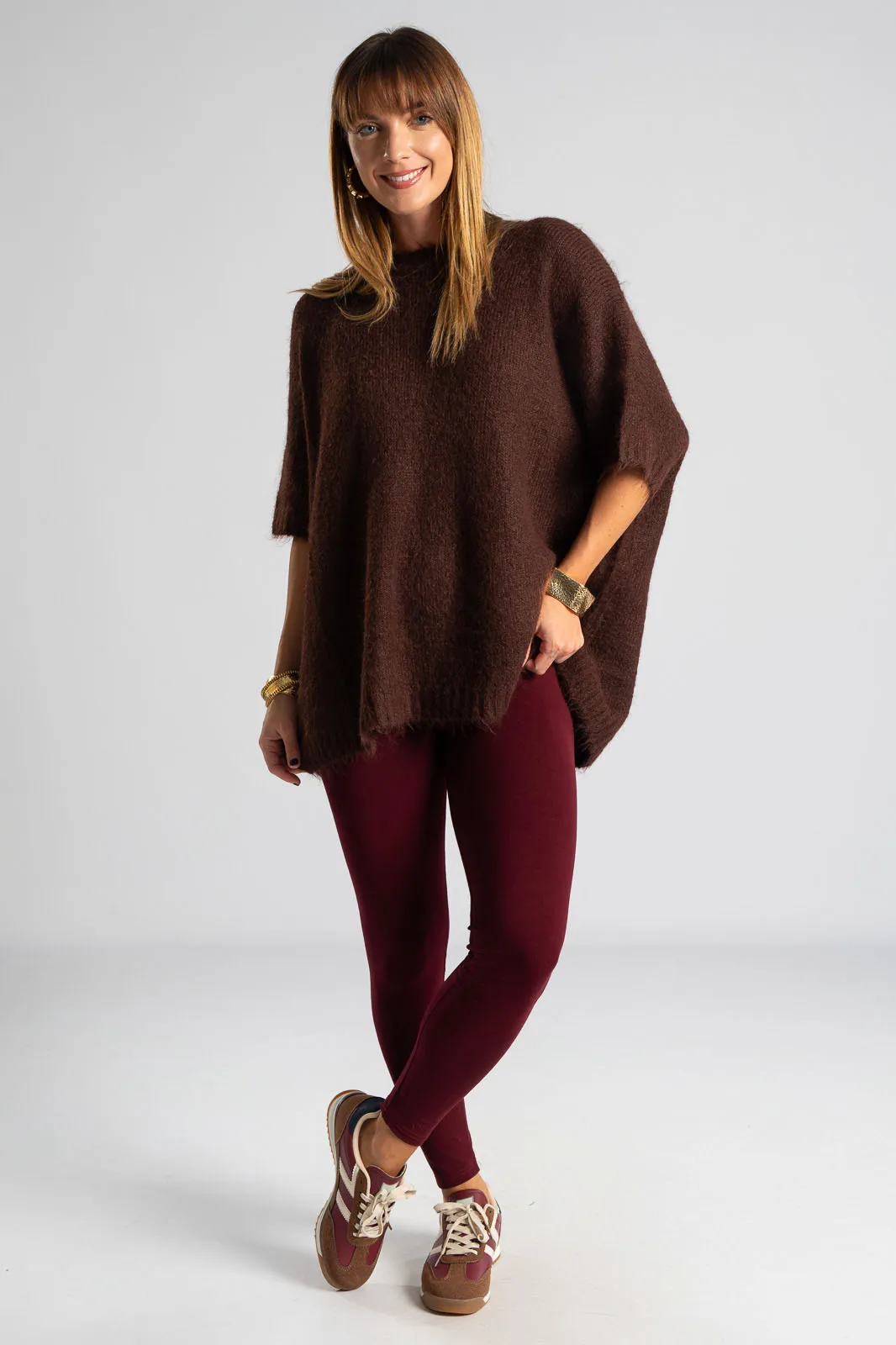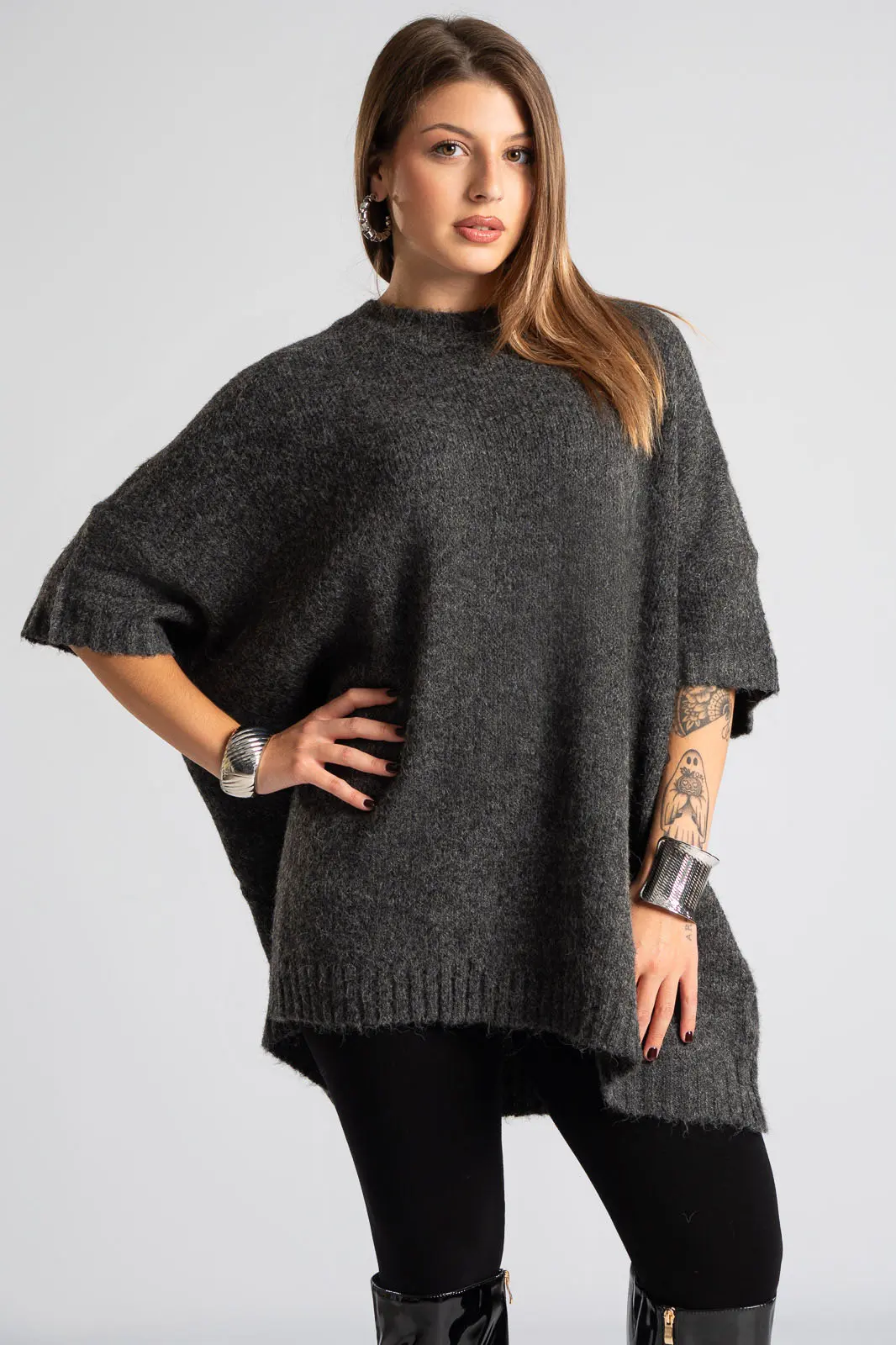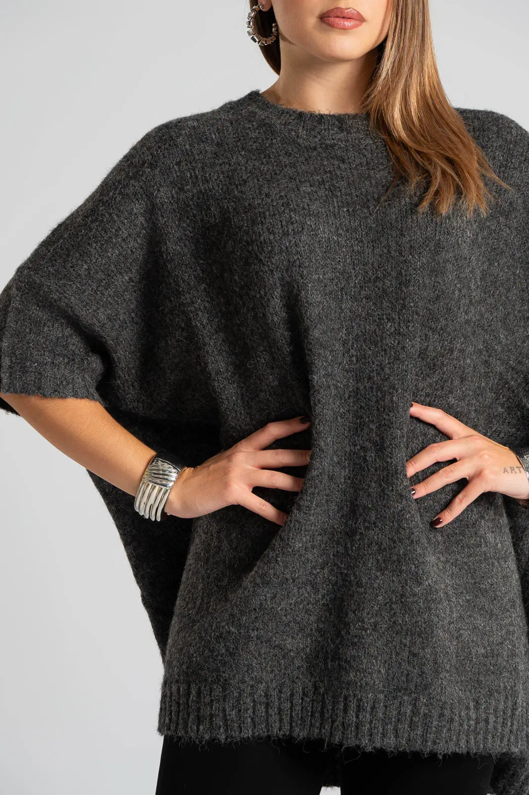 Blouse with compact yarn knit. It has a round neckline and short sleeves. It has a straight cut. The hem, neckline, and sleeves are ribbed. The measurements in the table are representative of each product. 33% recycled polyester, 28% acrylic, 24% polyester, 14% nylon, 3% spandex.