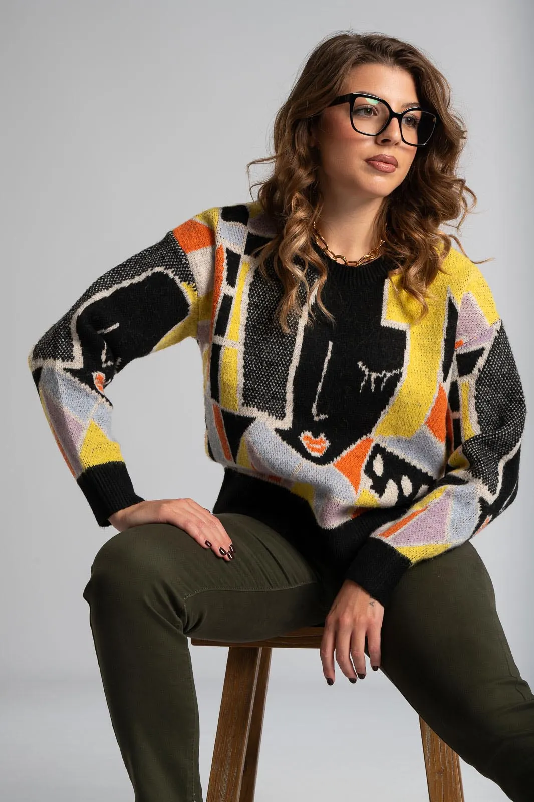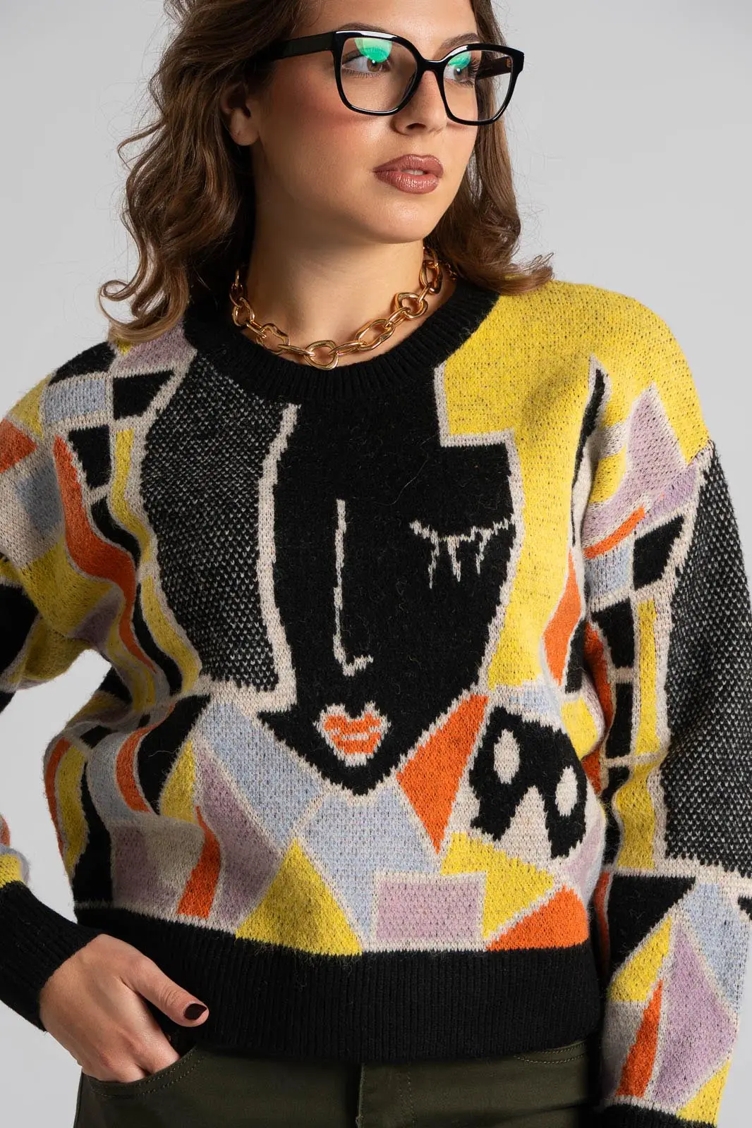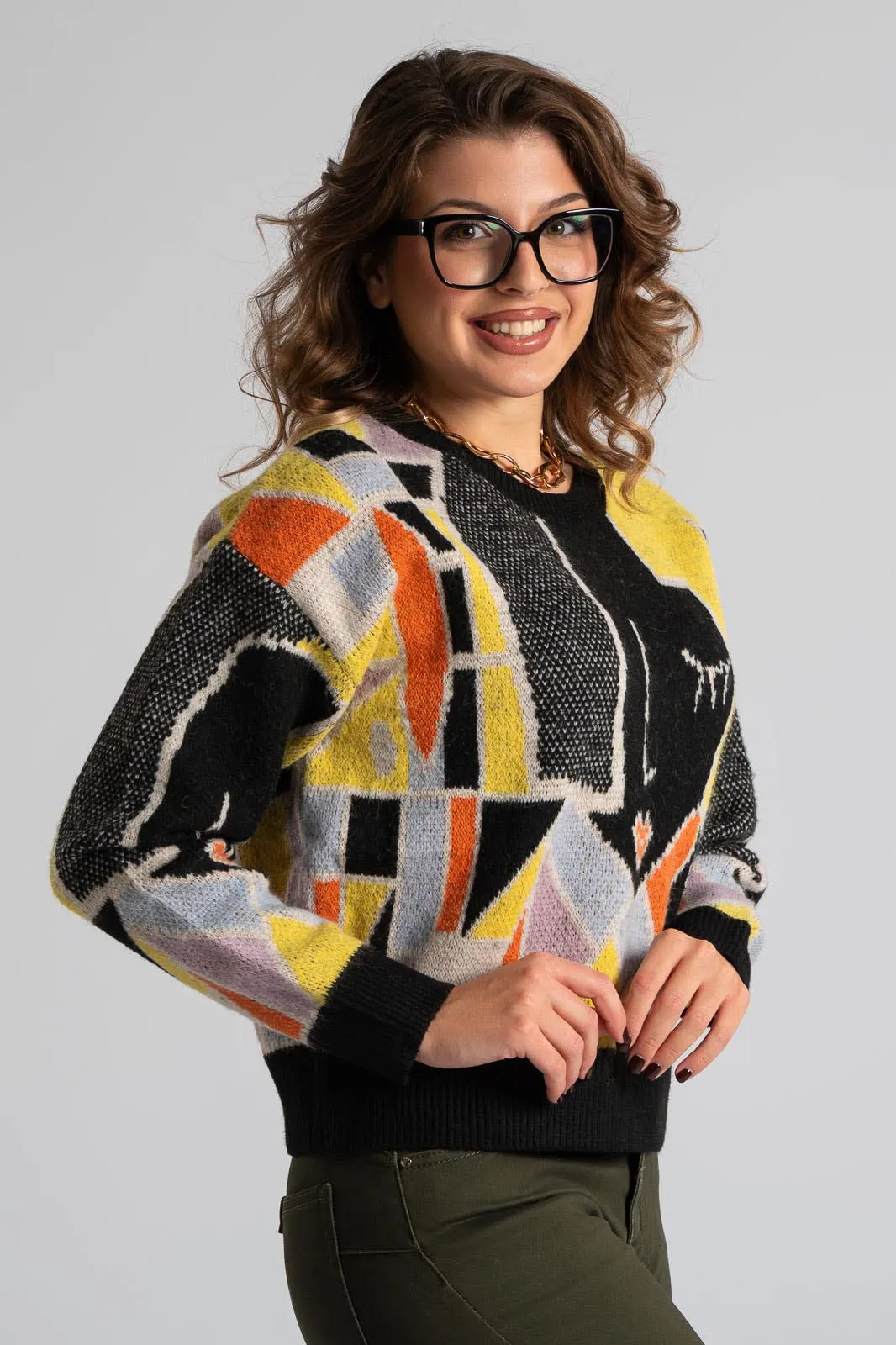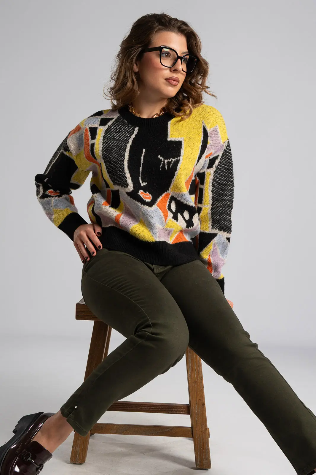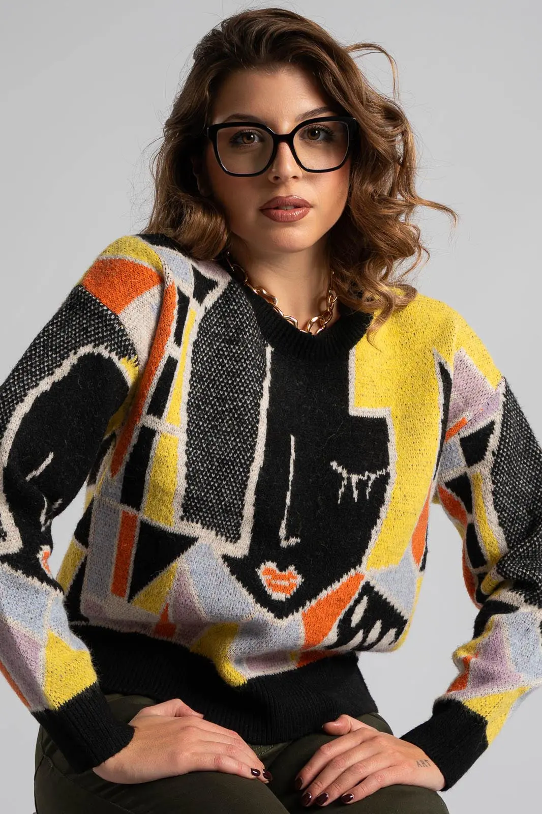 Μπλούζα με στρογγυλή λαιμόκοψη. Διαθέτει μακριά μανίκια που καταλήγουν σε rib ύφανση. Σε όλη την επιφάνεια έχει εμπριμέ σχέδιο. Οι μετρήσεις του πίνακα είναι αντιπροσωπευτικές για κάθε προϊόν.30% acrylic, 50% viscose, 15% wool, 5% elastan.