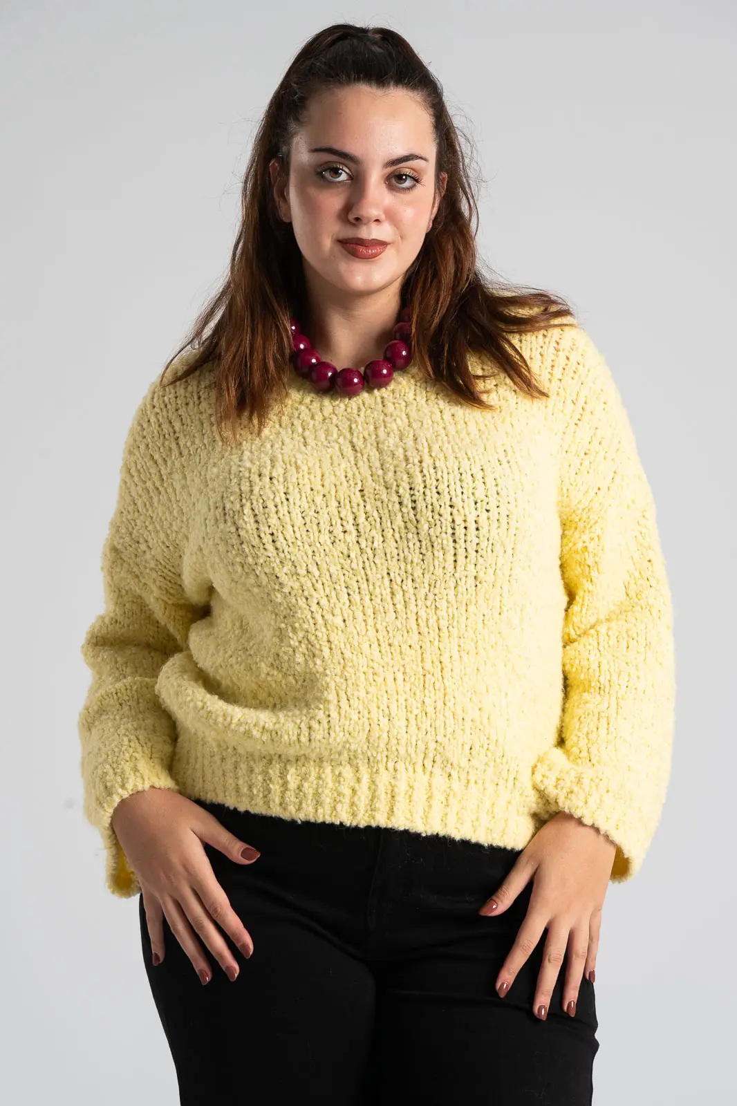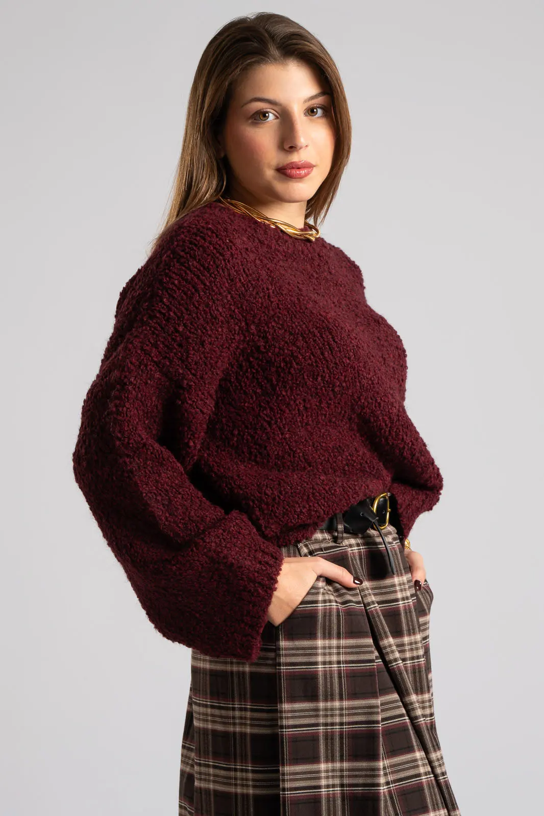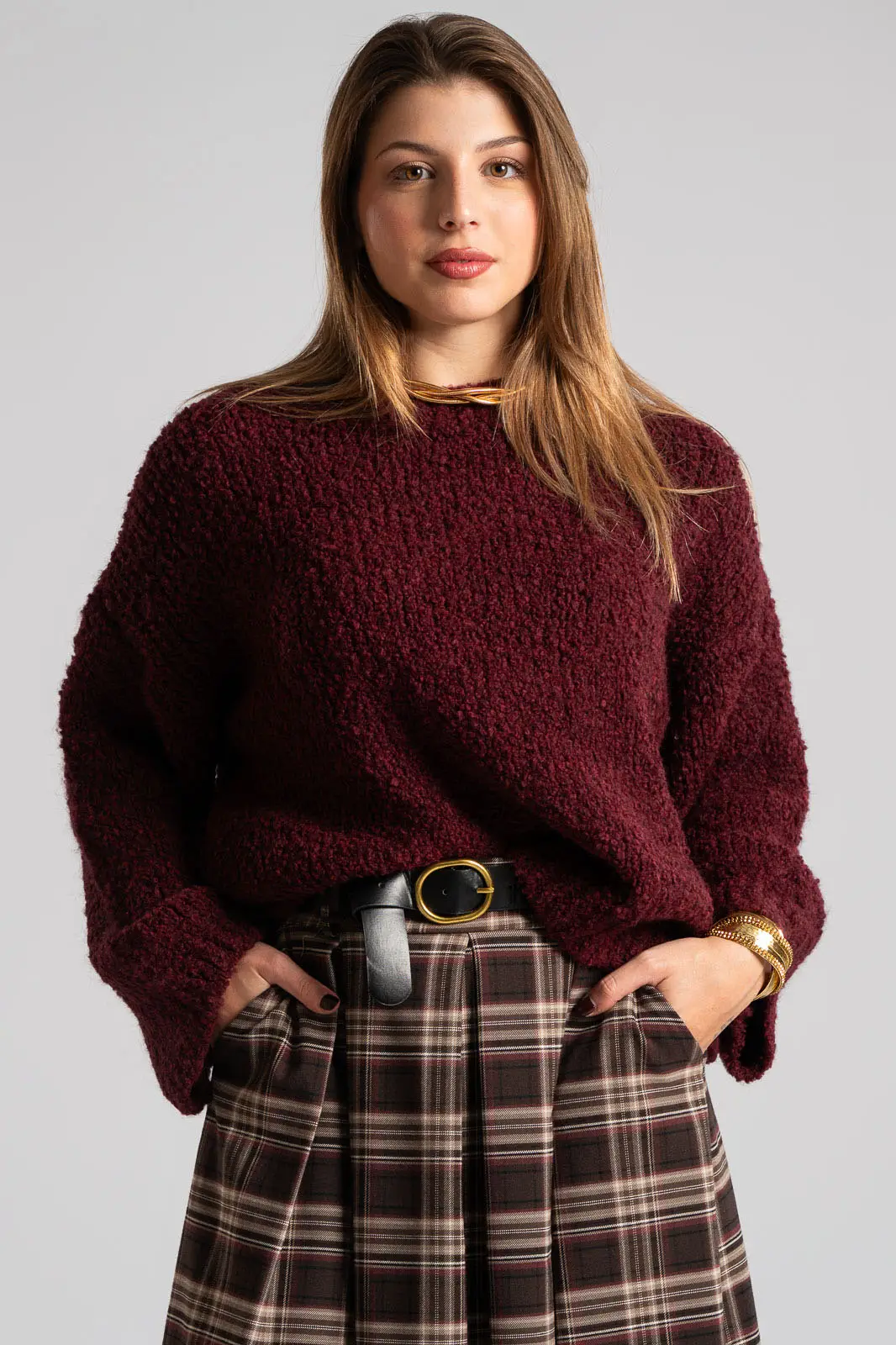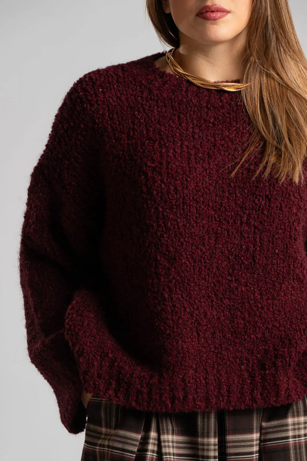 Μπλούζα teddy με στρογγυλή λαιμόκοψη. Διαθέτει μακριά μανίκια. Στο τελείωμα της, στη λαιμόκοψη και στα μανίκια είναι σε rib ύφανση. Οι μετρήσεις του πίνακα είναι αντιπροσωπευτικές για κάθε προϊόν. 62% acrylic, 18% polyester, 8% wool, 8% viscose, 4% alpaka.