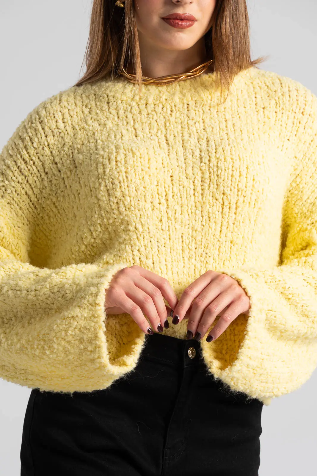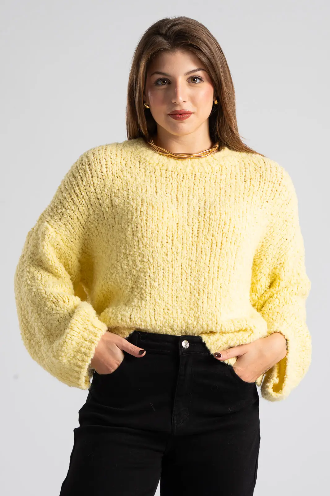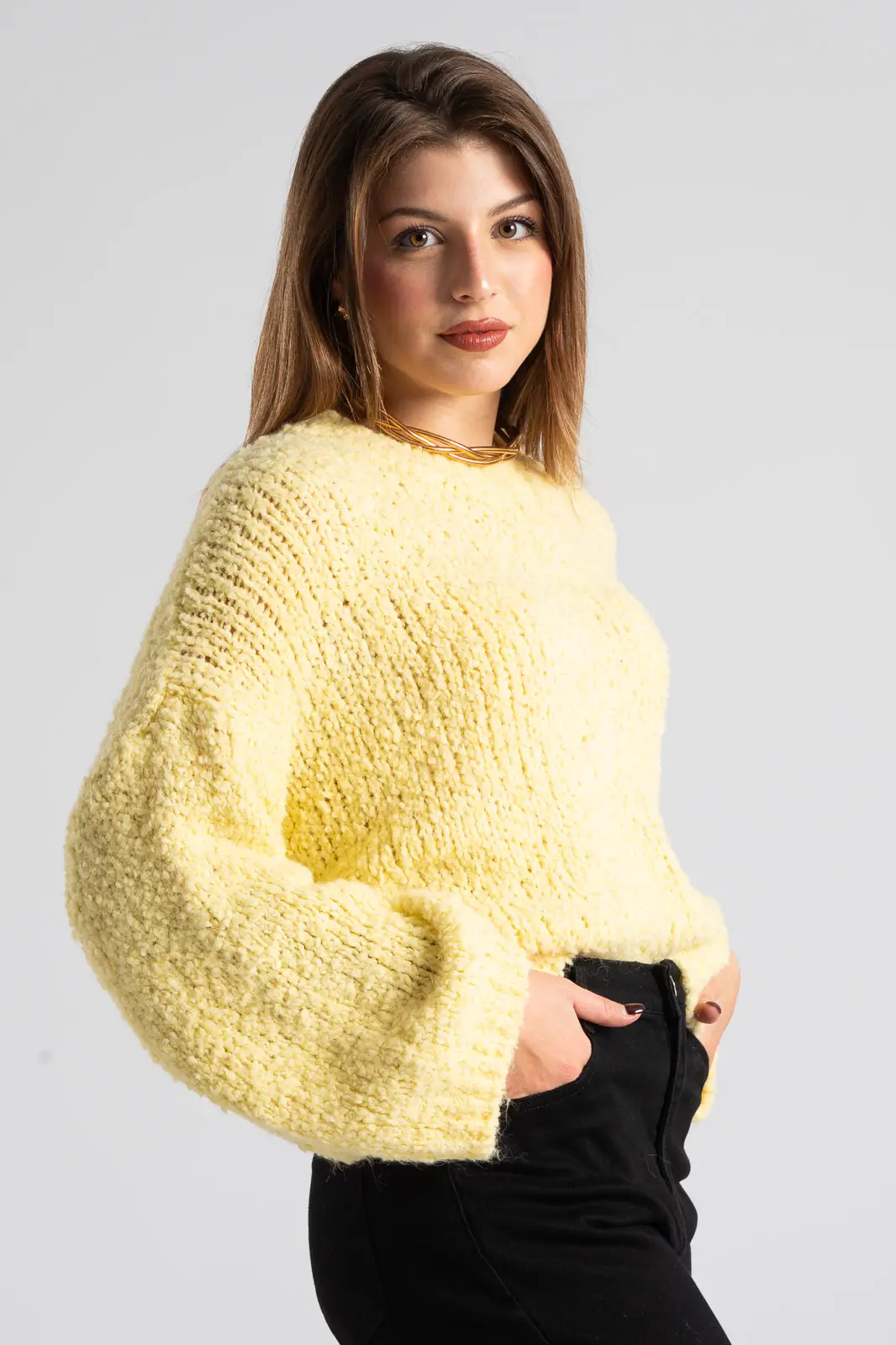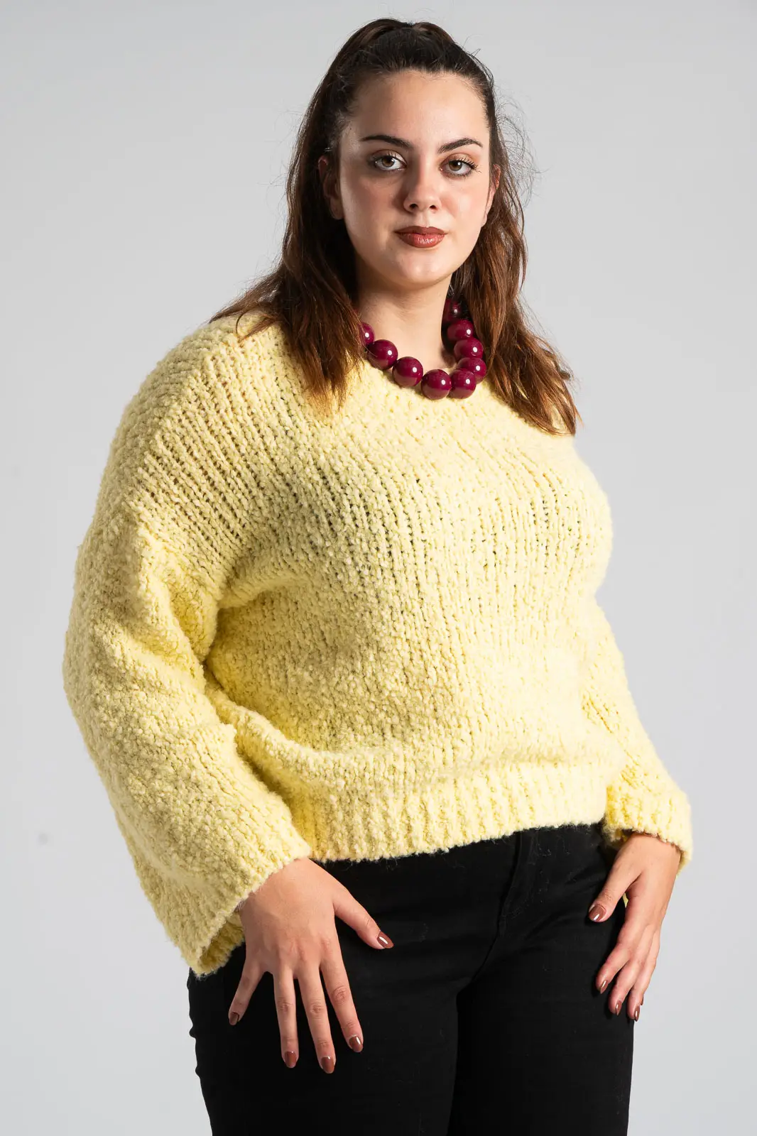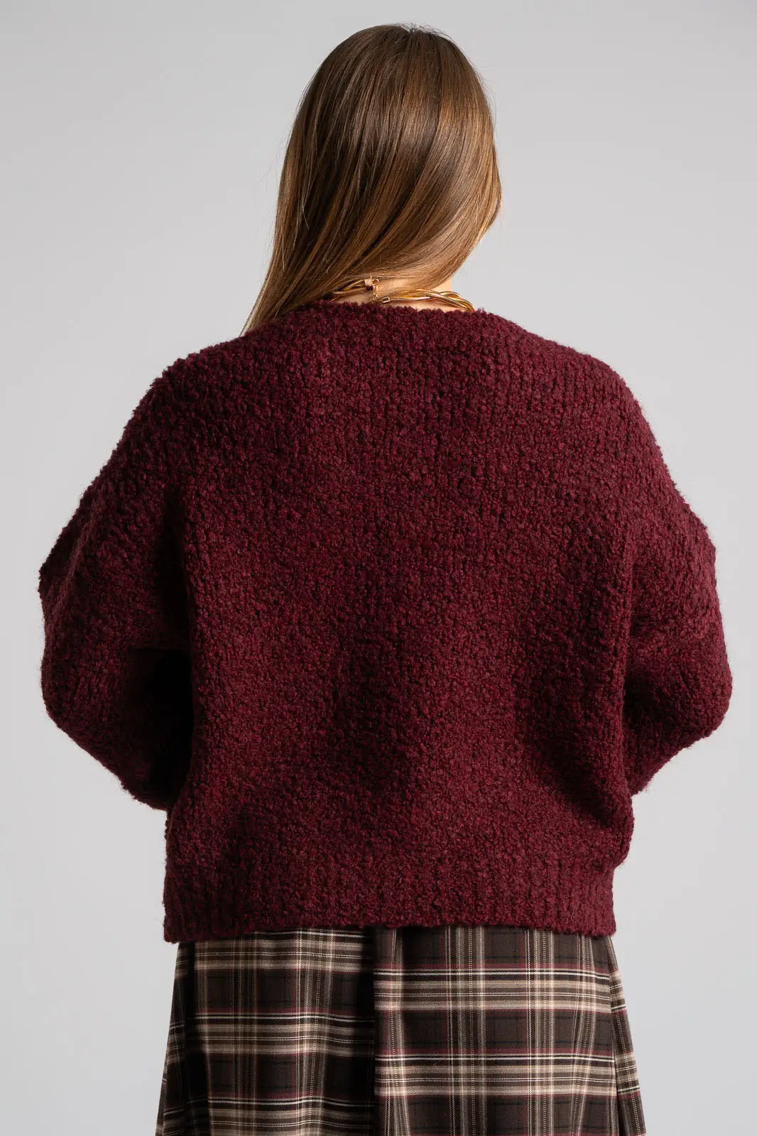 Μπλούζα teddy με στρογγυλή λαιμόκοψη. Διαθέτει μακριά μανίκια. Στο τελείωμα της, στη λαιμόκοψη και στα μανίκια είναι σε rib ύφανση. Οι μετρήσεις του πίνακα είναι αντιπροσωπευτικές για κάθε προϊόν. 62% acrylic, 18% polyester, 8% wool, 8% viscose, 4% alpaka.