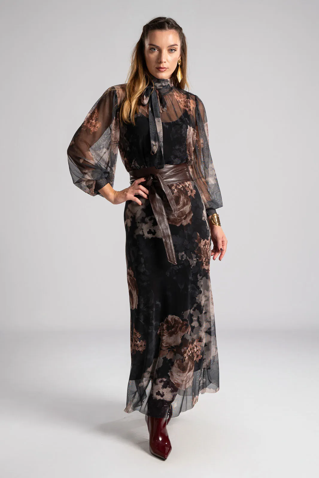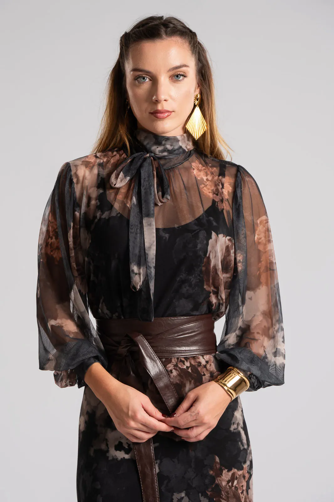 BLOUSE TULLE TRANSPARENCY FLORAL BLACK