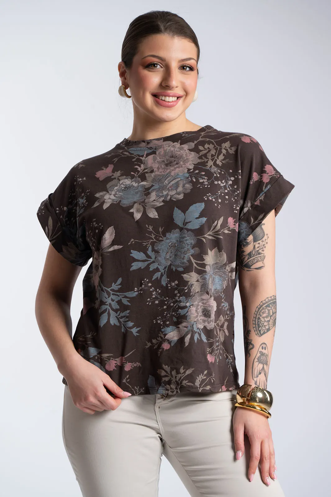 Μπλούζα Βαμβακερή Κοντομάνικη Floral