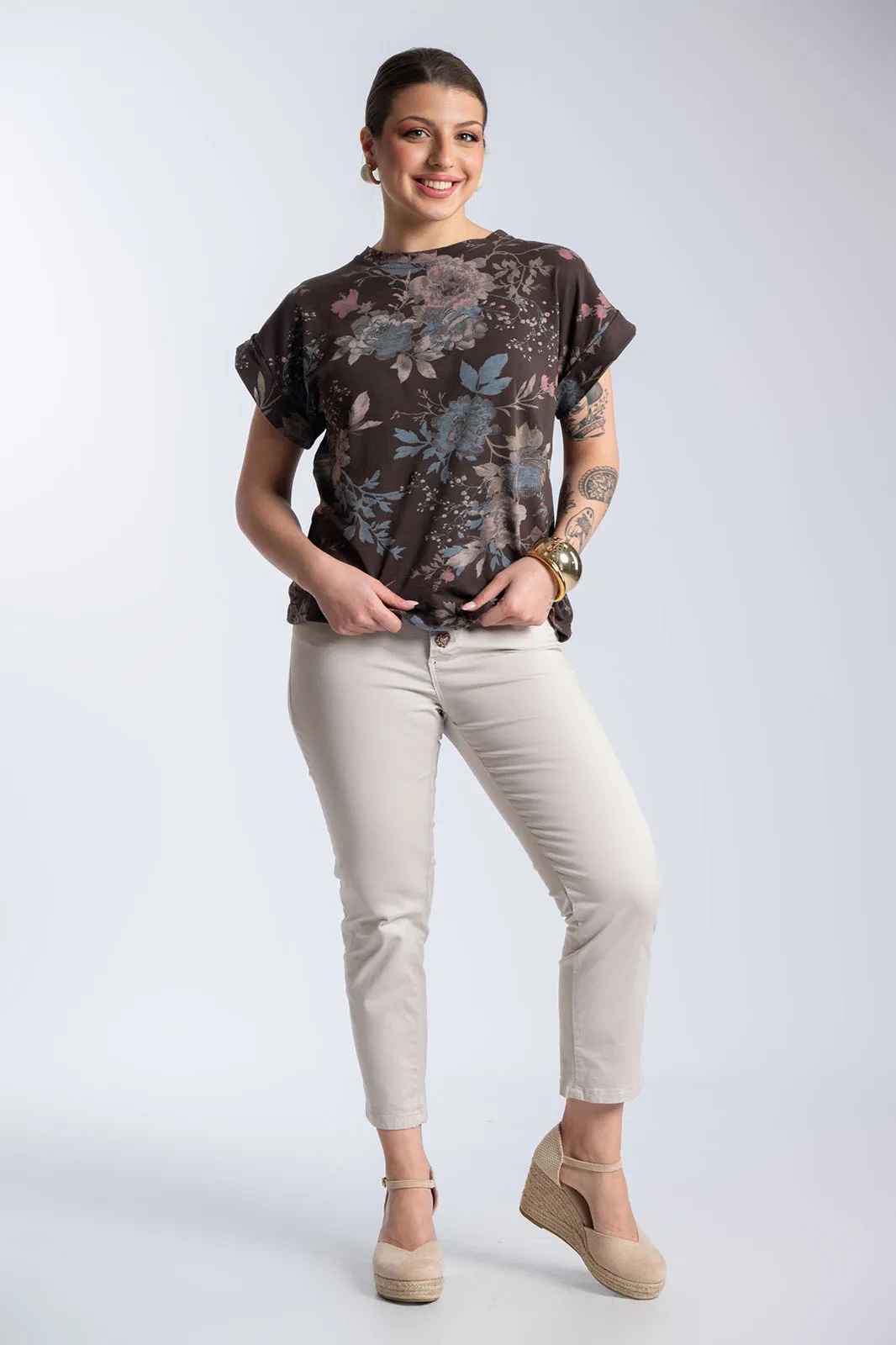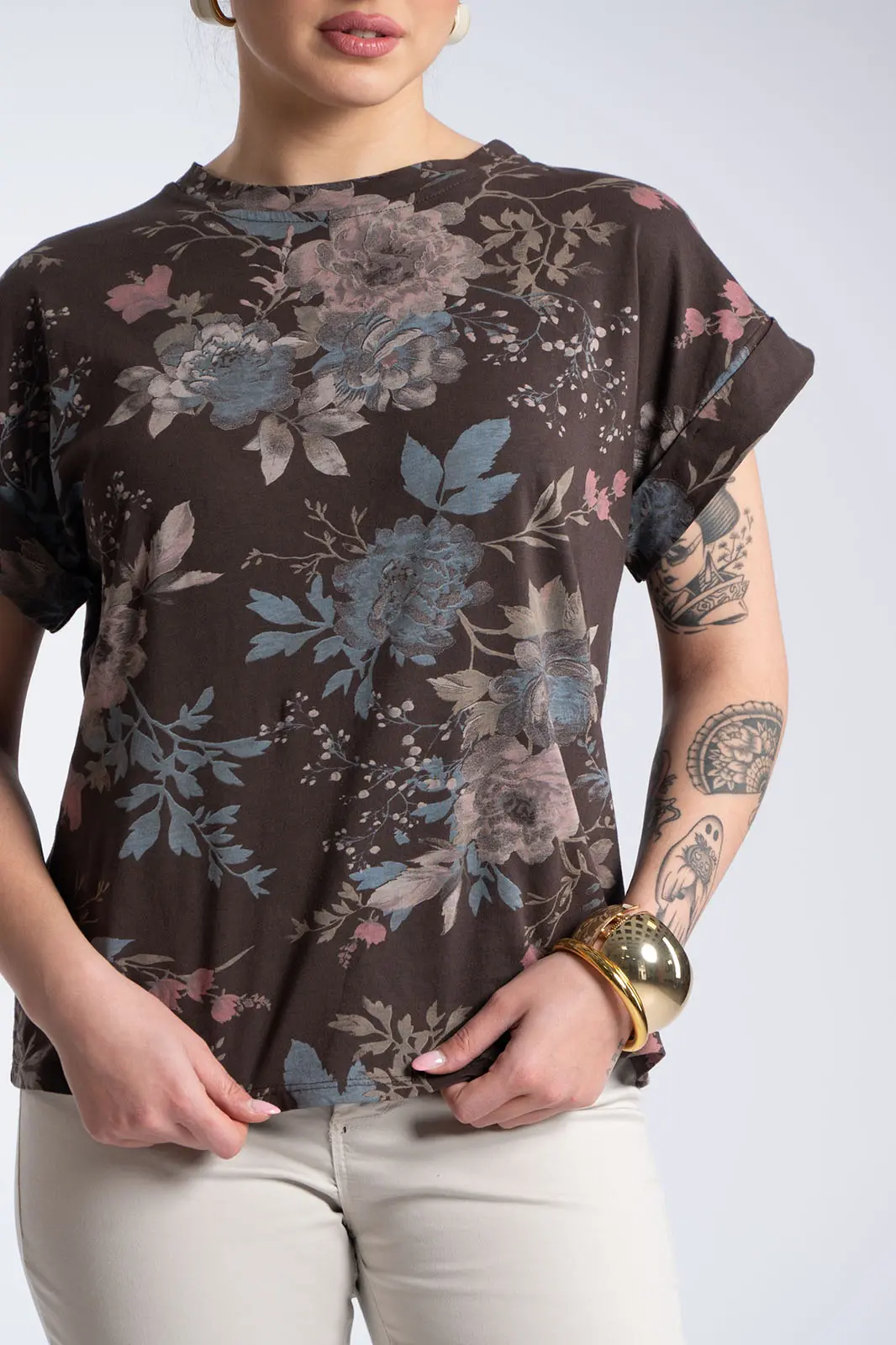 Αέρινη κοντομάνικη μπλούζα με ρομαντικό floral μοτίβο που χαρίζει θηλυκό και διαχρονικό ύφος. Διαθέτει στρογγυλή λαιμόκοψη και άνετη γραμμή, προσφέροντας ευκολία στην κίνηση και καθημερινή άνεση. Το ανάλαφρο ύφασμα σε συνδυασμό με το διακριτικό λουλουδάτο σχέδιο την καθιστούν ιδανική επιλογή για όλες τις ώρες της ημέρας, από casual εμφανίσεις μέχρι πιο προσεγμένα looks.