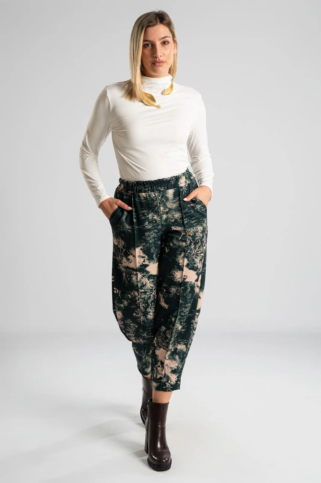 Cotton blouse with lupeto neckline. It has long sleeves and a straight cut. The fabric is very soft. The measurements in the table are representative for each code. 95% cotton, 5% elastane.