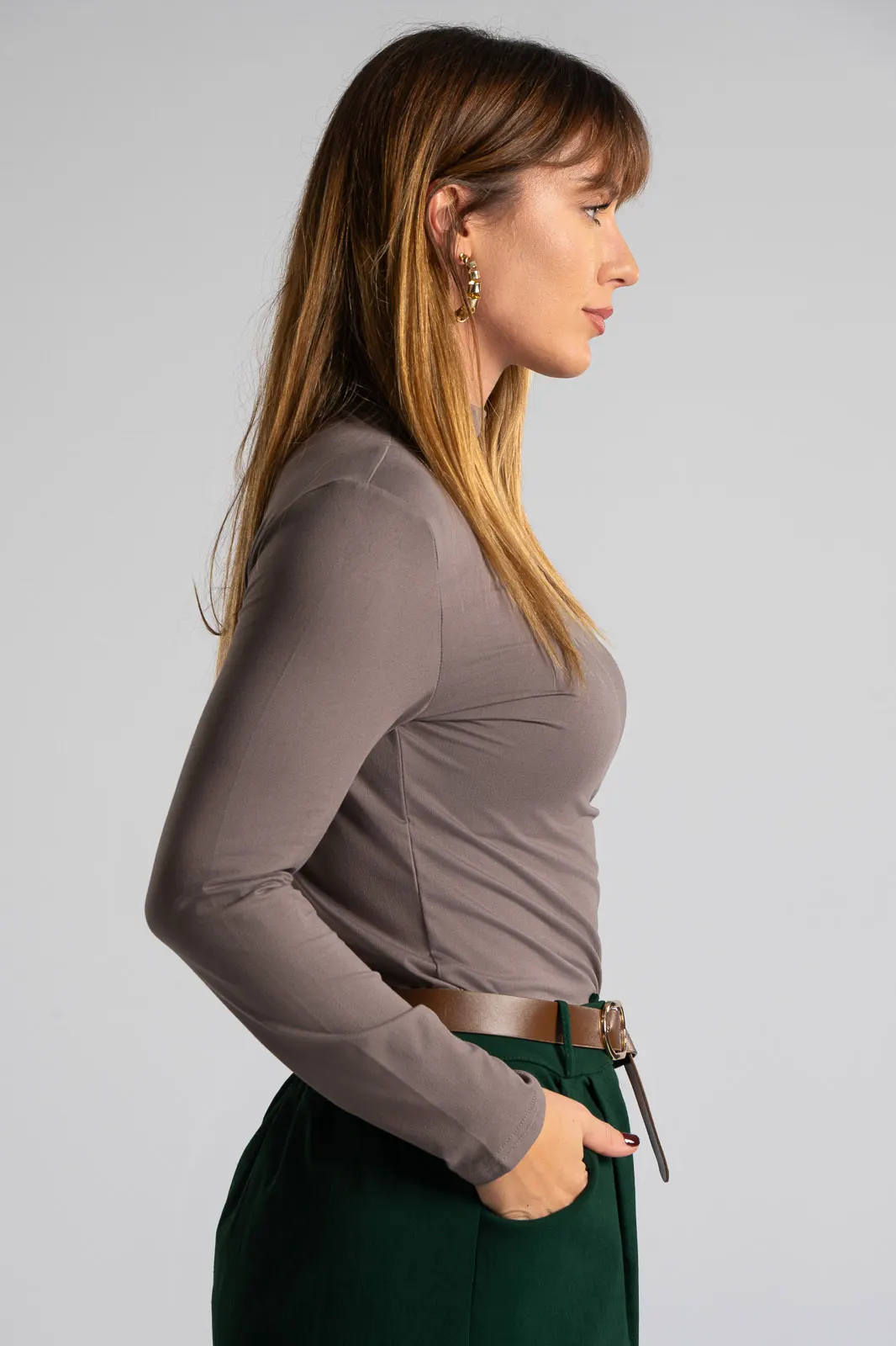 Cotton blouse with lupeto neckline. It has long sleeves and a straight cut. The fabric is very soft. The measurements in the table are representative for each code. 95% cotton, 5% elastane.
