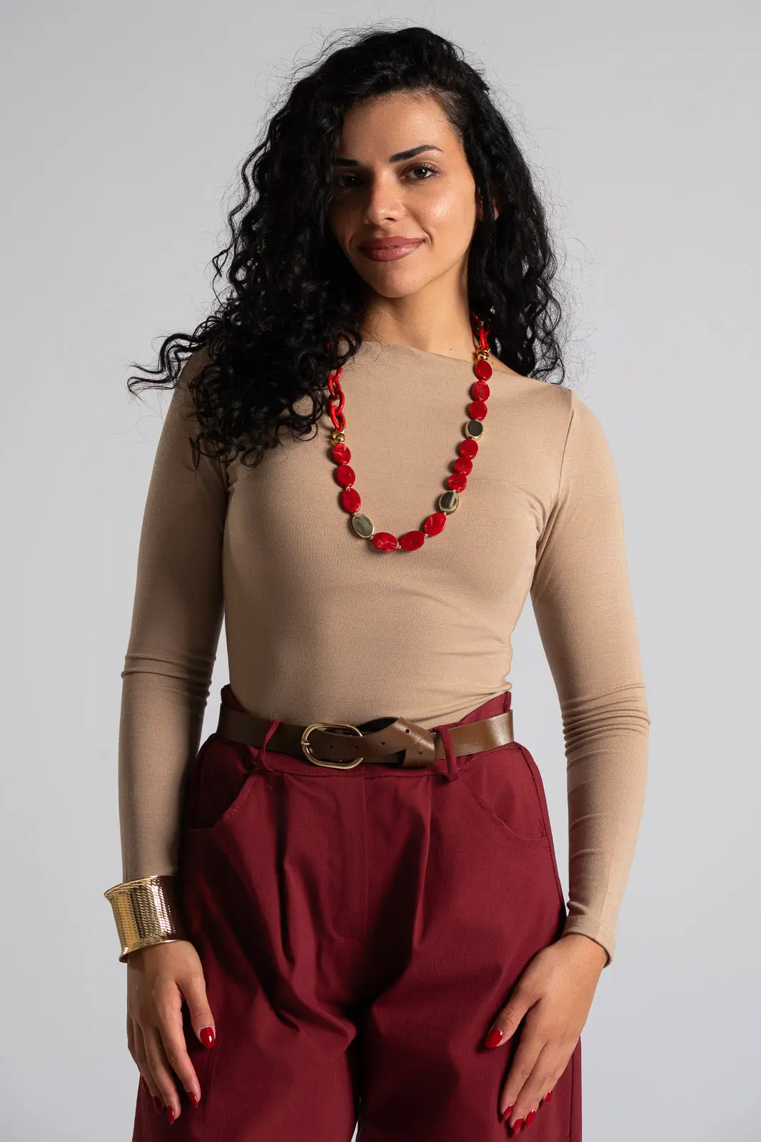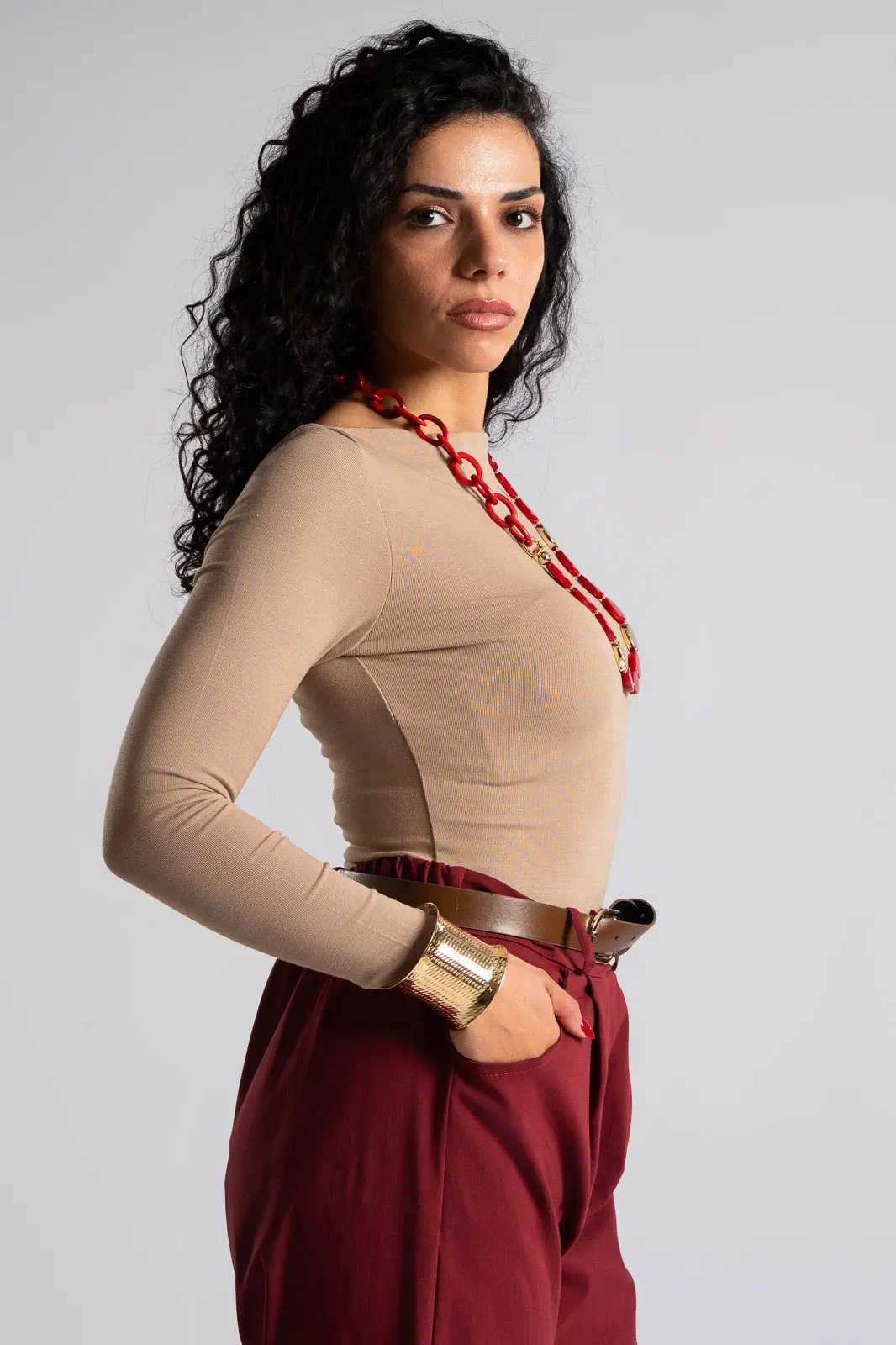Μπλούζα με χαμόγελο λαιμόκοψη. Έχει μακριά μανίκια και είναι σε ίσια γραμμή. Είναι μια ιδανική επιλογή για όλες τις ώρες της ημέρας. Το ύφασμα της είναι πολύ μαλακό. Οι μετρήσεις του πίνακα είναι αντιπροσωπευτικές για κάθε κωδικό. 75%cotton, 20% viscose, 5% elastan.