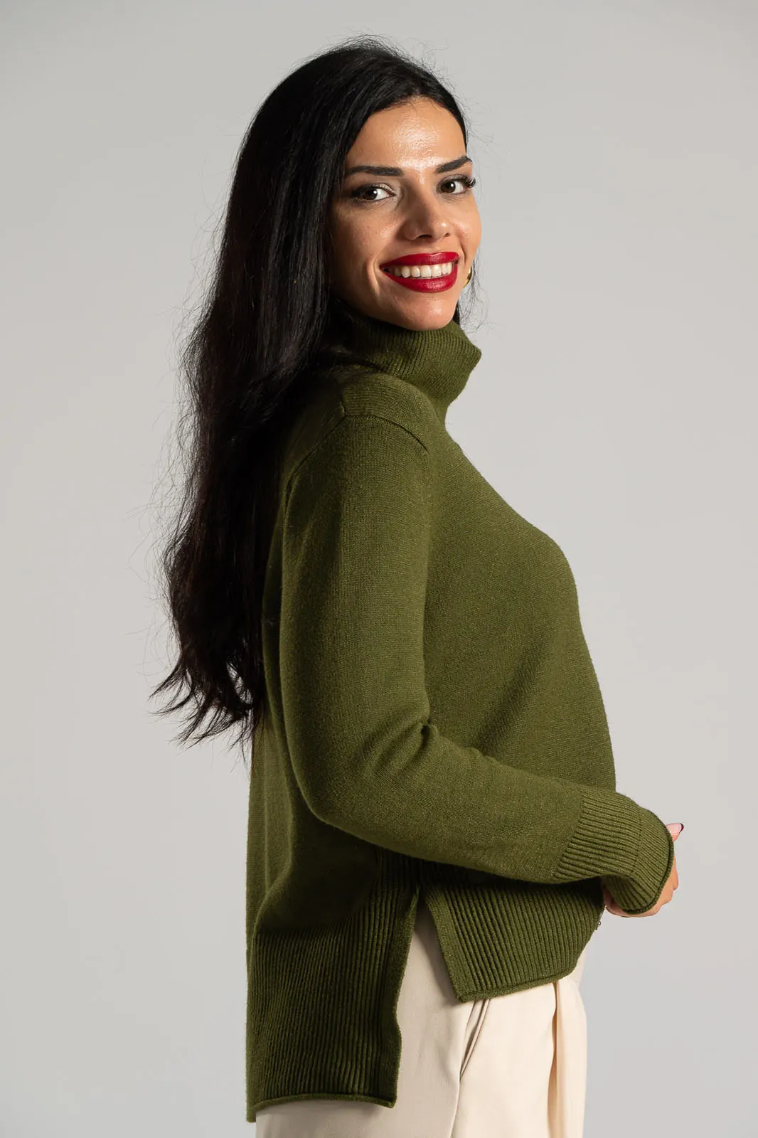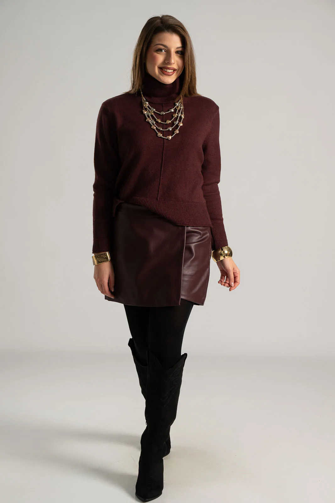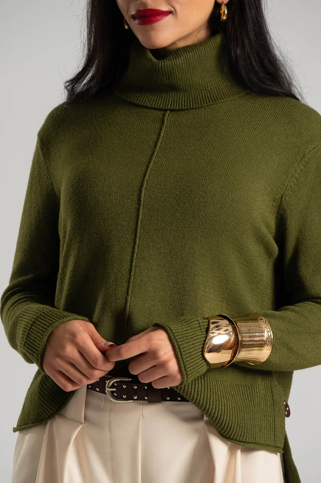 Μπλούζα με ζιβάγκο λαιμόκοψη. Είναι νημάτινη με συμπαγή πλέξη. Διαθέτει μακριά μανίκια που καταλήγουν σε rib ύφανση όπως και στην λαιμόκοψη και στο τελείωμα της μπλούζας. Στο μπροστινό μέρος της έχει μια κάθετη εξωτερική ραφή. Στο πίσω μέρος είναι ελαφρώς μακρύτερο. Οι μετρήσεις του πίνακα είναι αντιπροσωπευτικές για κάθε προϊόν. 88% viscose, 12% nylon.